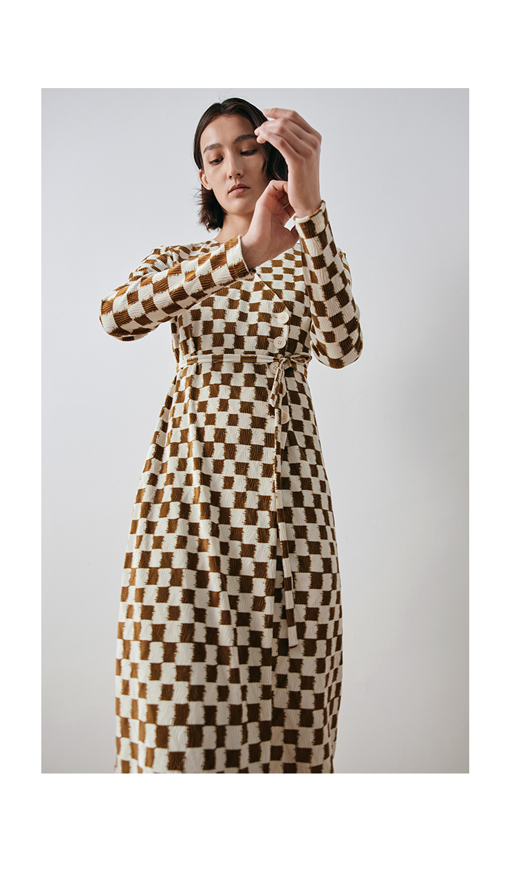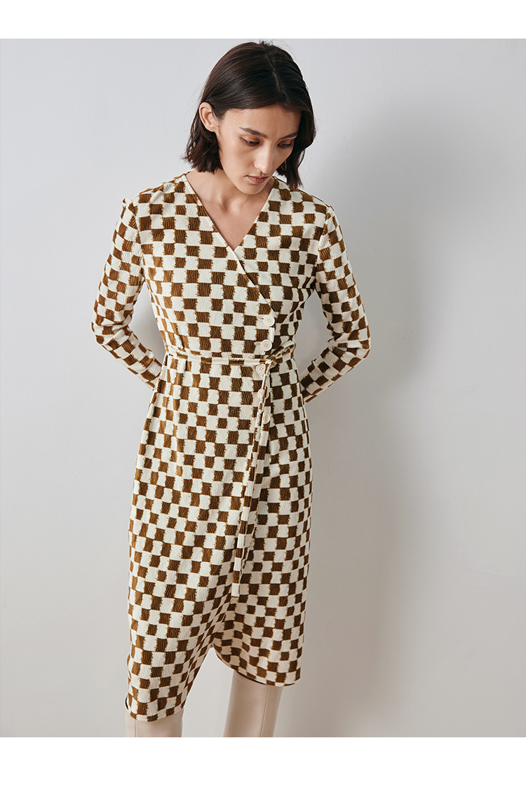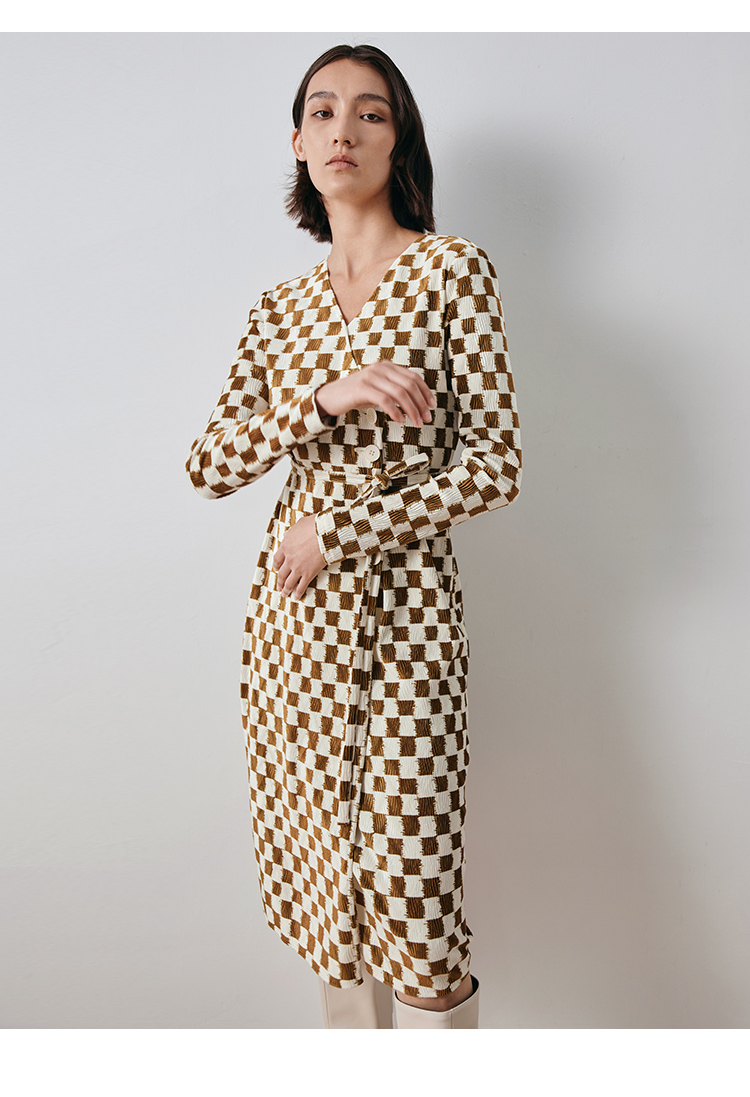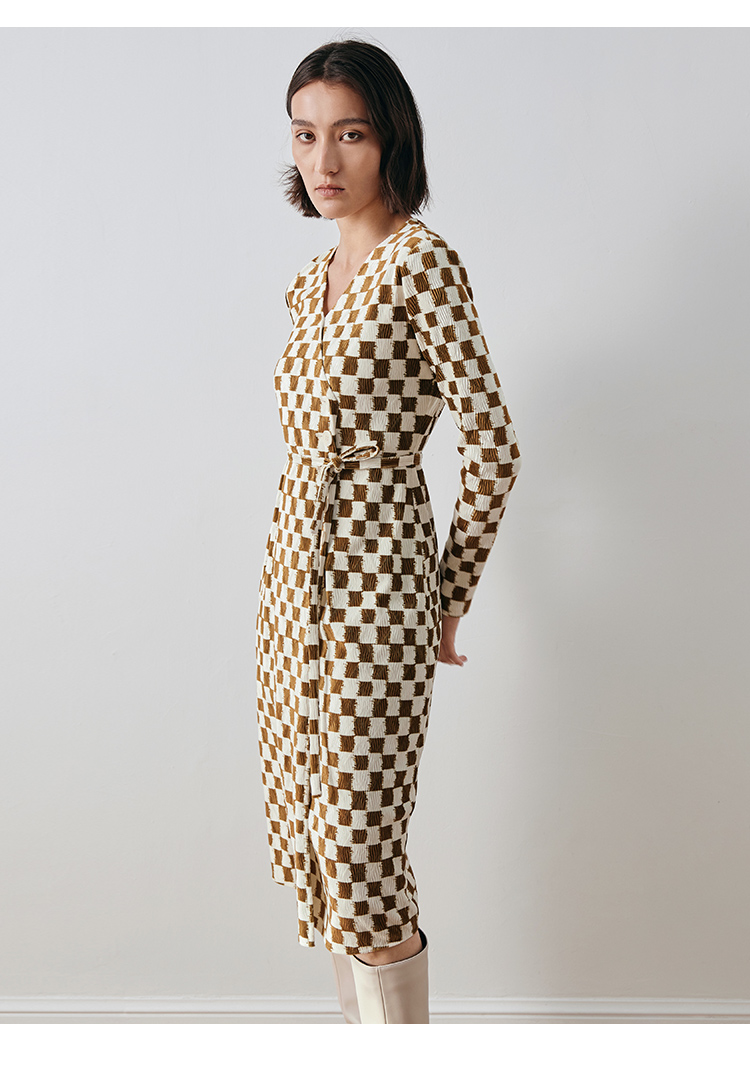 VIMAGE纬漫纪冬季新款时尚气质棋盘格通勤修身连衣裙V2007631
