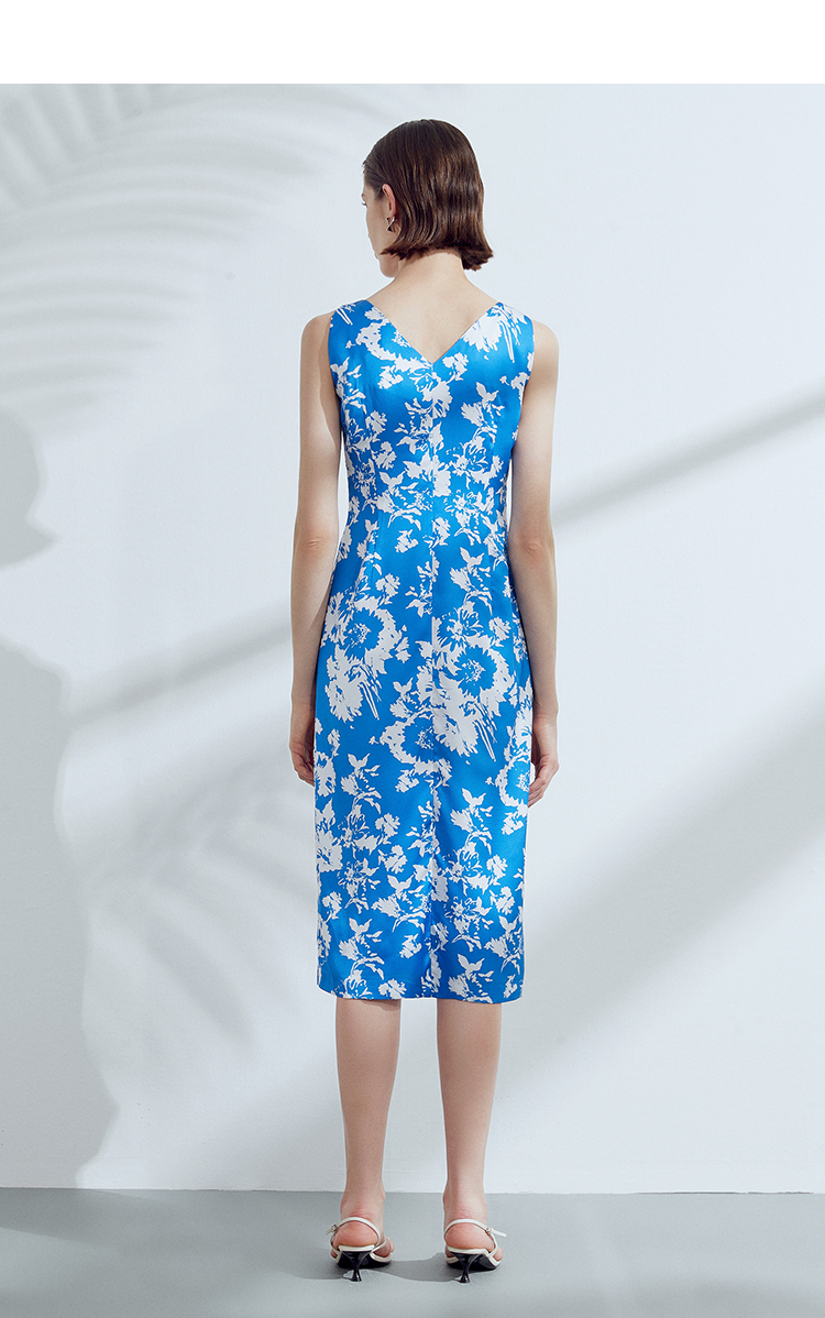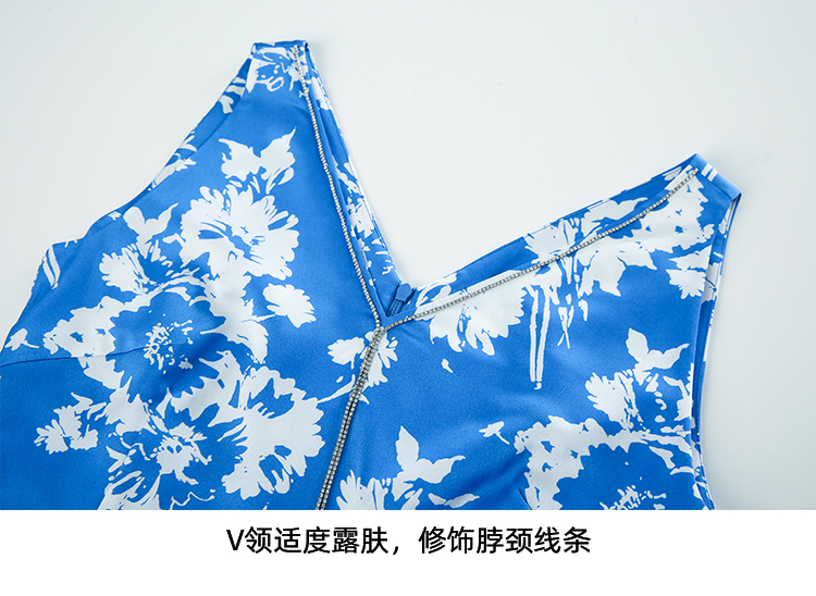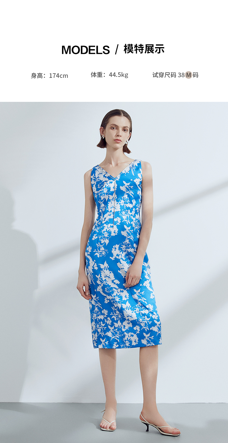 EITIE爱特爱夏季新款时尚减龄无袖修身印花连衣裙女7807507