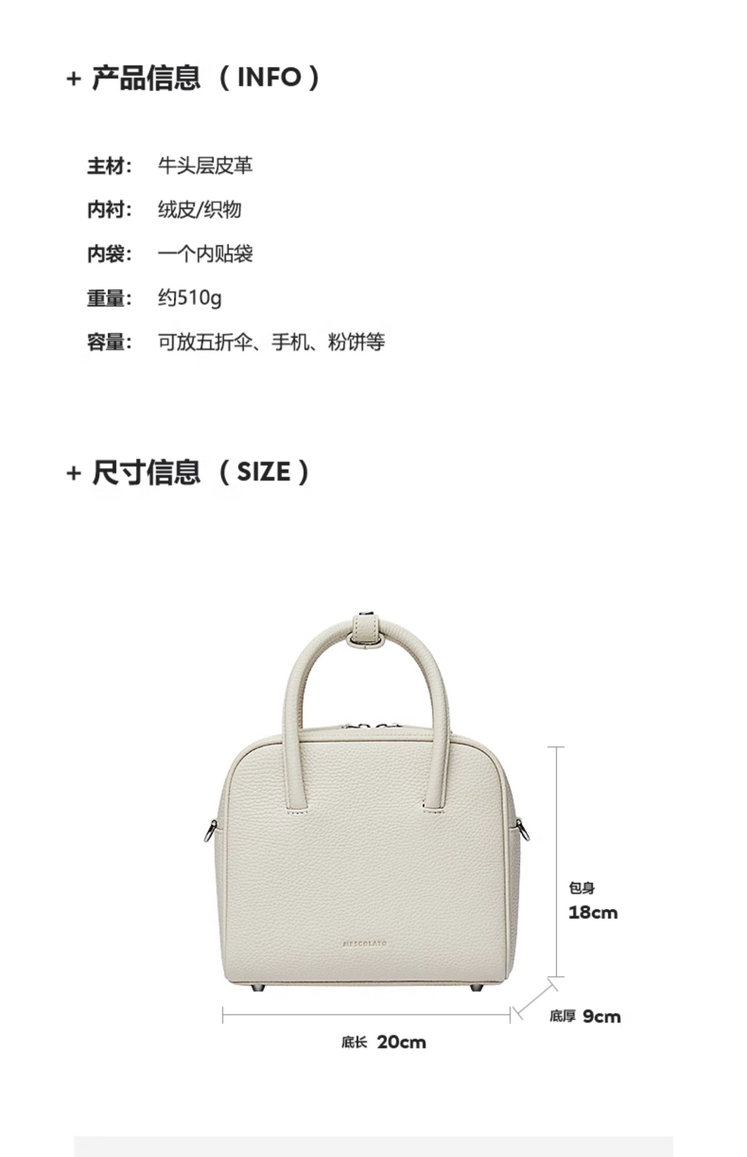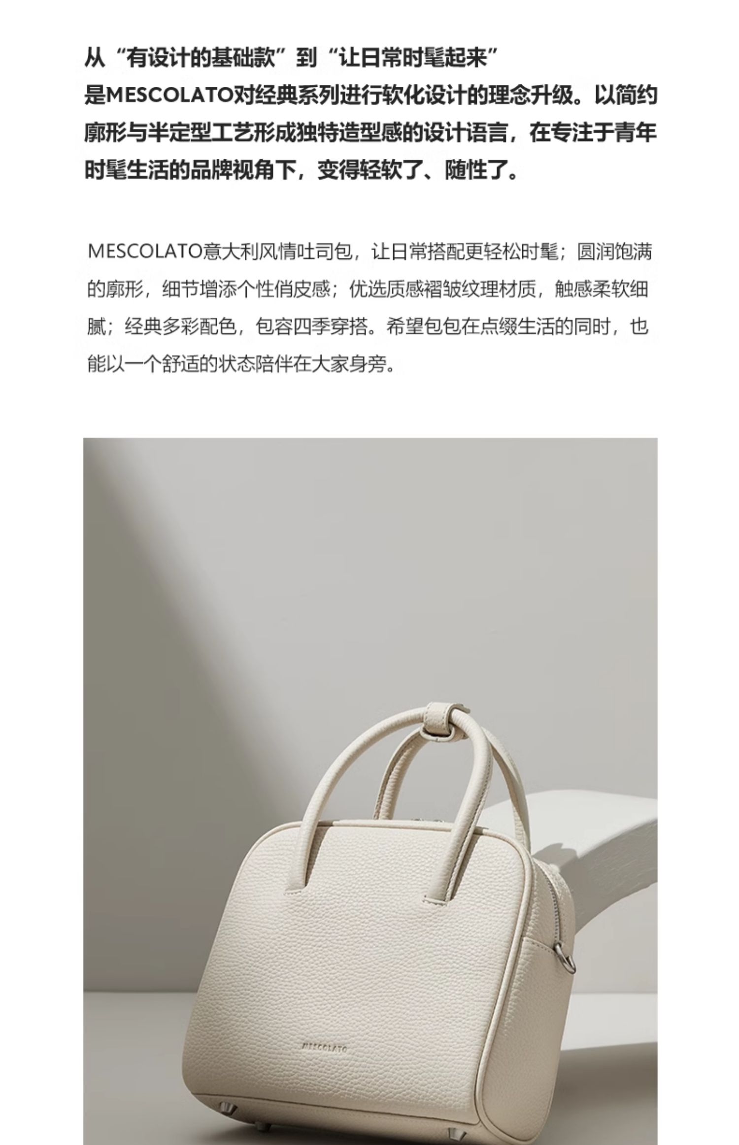 Mescolato 意大利头层牛皮小号吐司包极简风单肩包通勤女士小方包