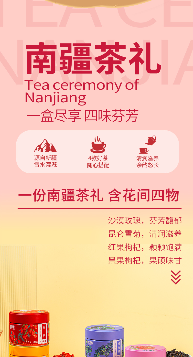 【疆果果】新疆特产 南疆茶礼: 昆仑雪菊30g*1 沙漠玫瑰25g*1 黑枸杞90g*1 枸杞150g*1