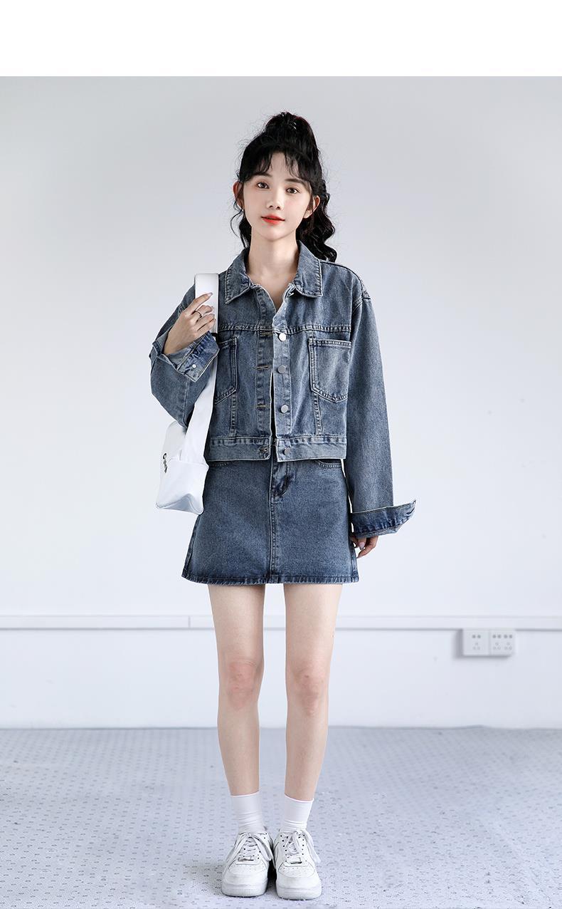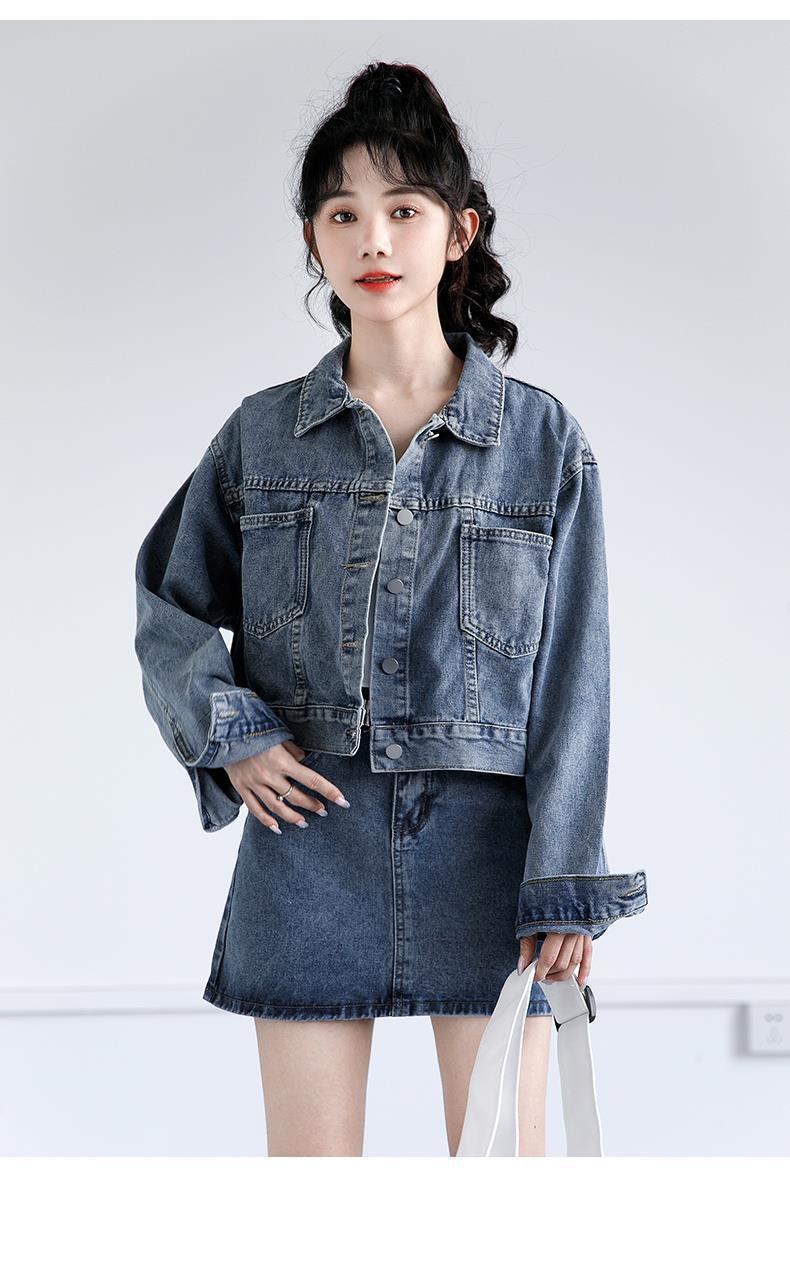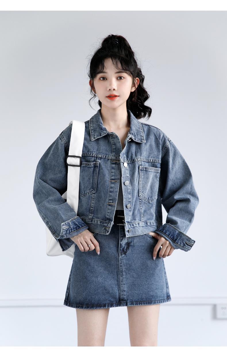雀说 短款牛仔外套女港味百搭夹克复古宽松休闲上衣20240813002