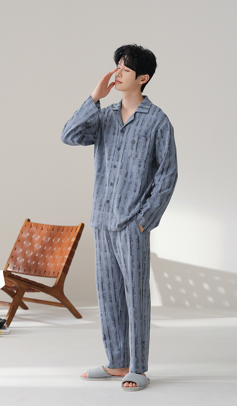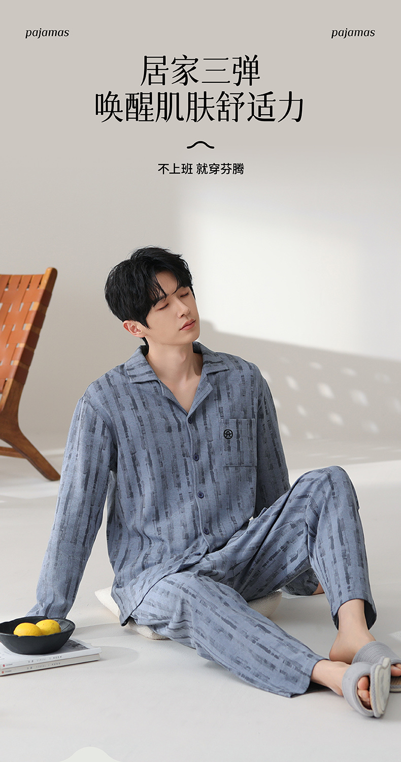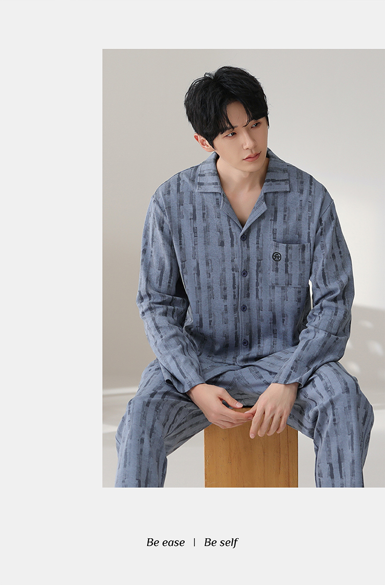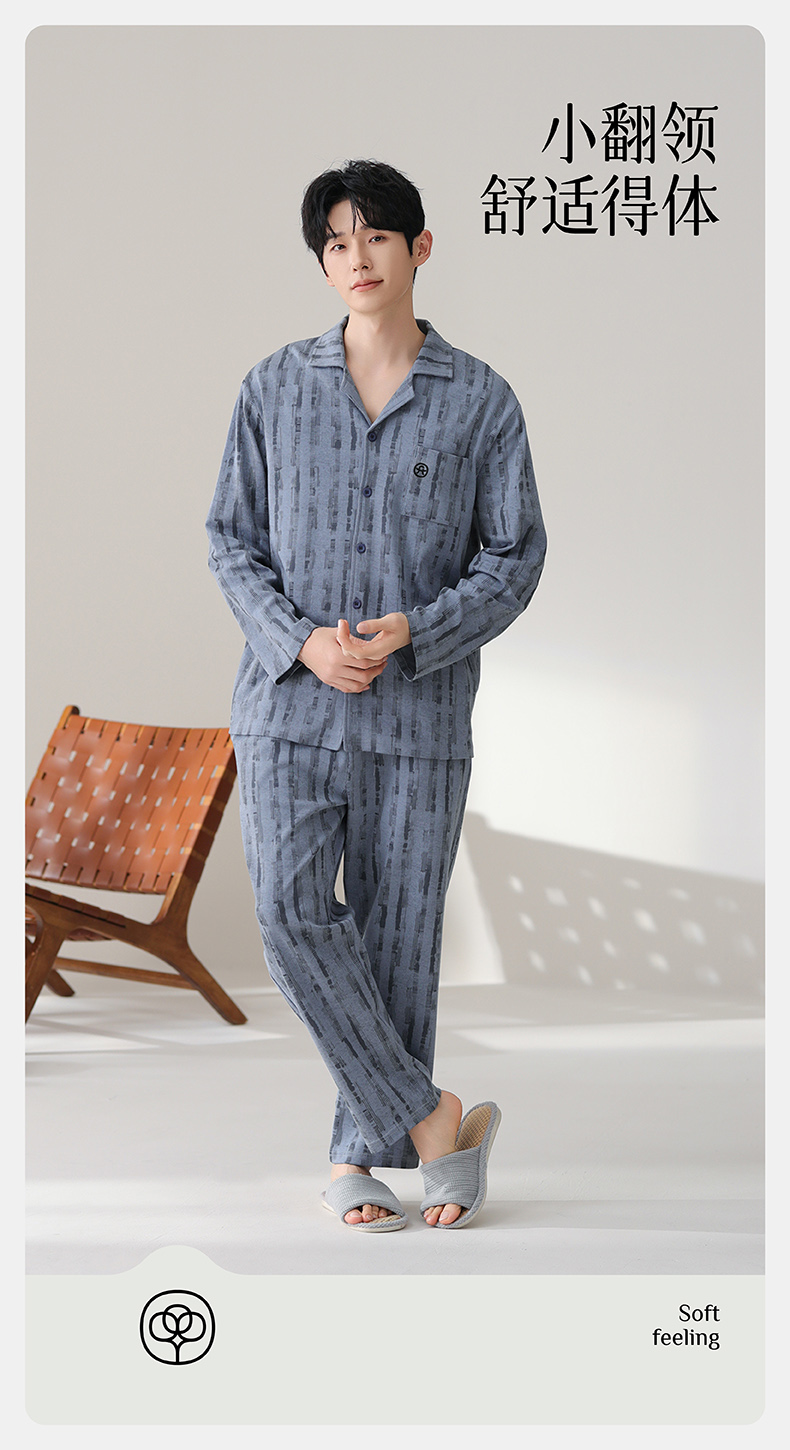 芬腾男士男生睡衣纯棉长袖套装秋季新款时尚休闲简约全棉家居服