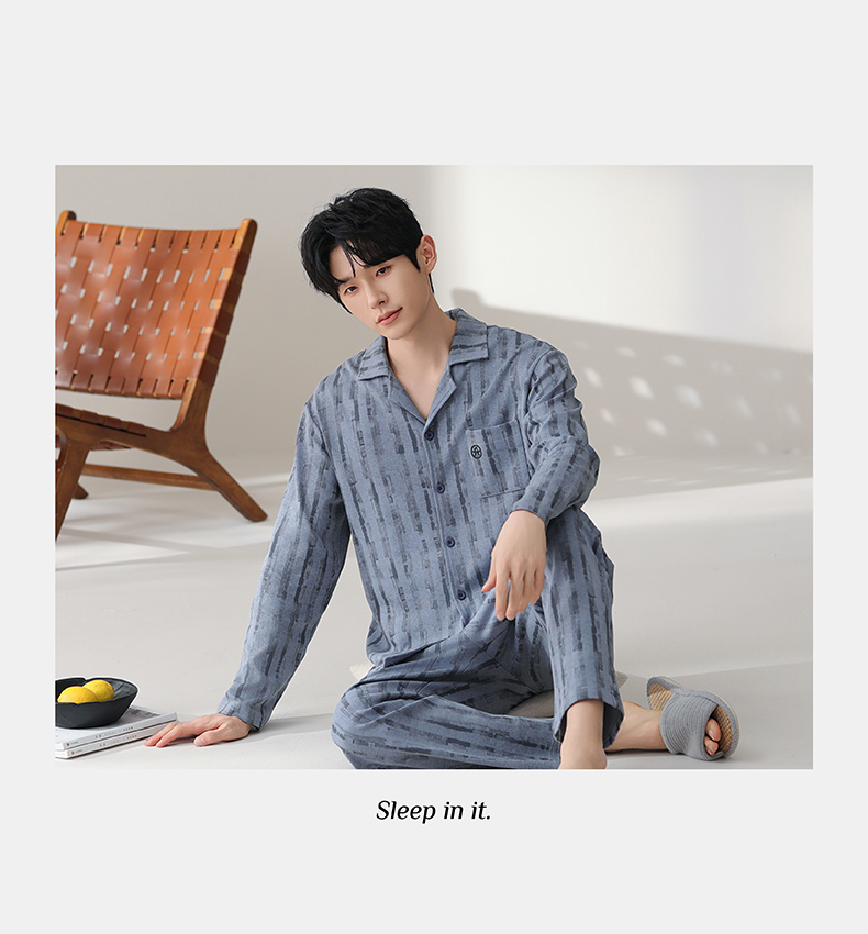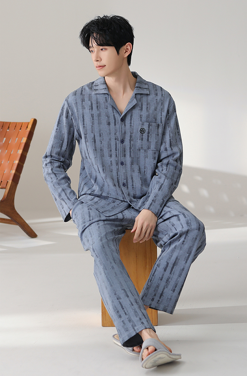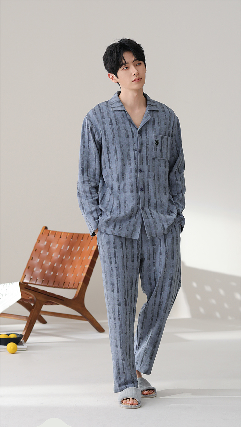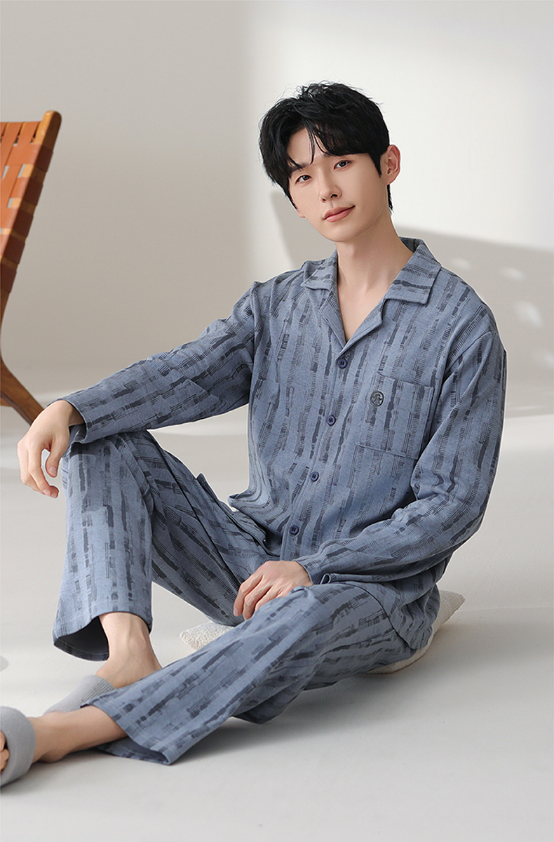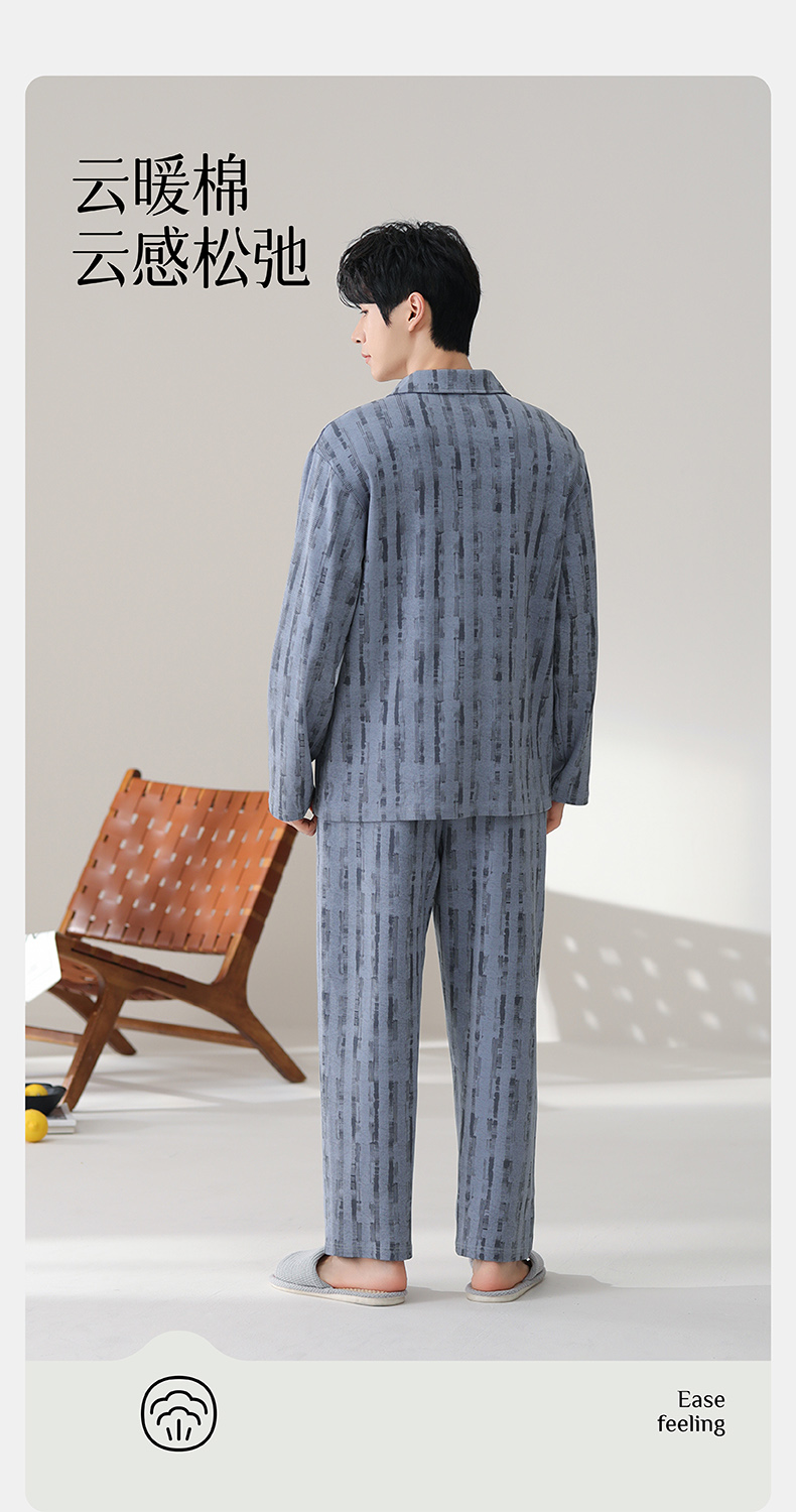 芬腾男士男生睡衣纯棉长袖套装秋季新款时尚休闲简约全棉家居服