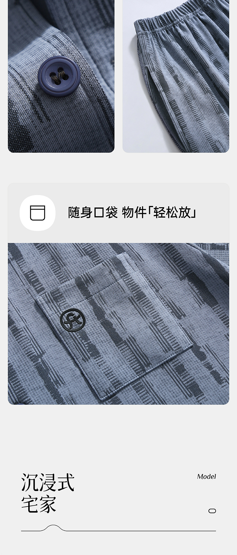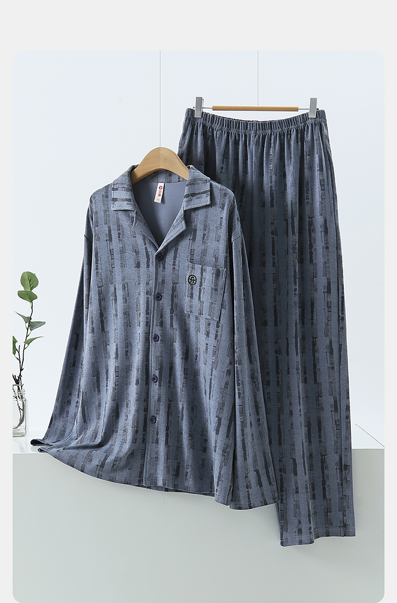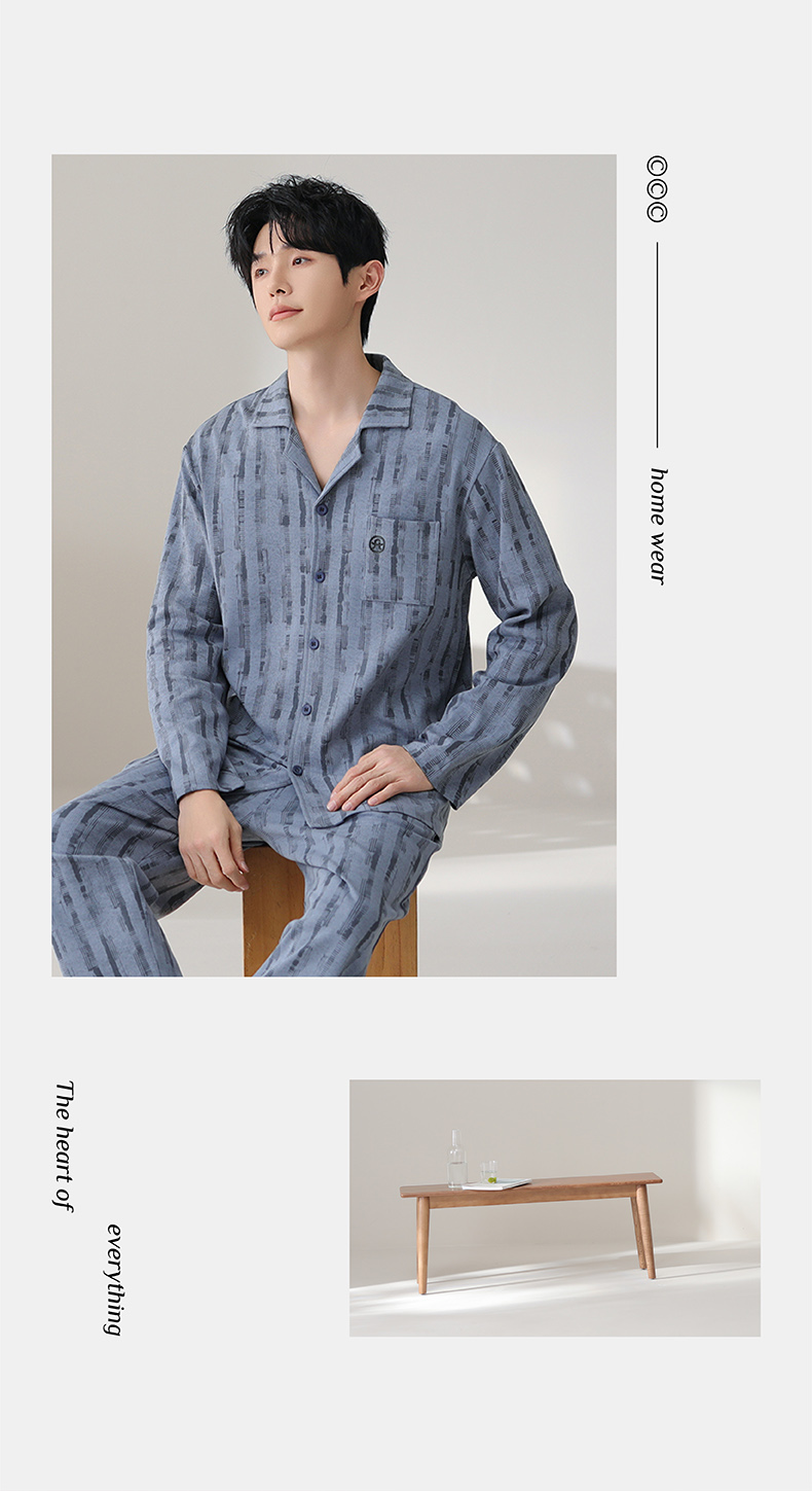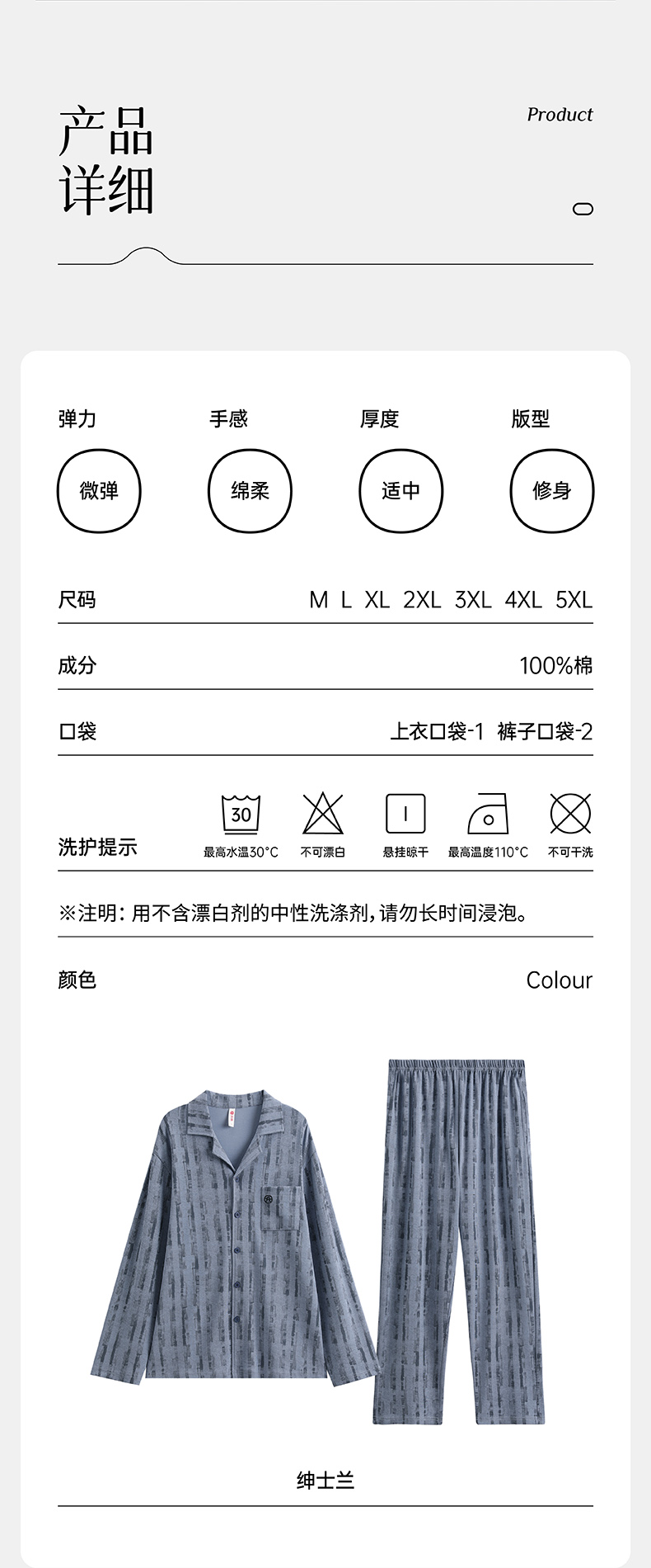芬腾男士男生睡衣纯棉长袖套装秋季新款时尚休闲简约全棉家居服