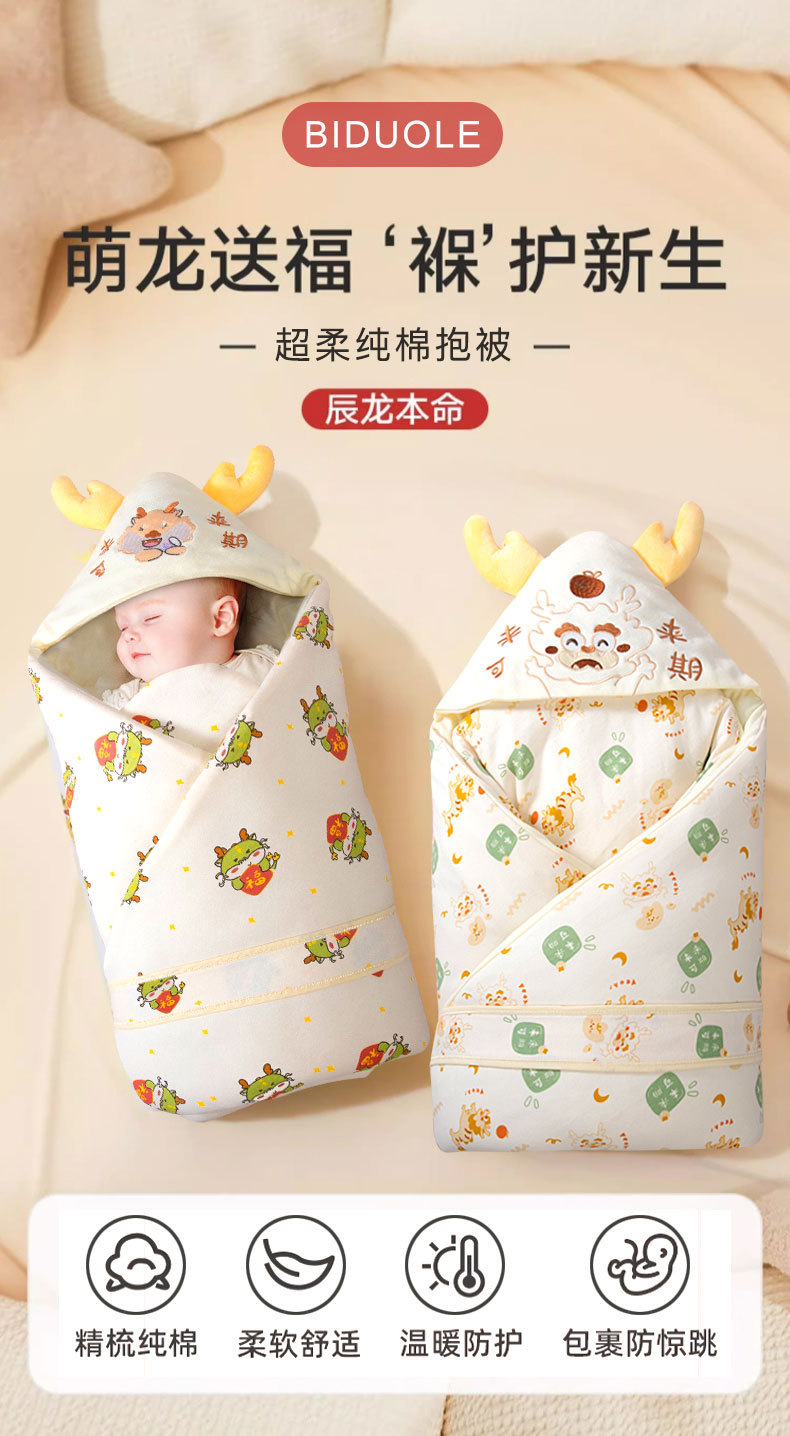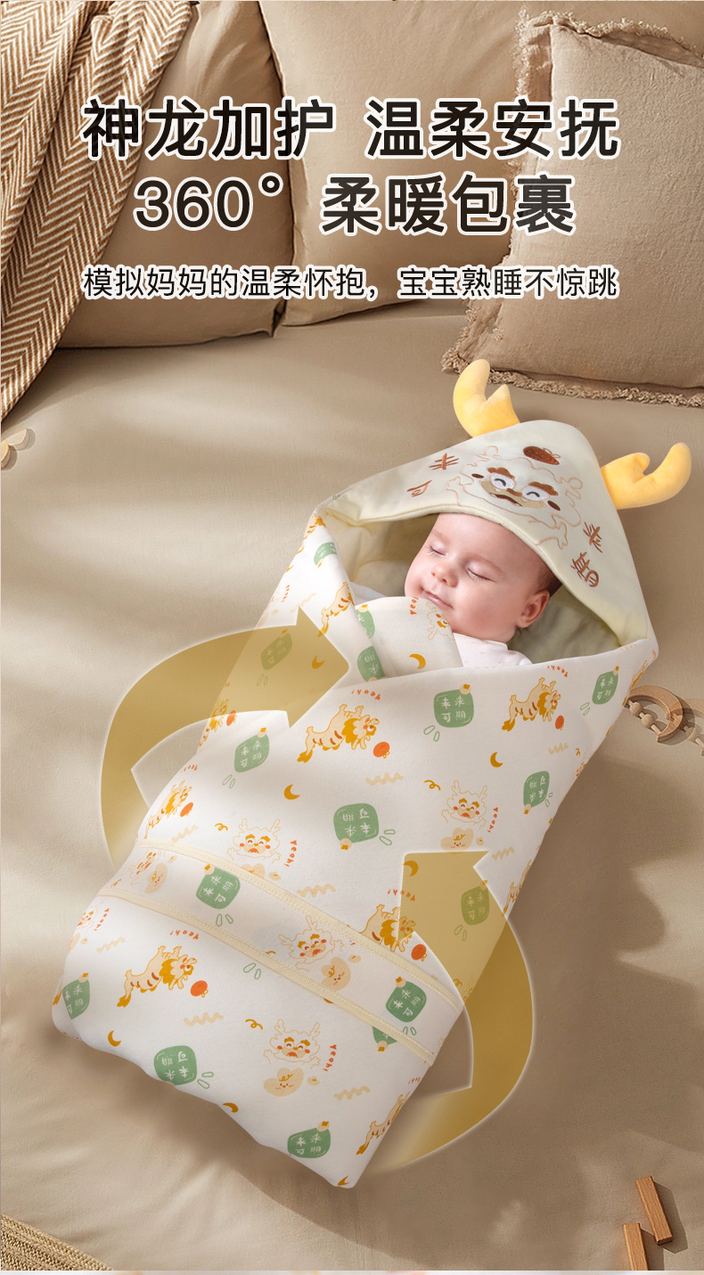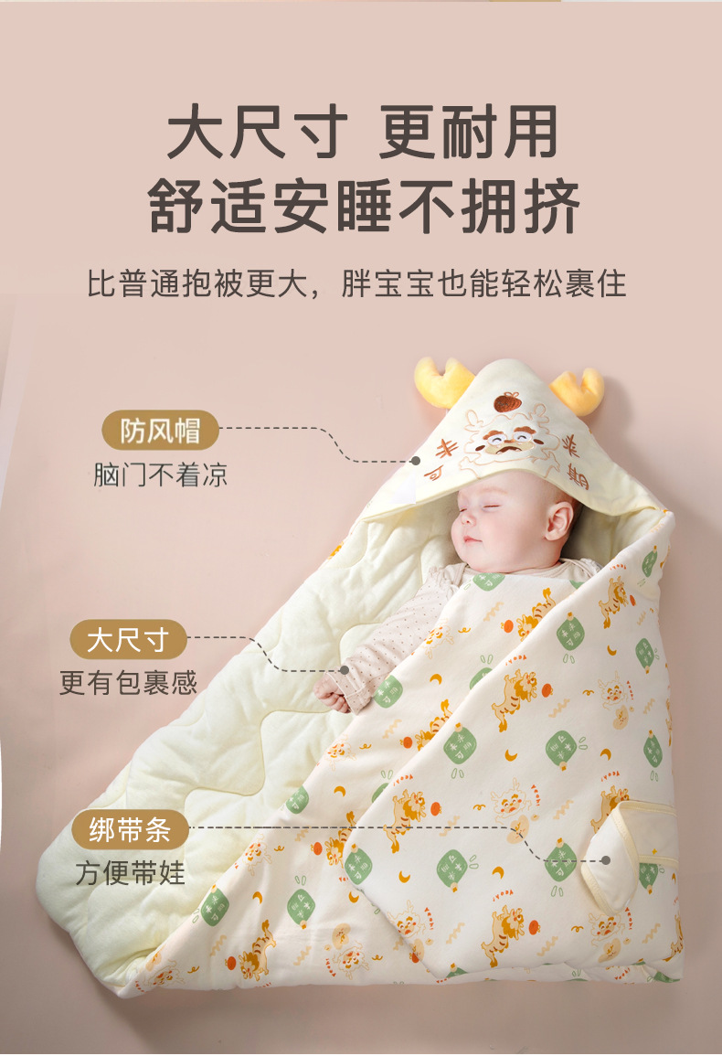 婴儿抱被秋冬季加厚宝宝外出防惊跳襁褓裹被可拆卸产房新生儿包被