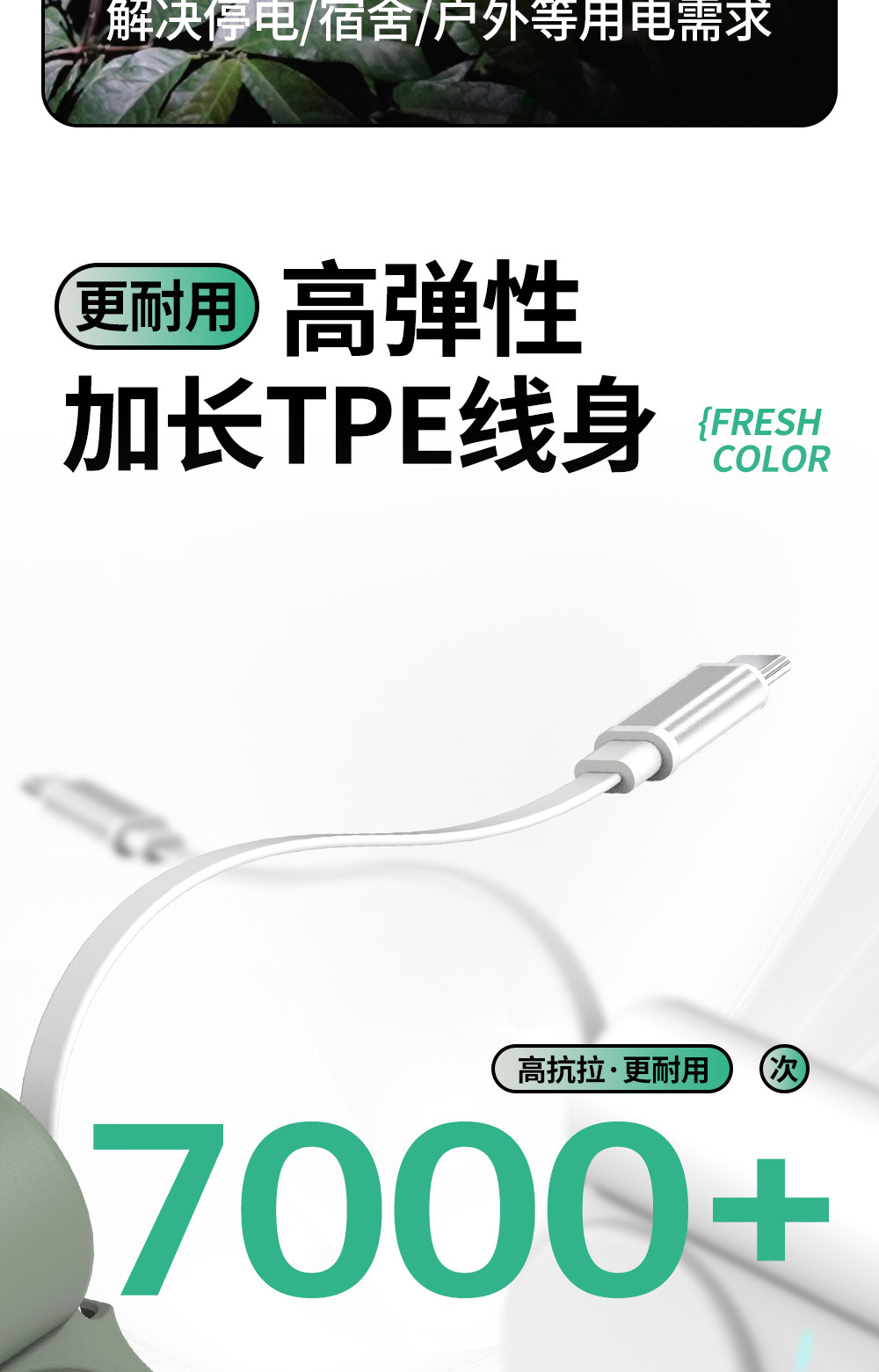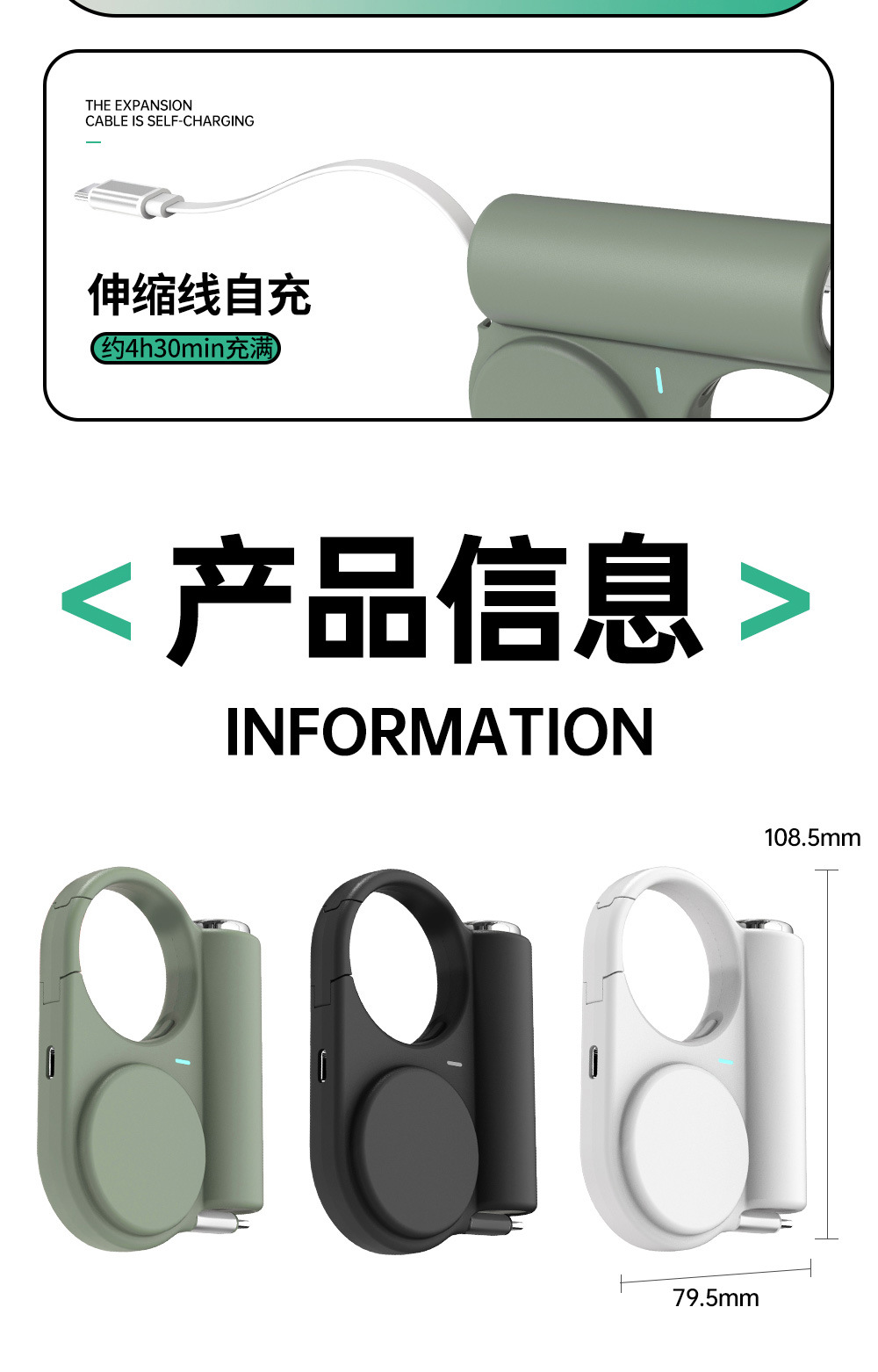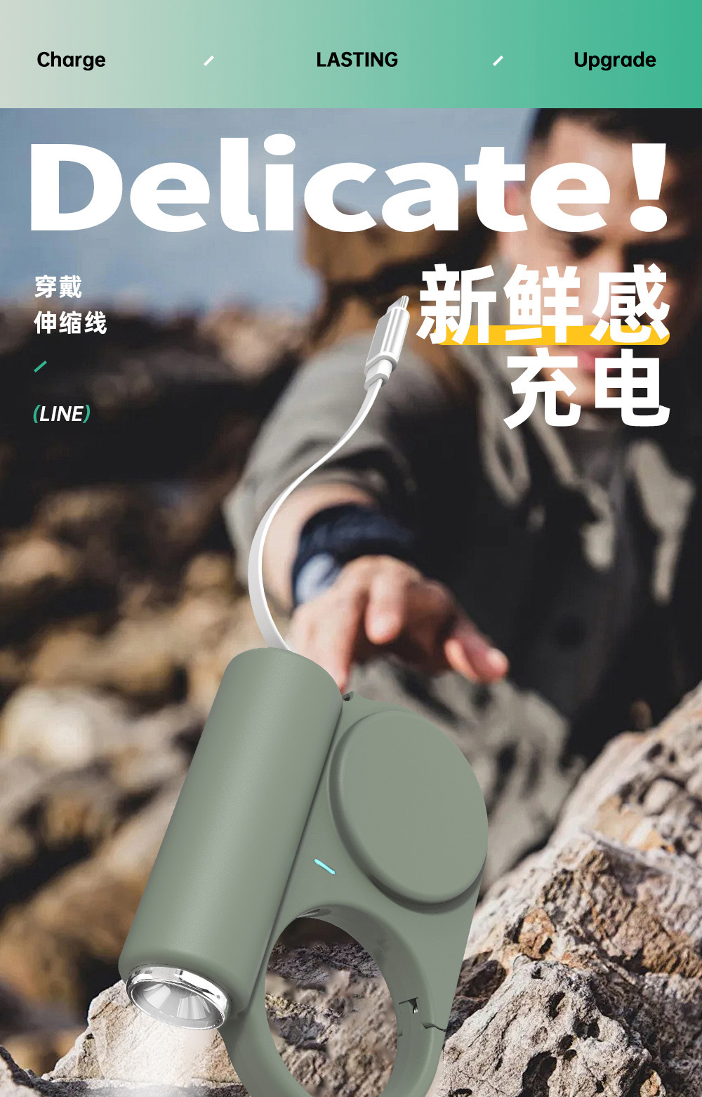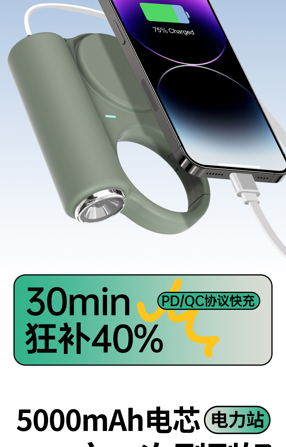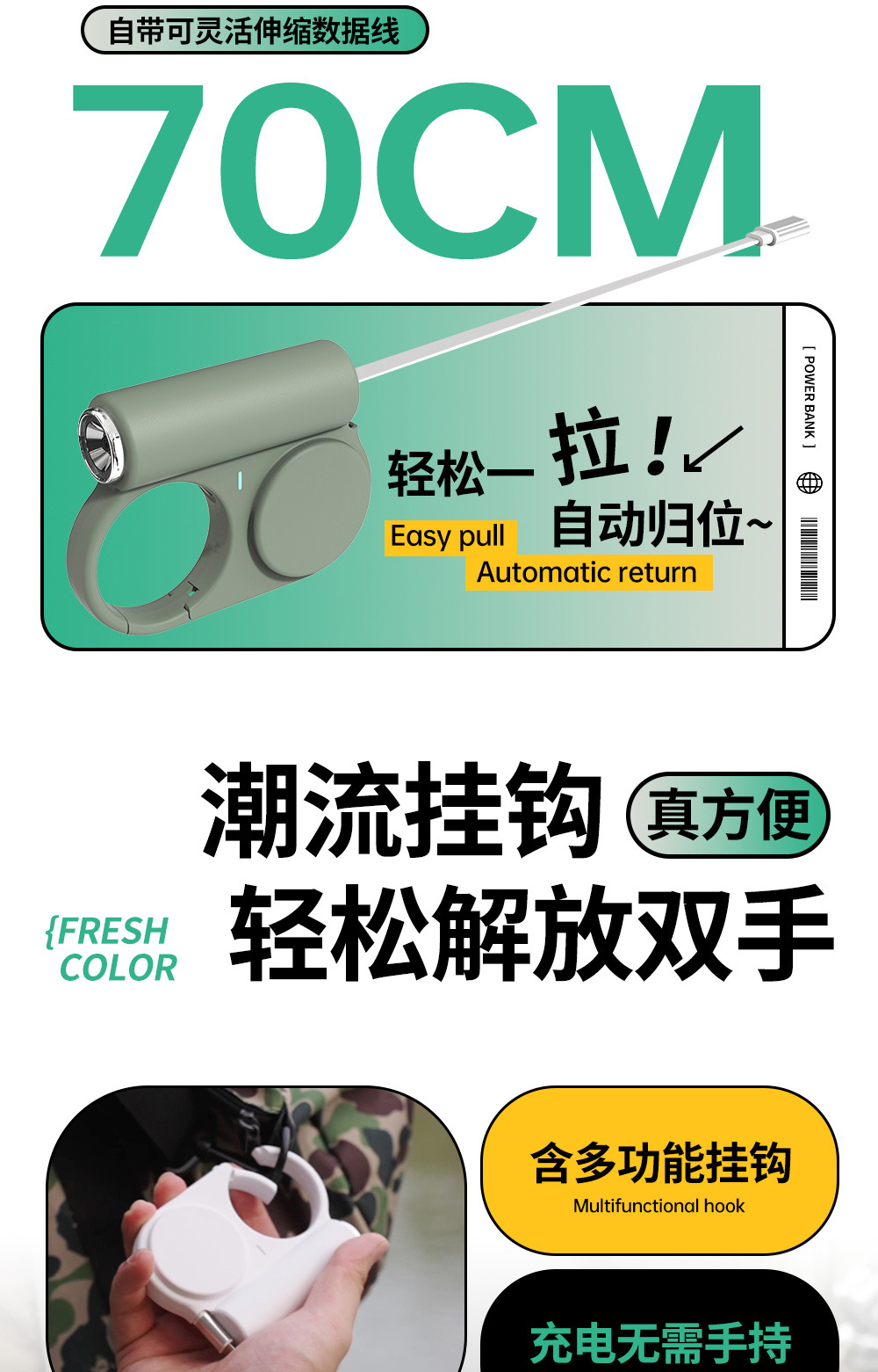 【创意伸缩自带线户外充电宝】快充小巧便携 5000毫安移动电源 国庆假期出行