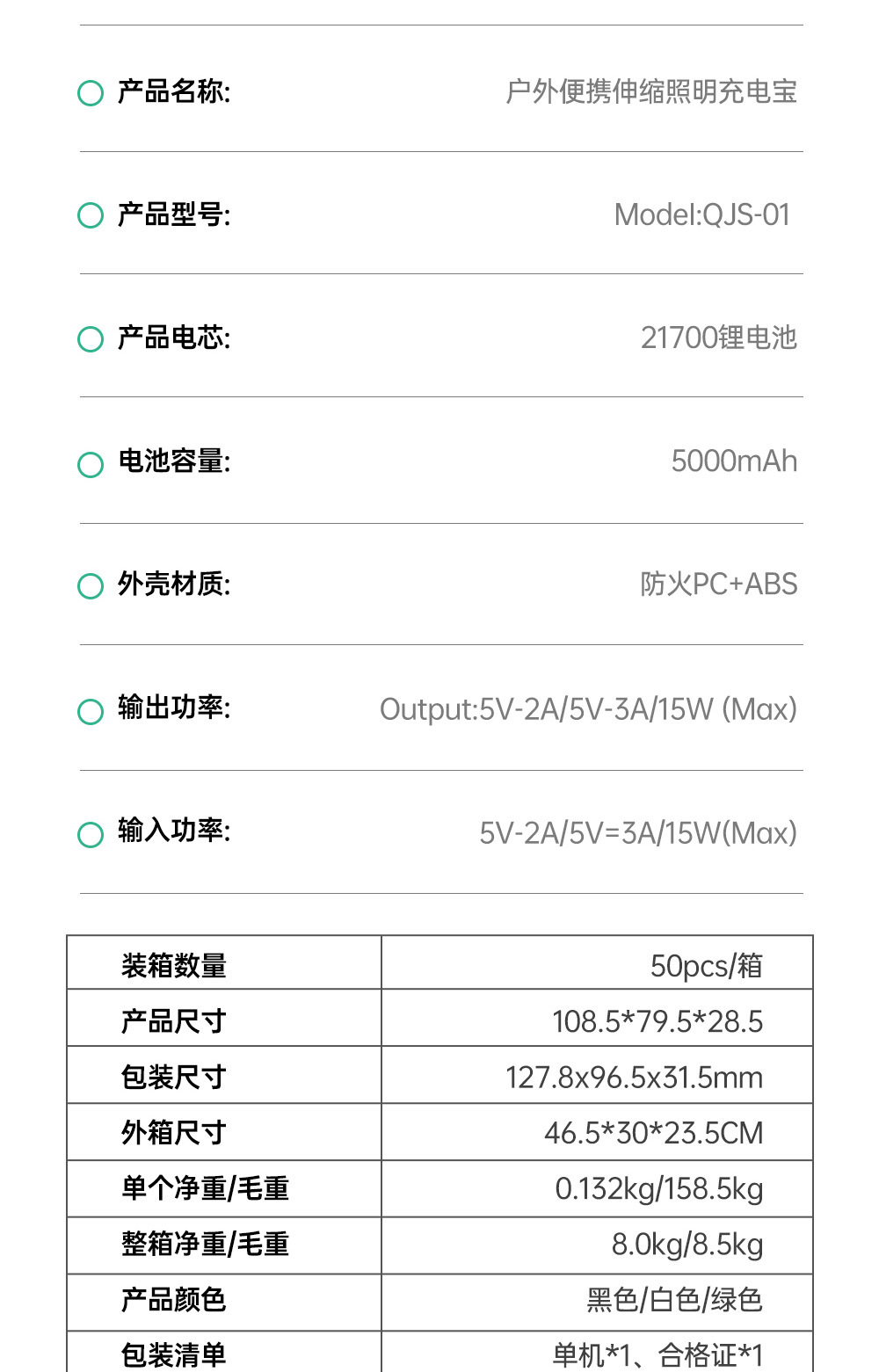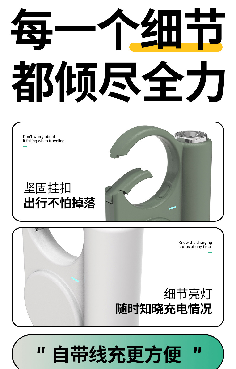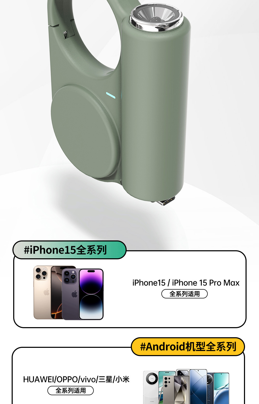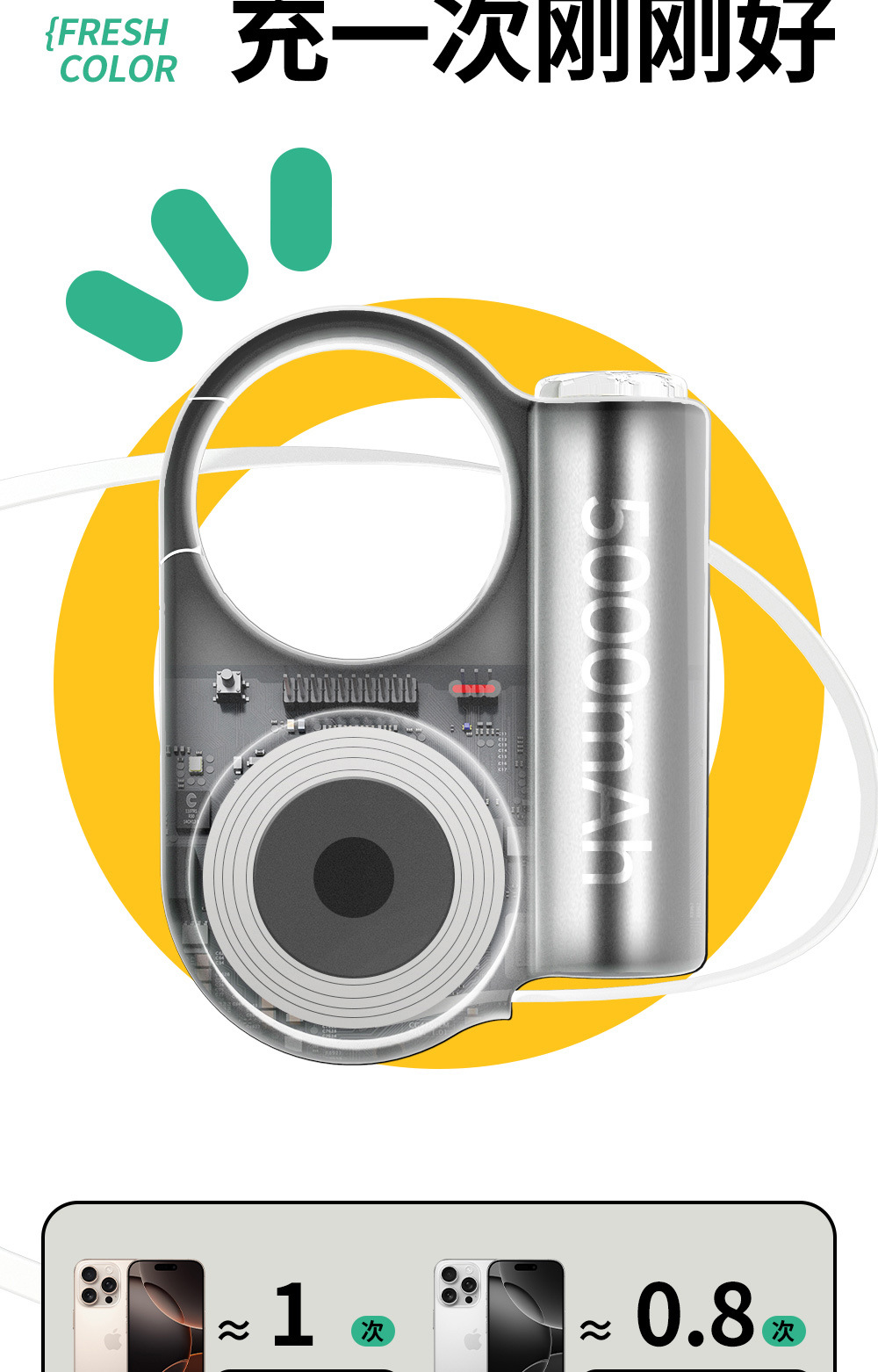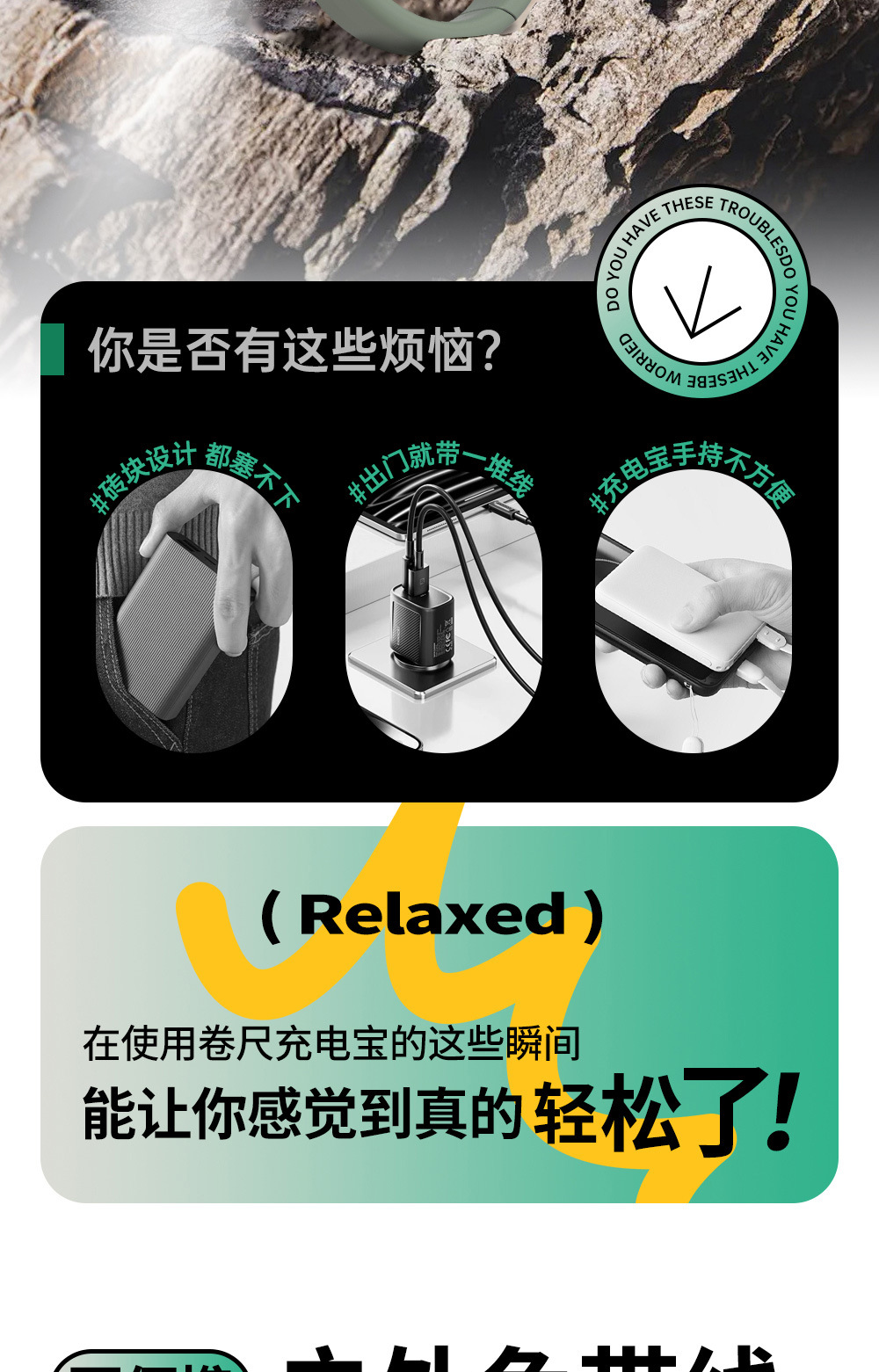 【创意伸缩自带线户外充电宝】快充小巧便携 5000毫安移动电源 国庆假期出行
