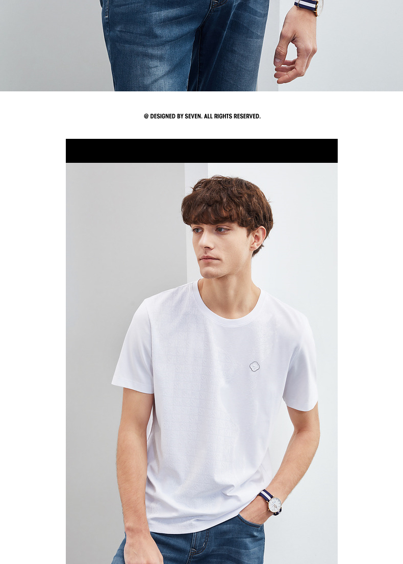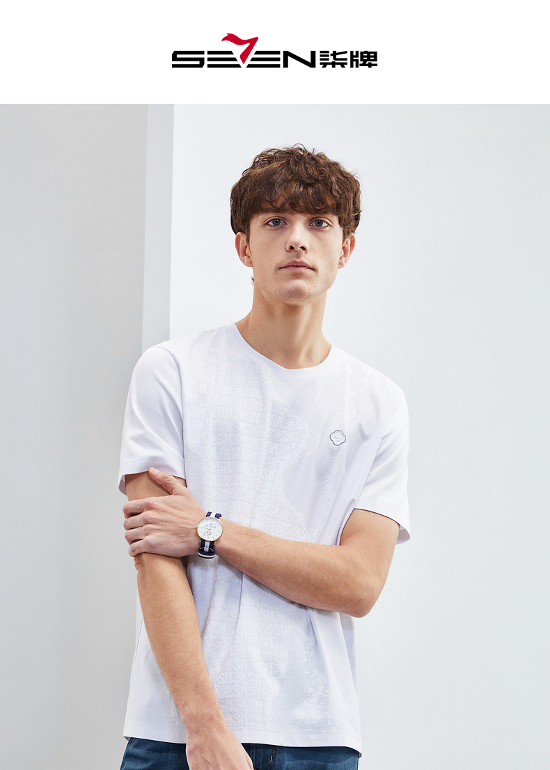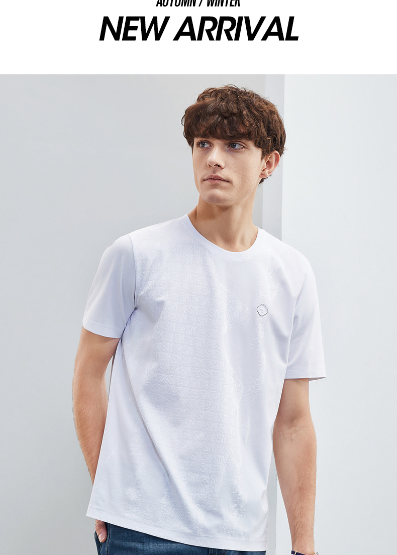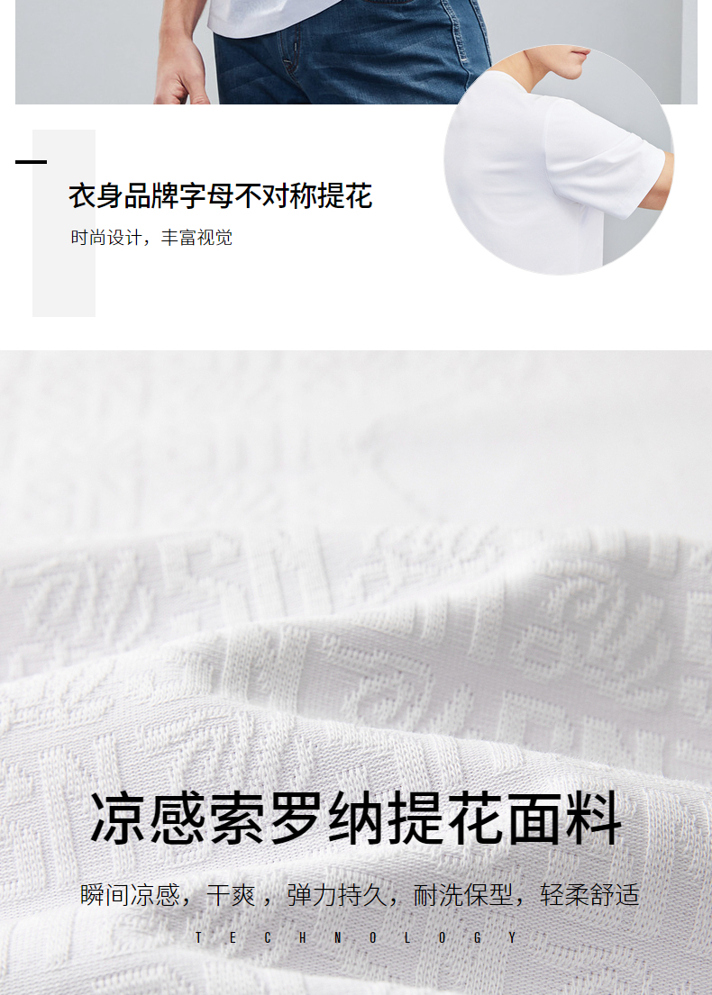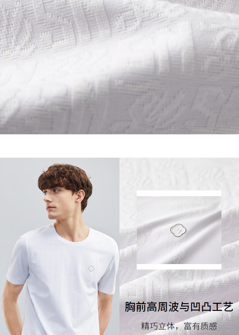 【凉感索罗纳】柒牌短袖T恤男夏季薄款时尚字母提花休闲圆领上衣 124T71700