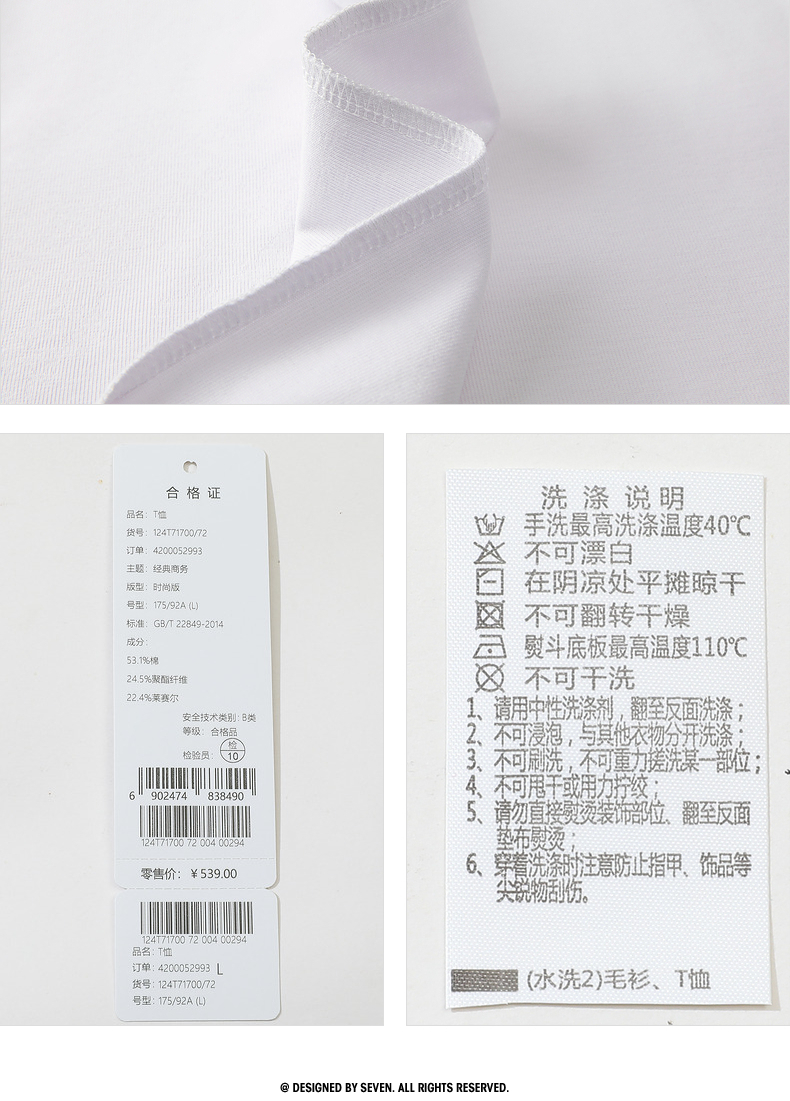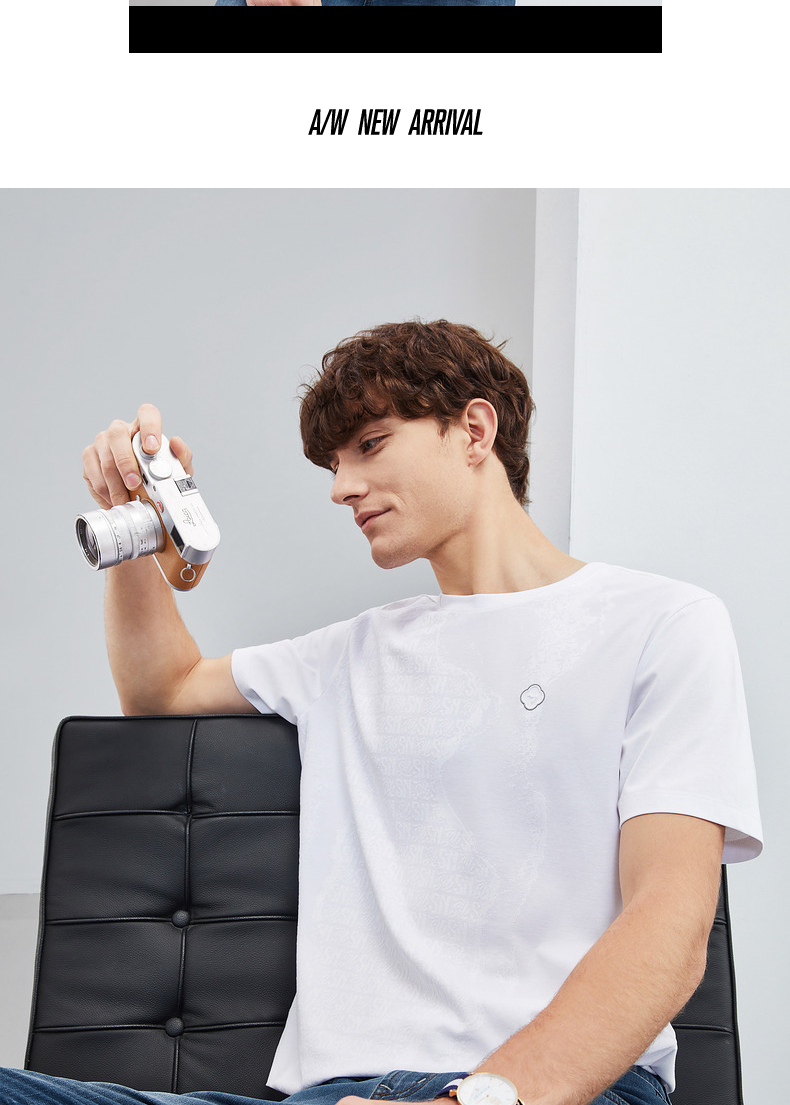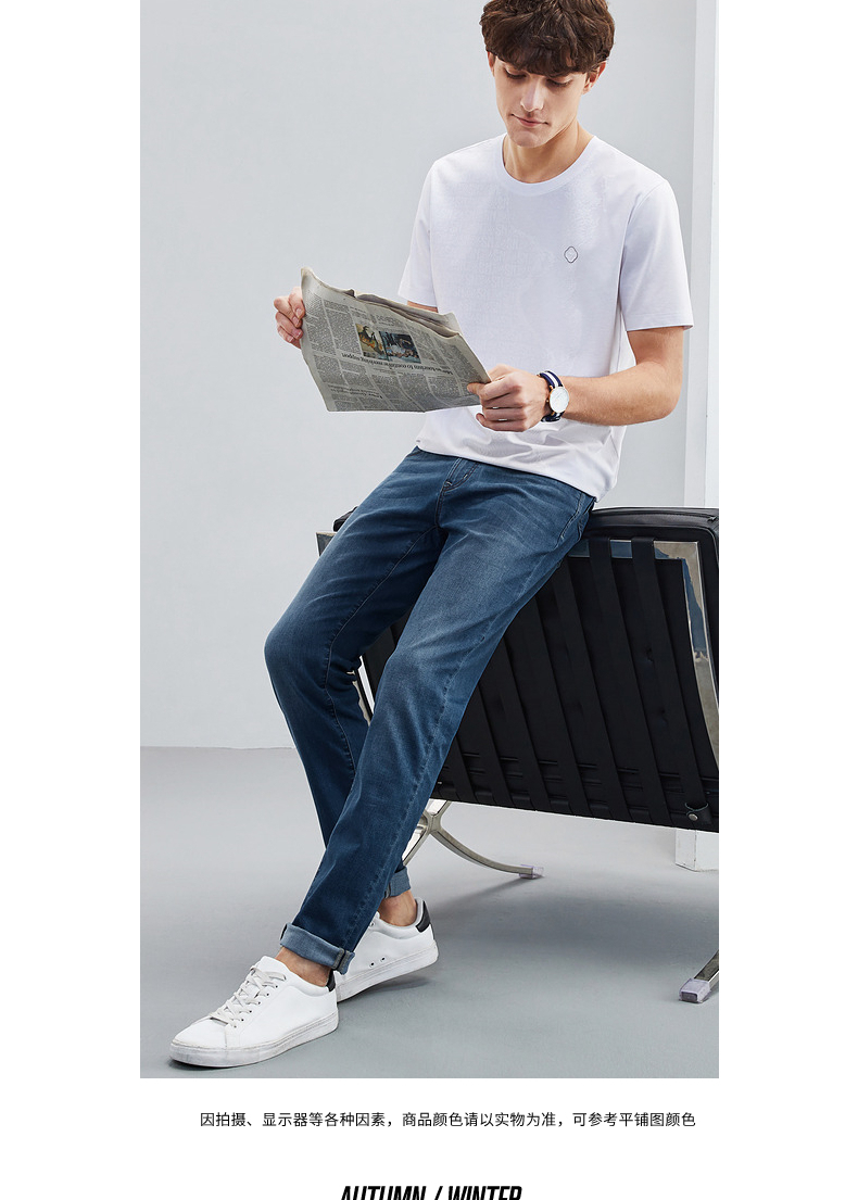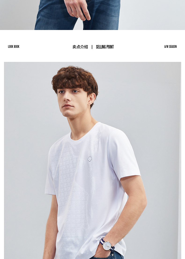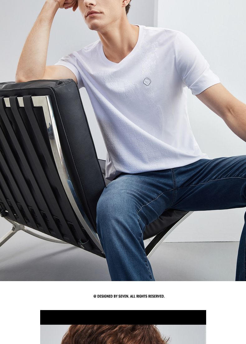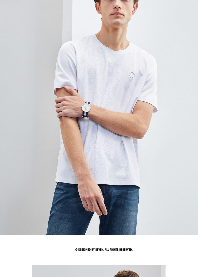 【凉感索罗纳】柒牌短袖T恤男夏季薄款时尚字母提花休闲圆领上衣 124T71700