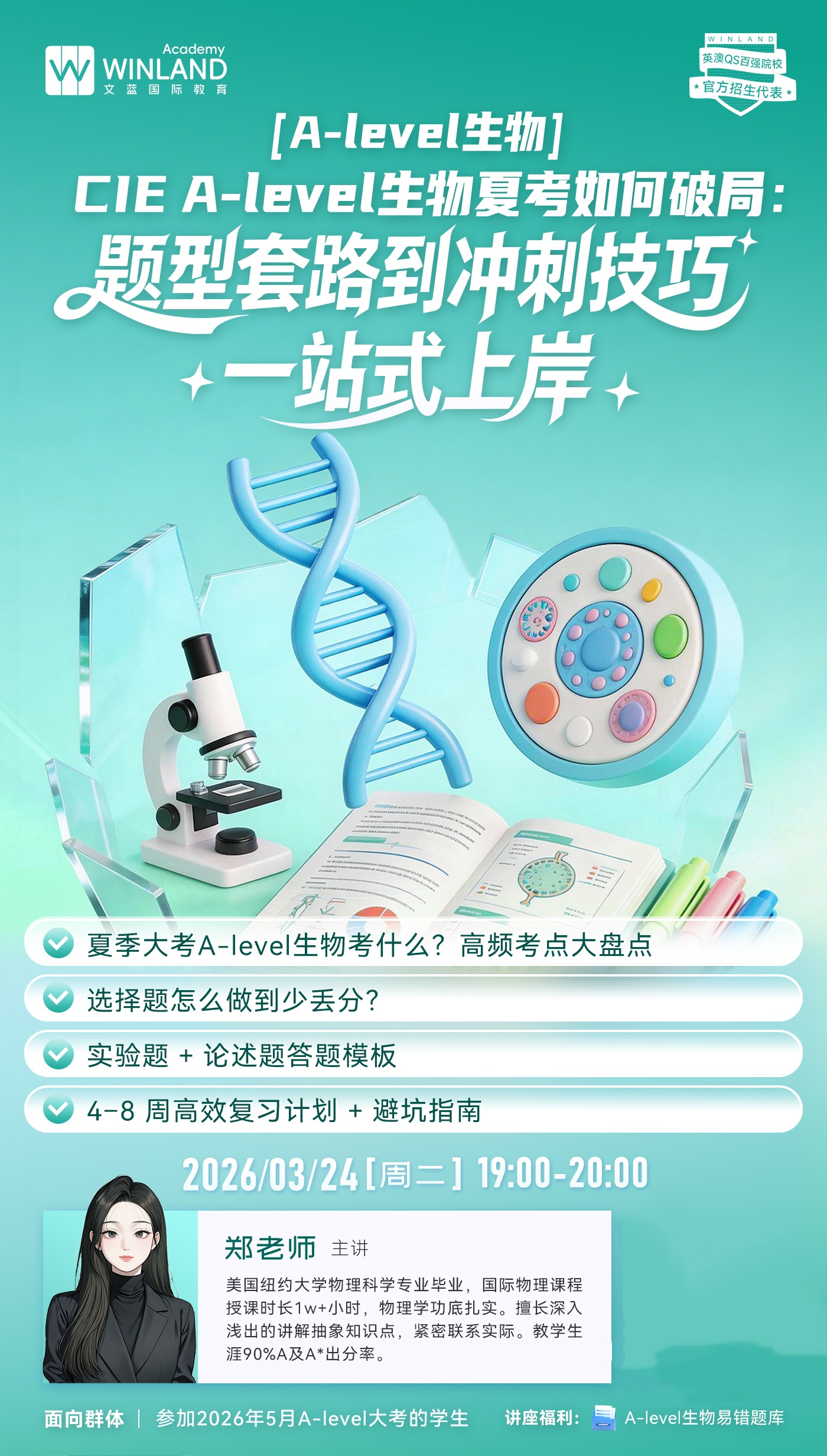 【3.24】A-level生物 CIE A-level生物夏考如何破局: 从题型套路到冲刺技巧,一站式上岸!