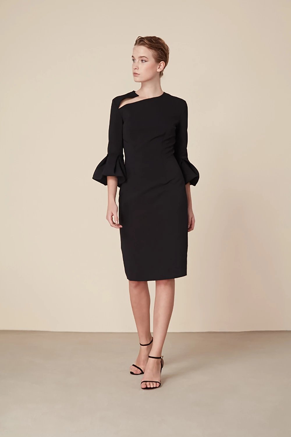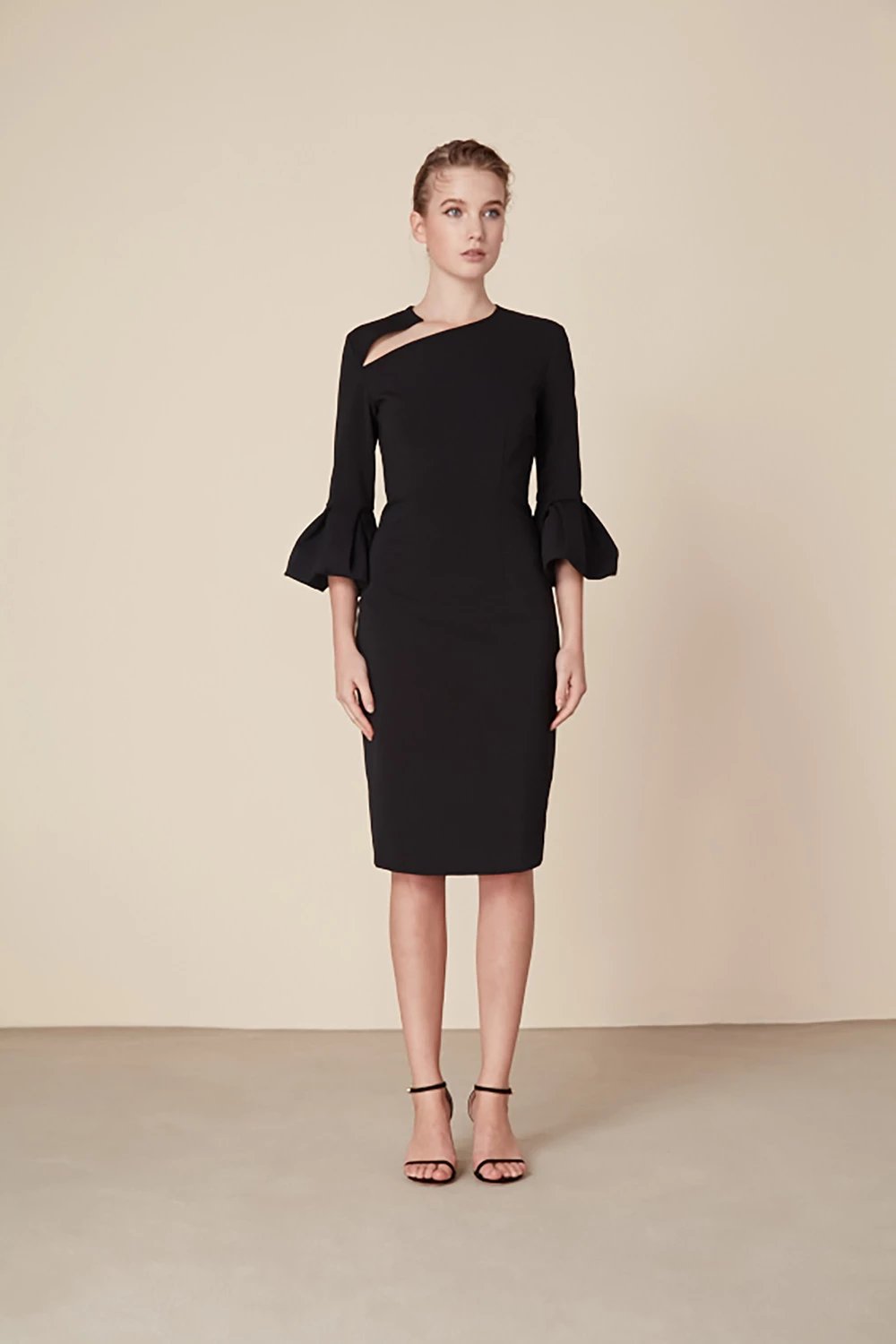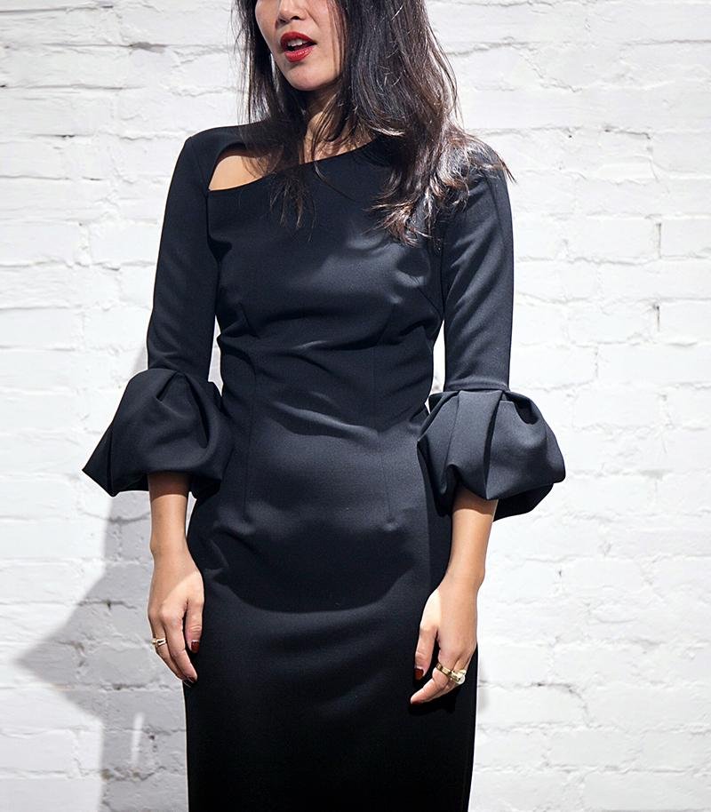 Atelier Miss Lu/ Madeline - 黑色钟形袖肩部挖剪连身裙