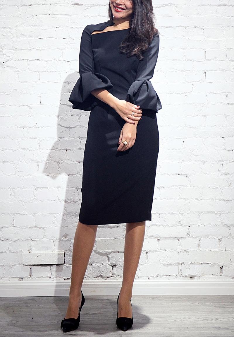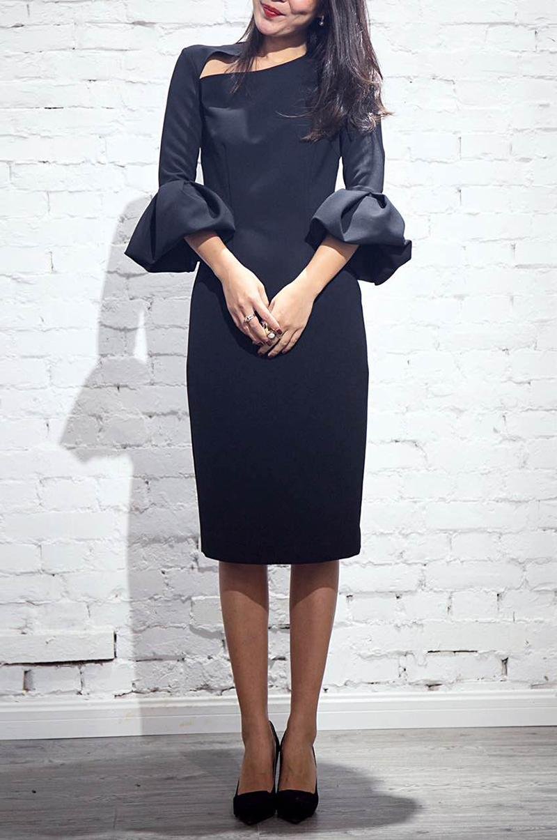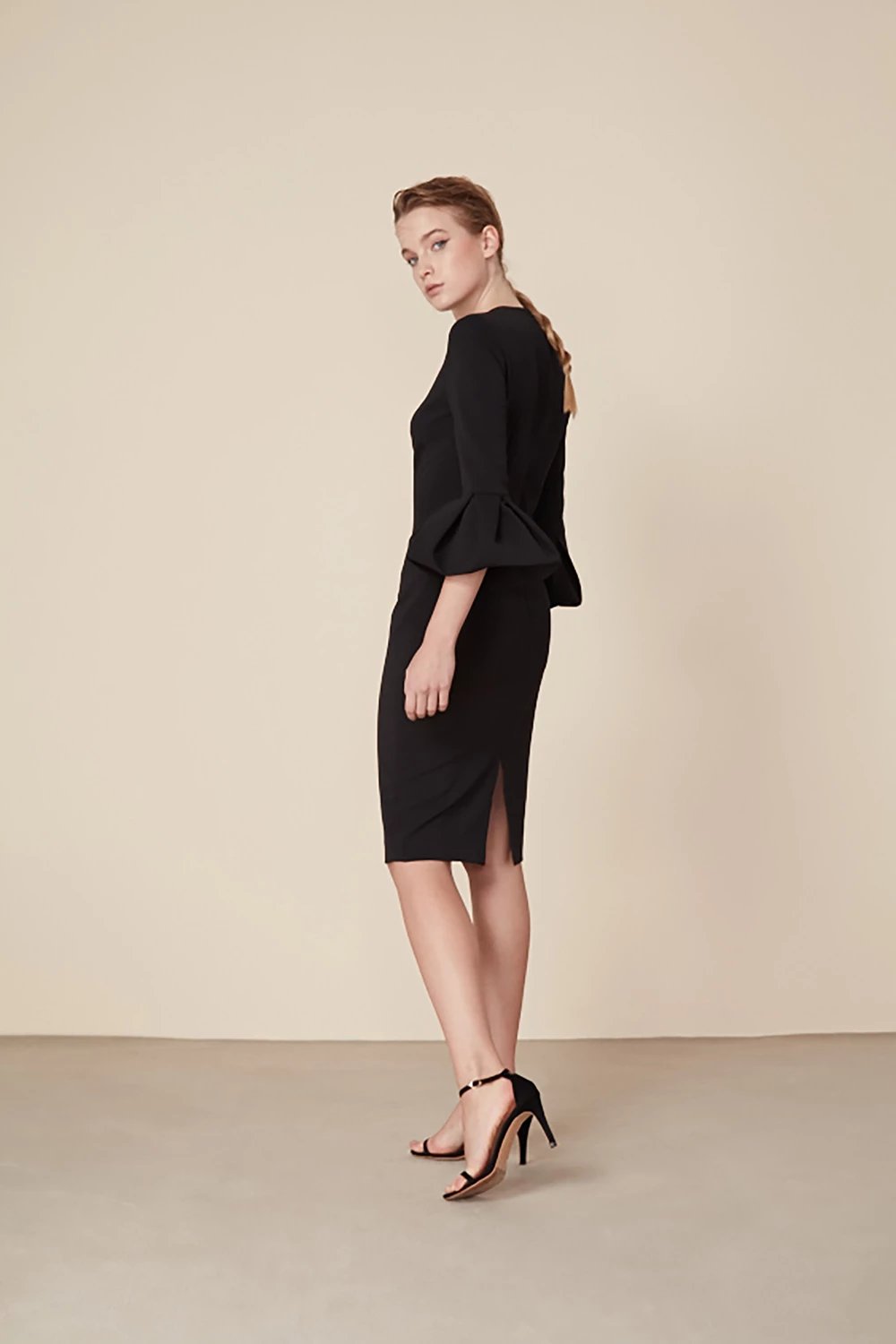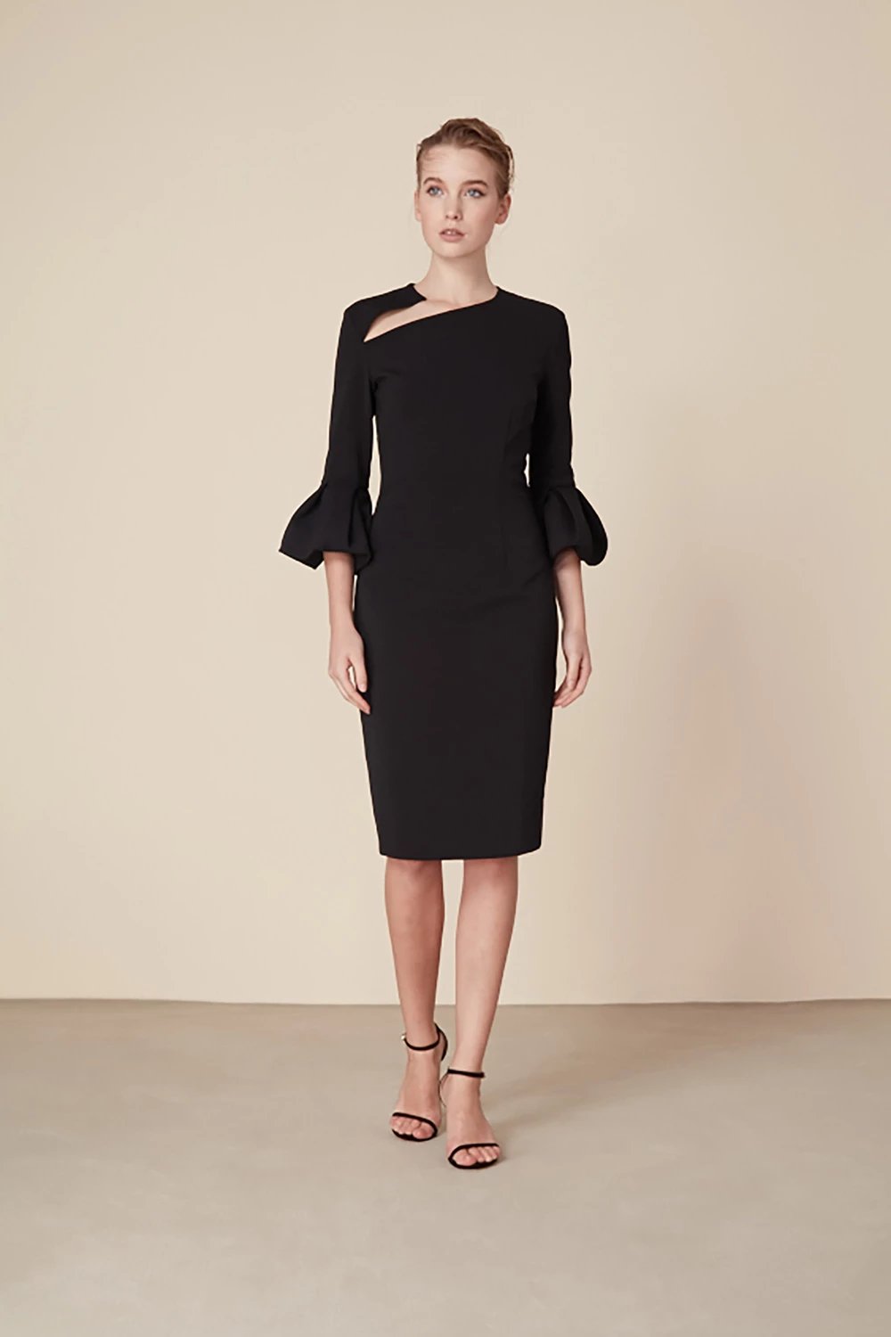 Atelier Miss Lu/ Madeline - 黑色钟形袖肩部挖剪连身裙