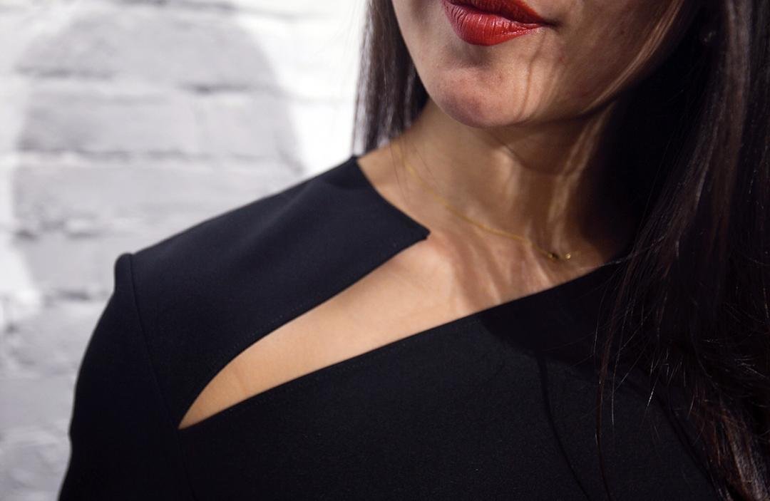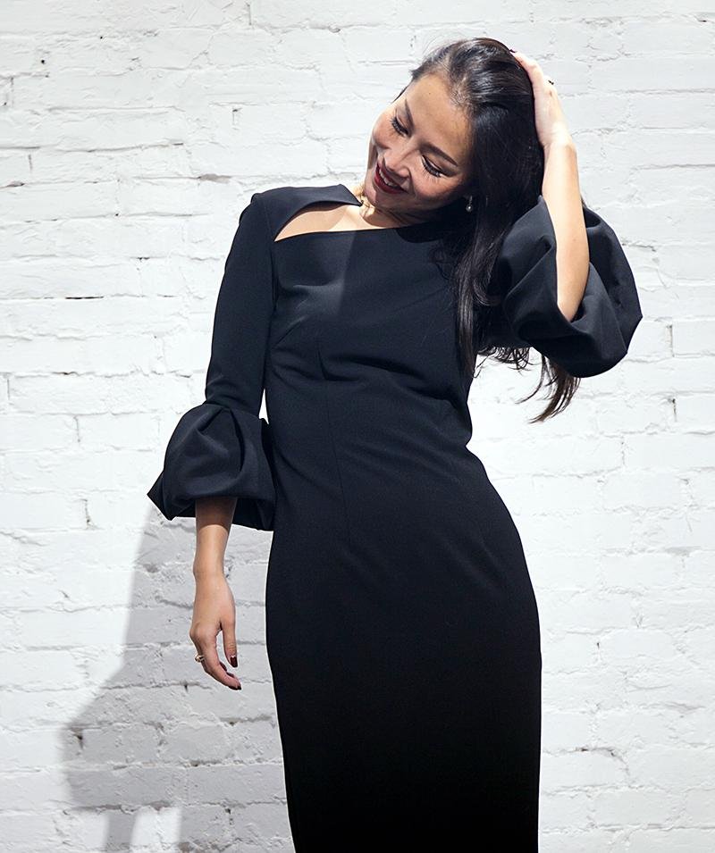 黑色钟形袖肩部挖剪连身裙以丰富的细节令全黑设计更具质感,整体散发浓厚的复古宫廷气息。衣袖的褶裥拼接塑造出立体感极强的钟形袖,形成廓形上的变化和对比。肩部性感的不对称挖剪,配以舒适的混棉弹力面料营造的精美贴身廓形,更加突显出修身效果,增添妩媚气息,令秋冬造型楚楚动人。