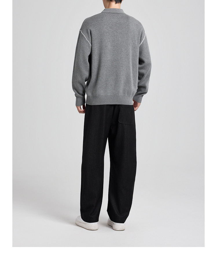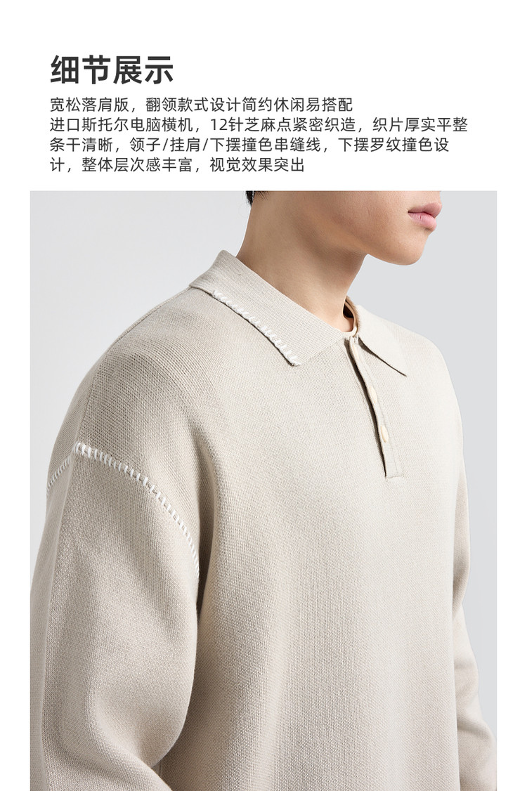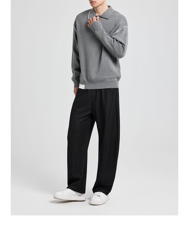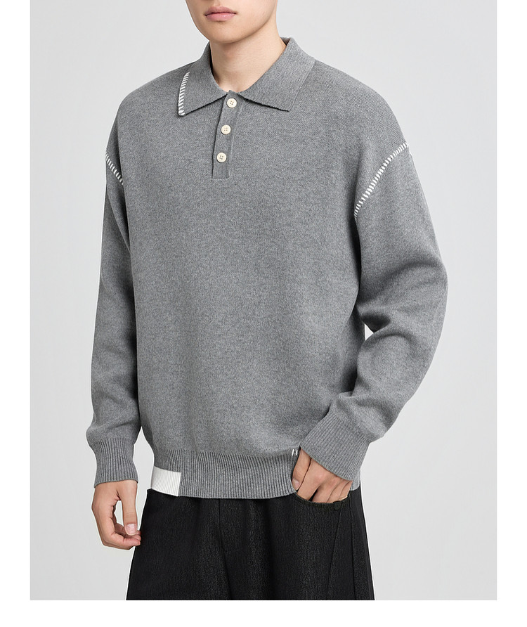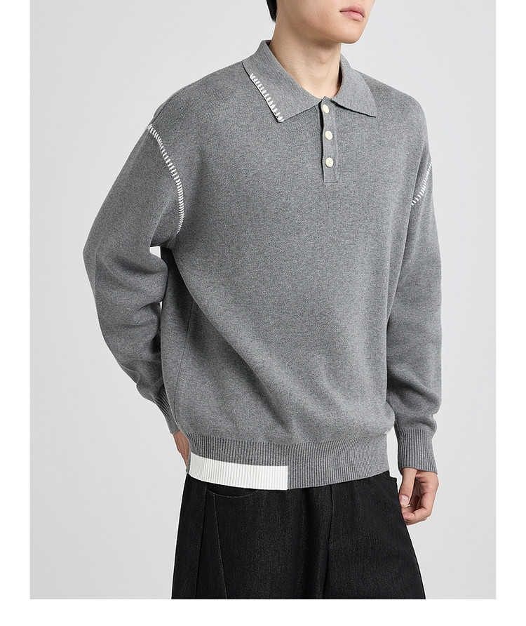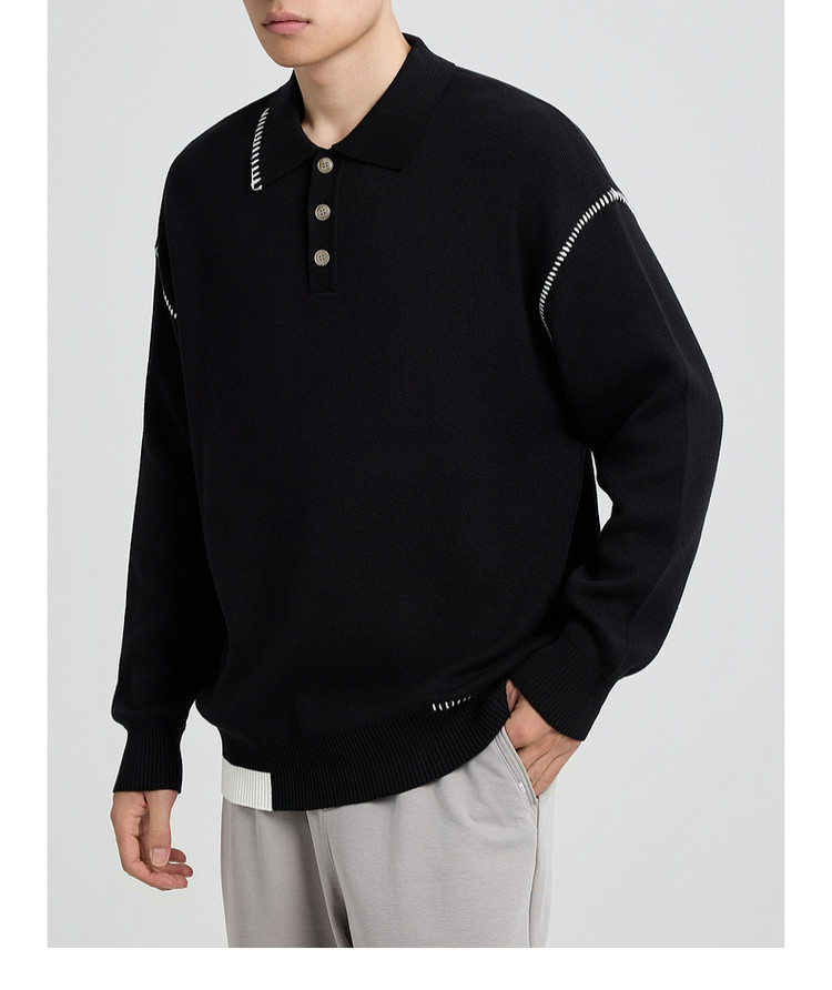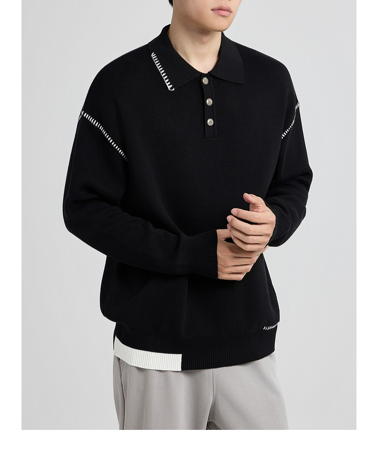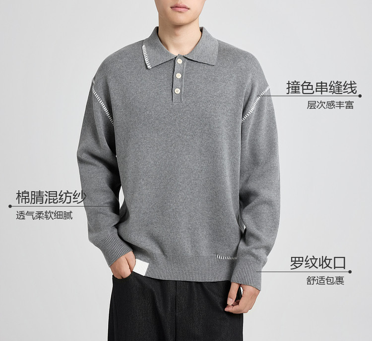 墨麦客撞色串缝翻领针织衫男2025冬季新款宽松休闲慵懒感毛衣男潮