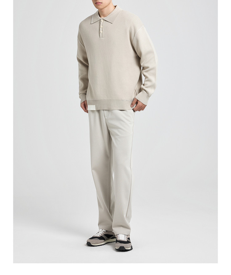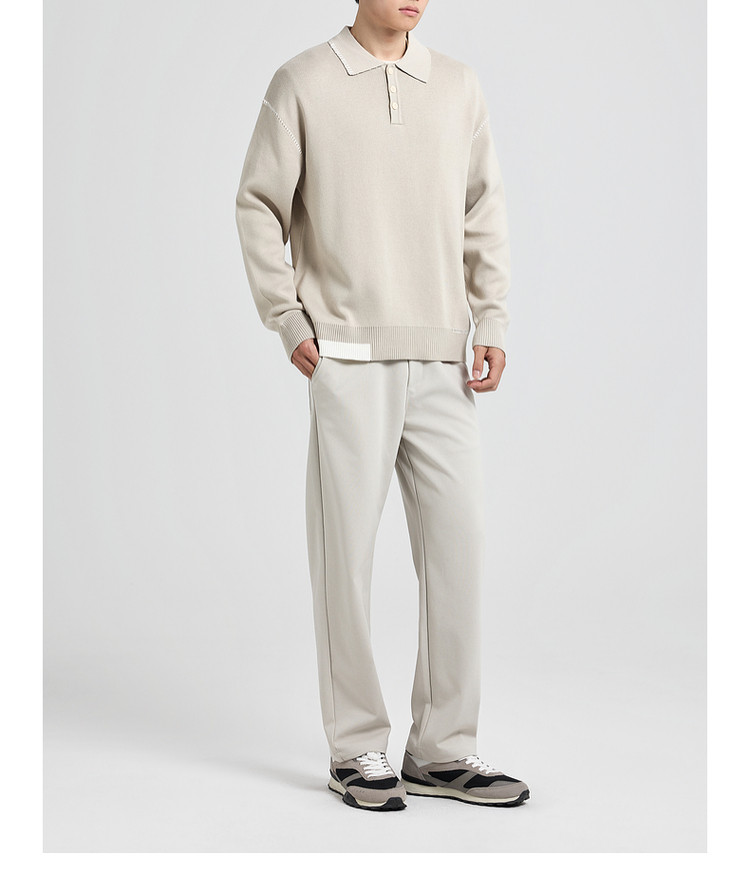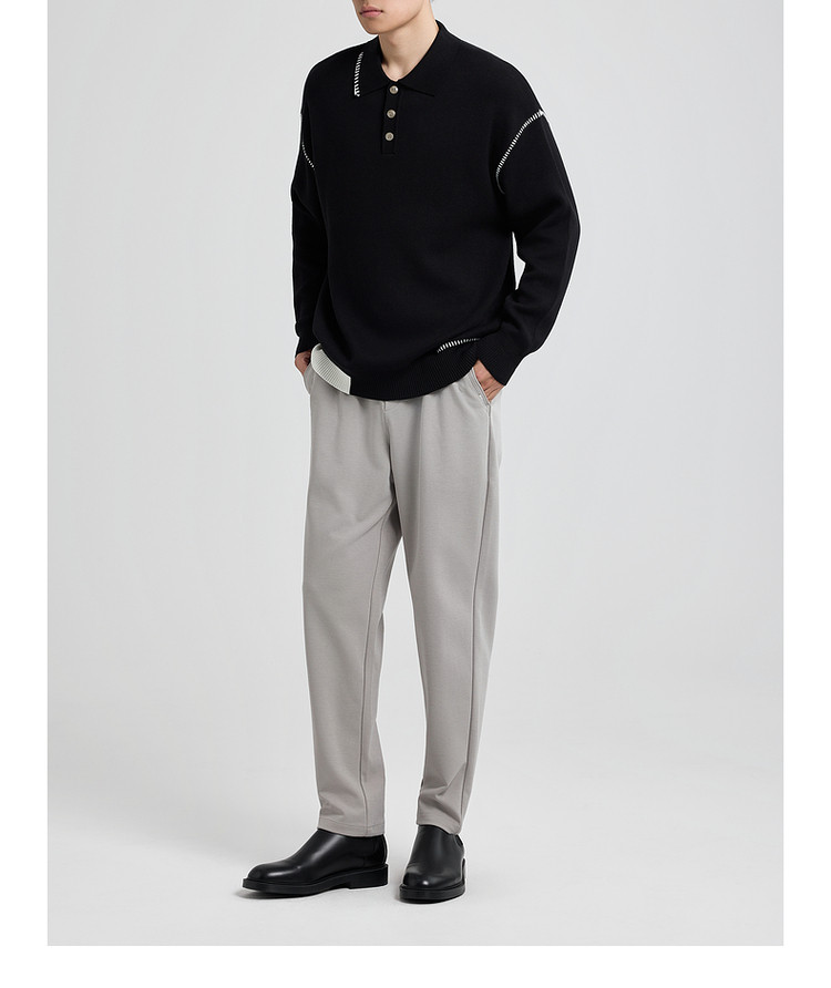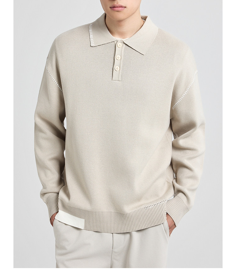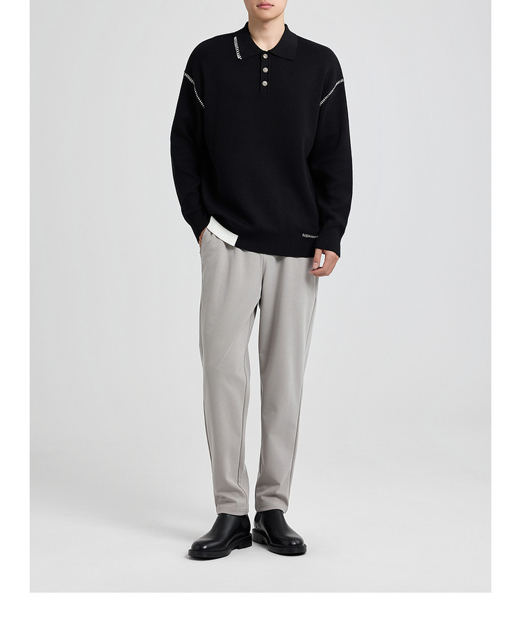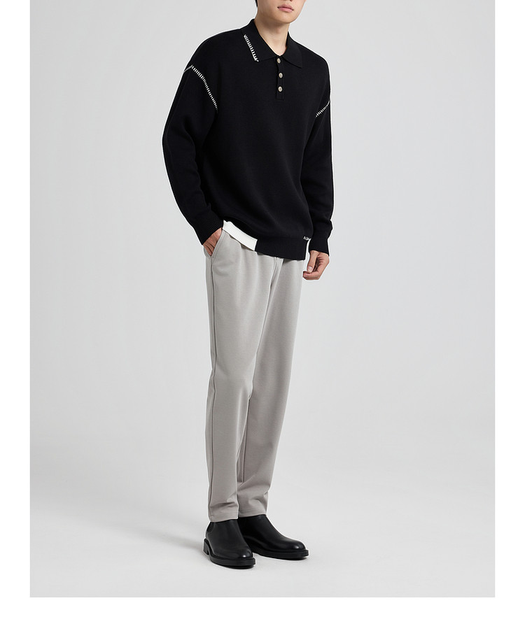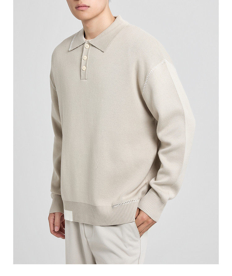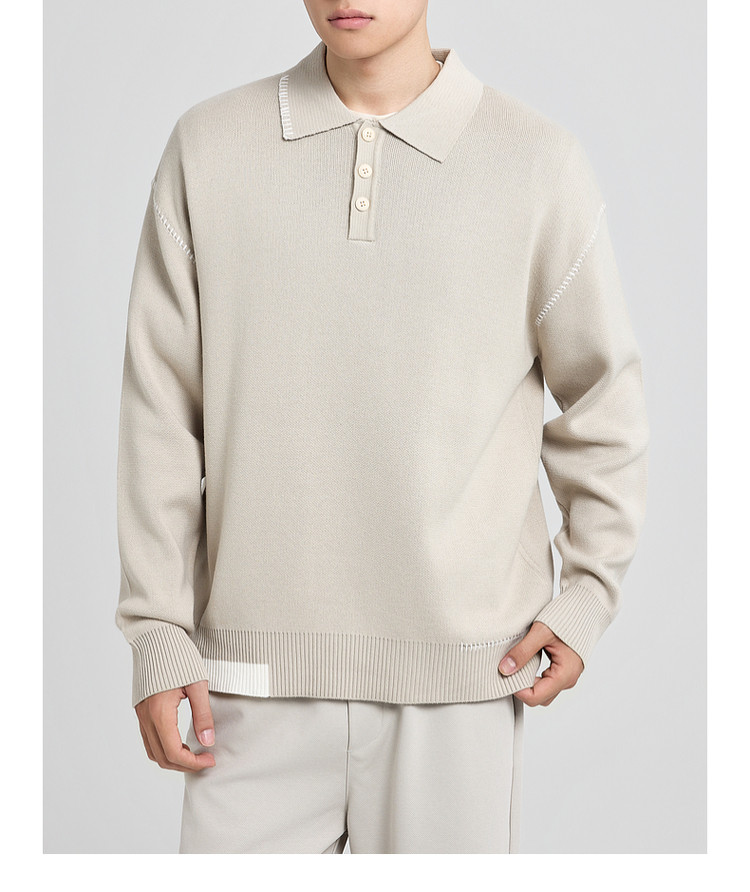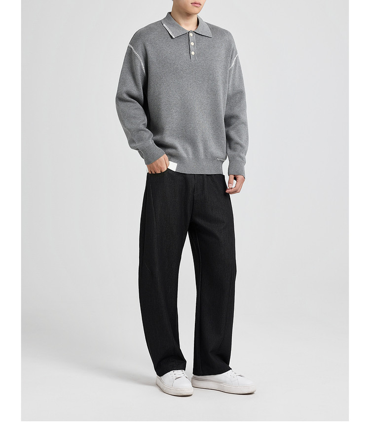 墨麦客撞色串缝翻领针织衫男2025冬季新款宽松休闲慵懒感毛衣男潮