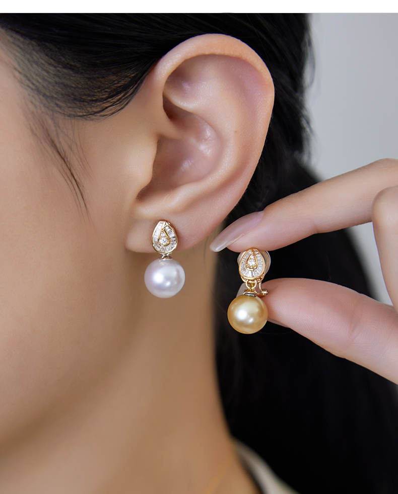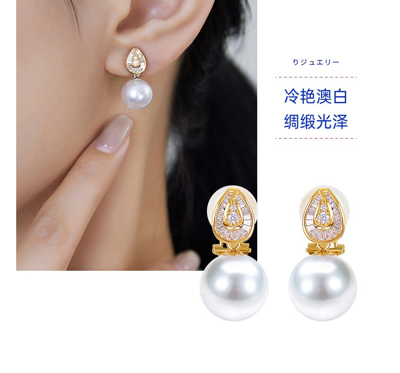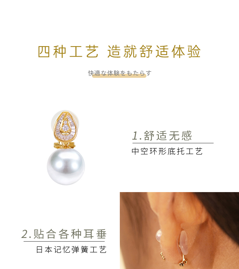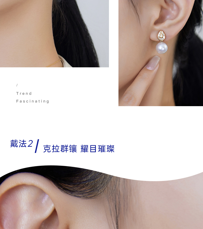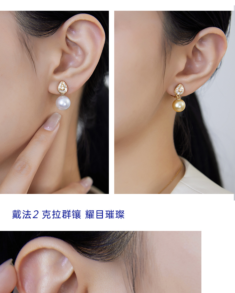 【天猫同款】18k金两戴款钻石珍珠耳夹 芳耀