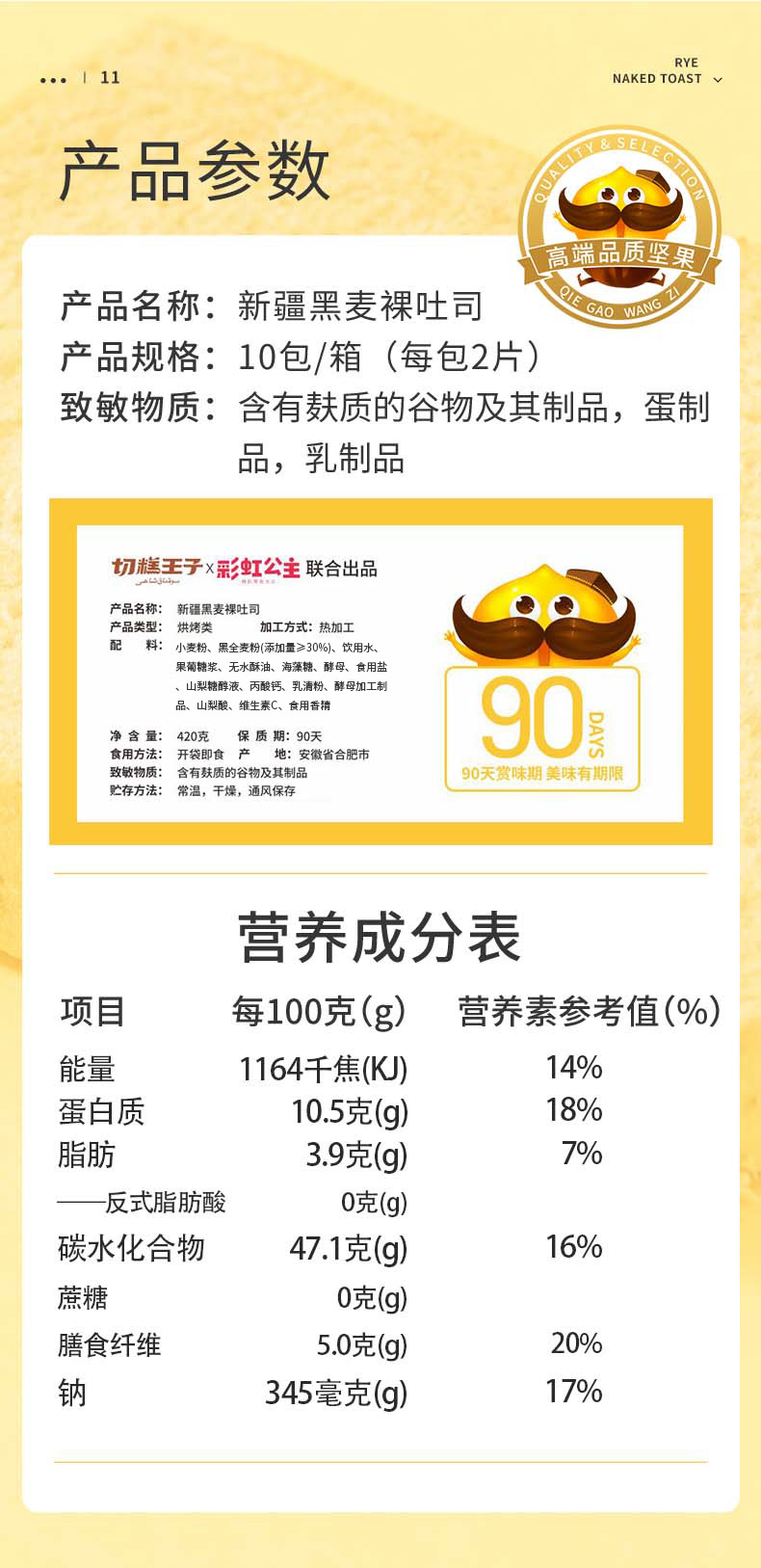 切糕王子新疆黑麦裸吐司 420g/箱