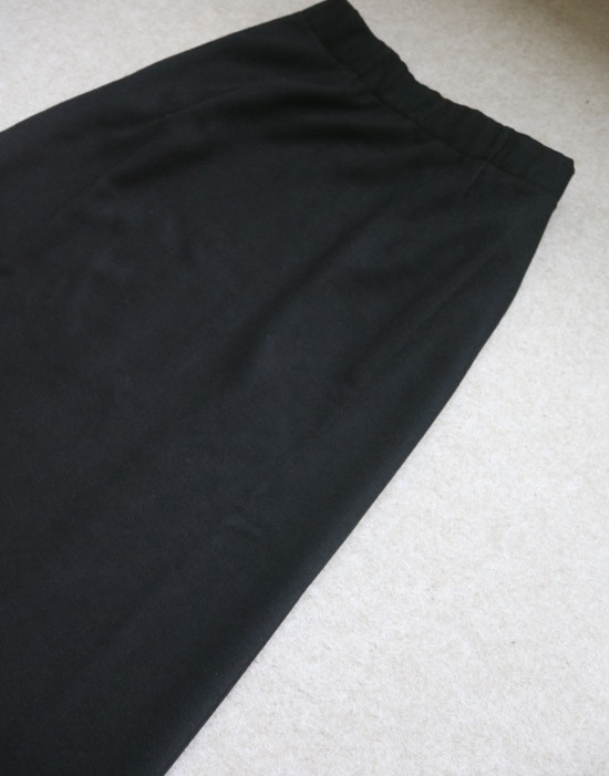 从正面看 裙摆直溜溜下来 后面 屁屁会稍微有点突出 或者说 面料是服帖的