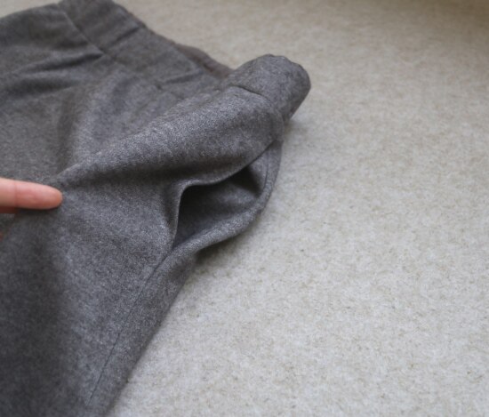 腰头下 前后各有两个小捏褶 起到收布料的作用 优化高腰