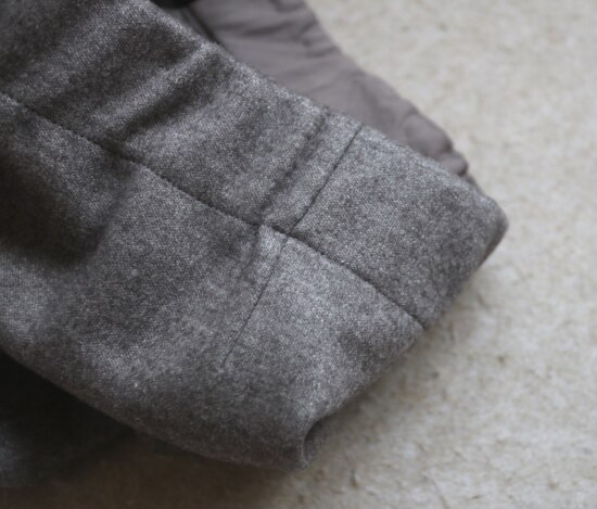 里层 没有表层的毛呢感 就是很典型的平纹针织肌理 有很轻微的一层绒毛