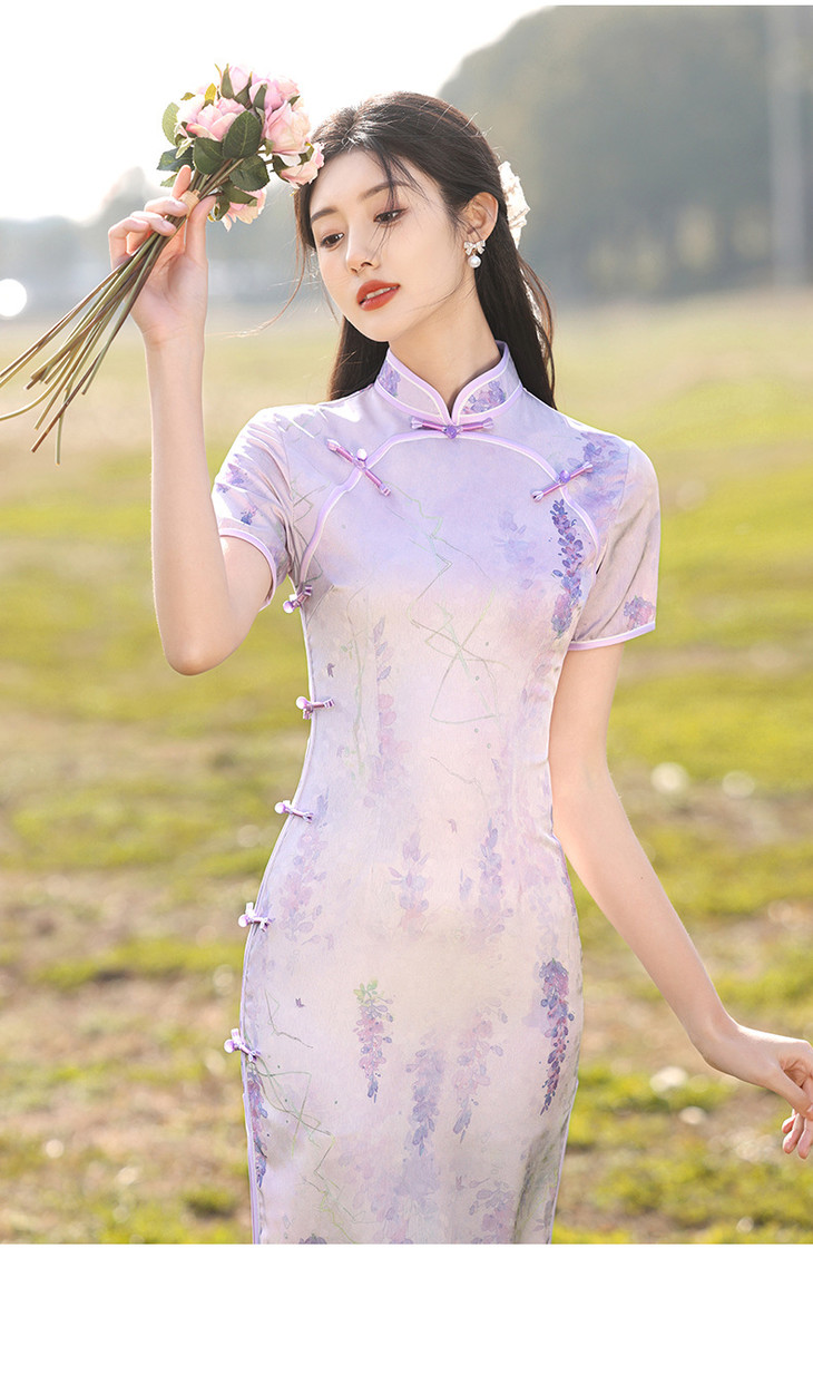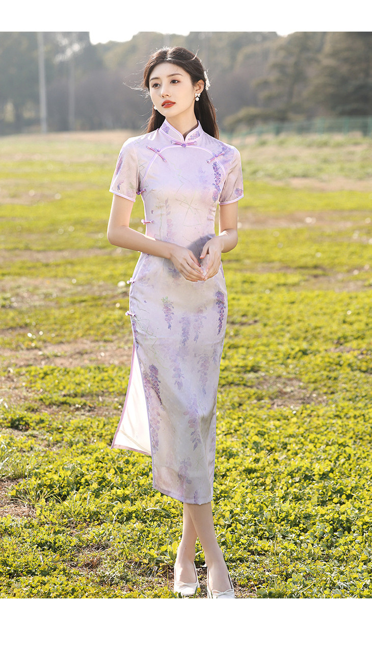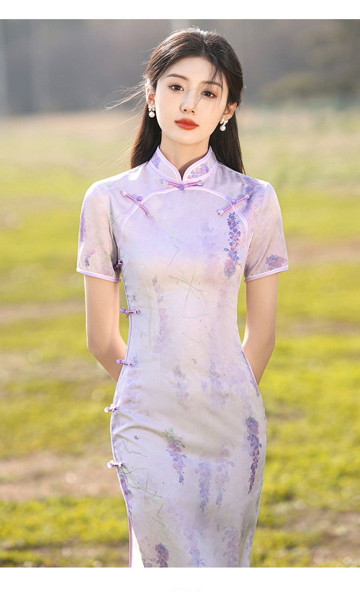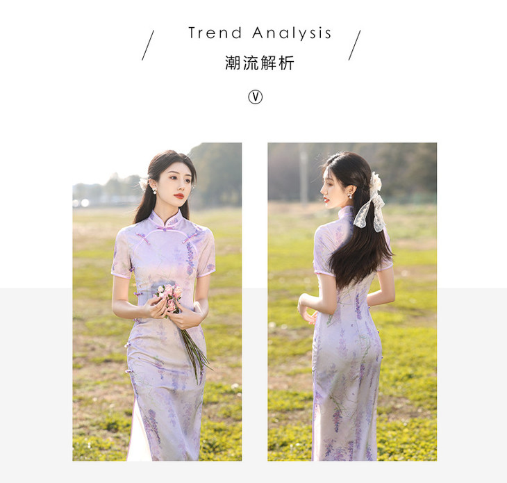紫色旗袍高级感年轻款双襟新式长款LSB1980
