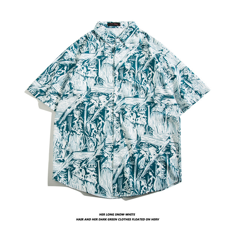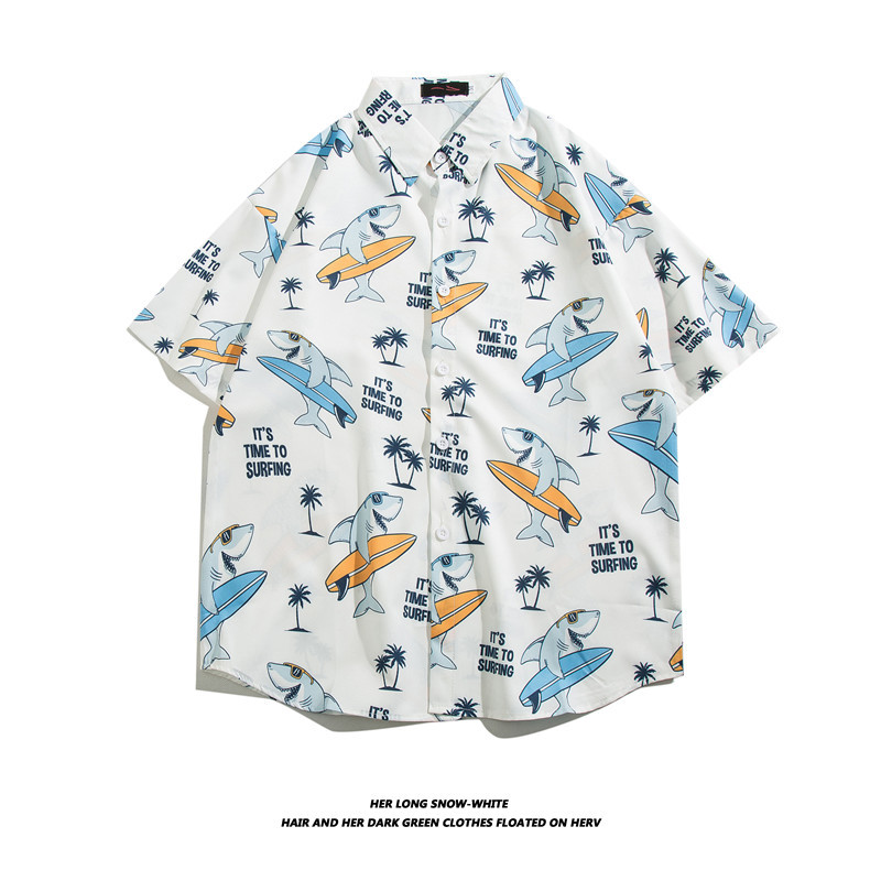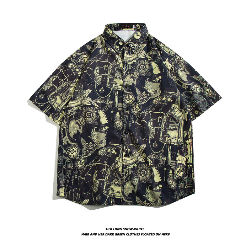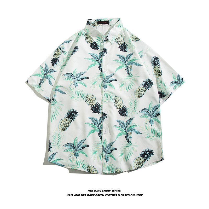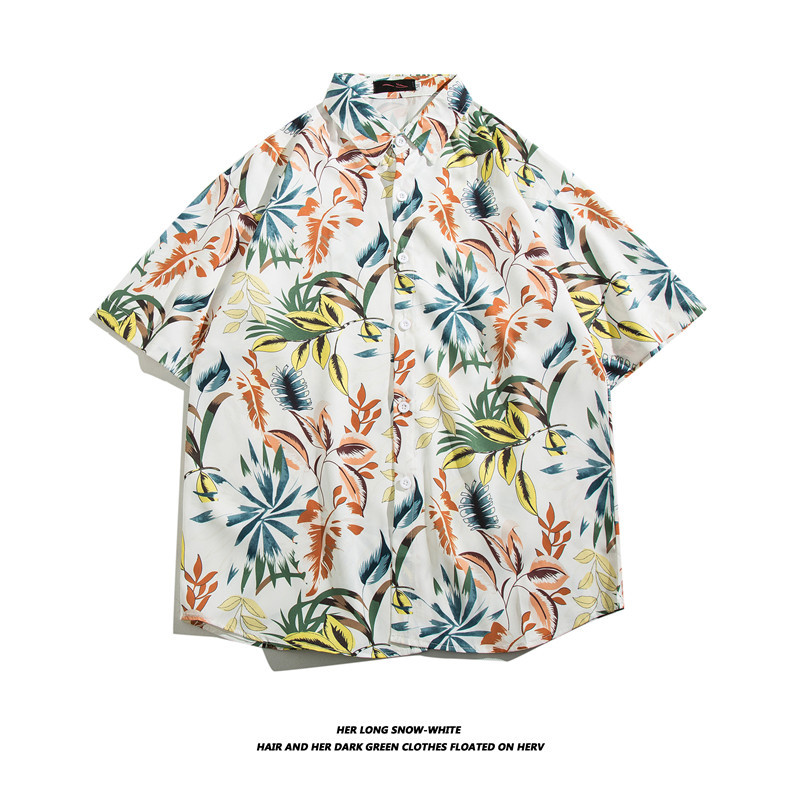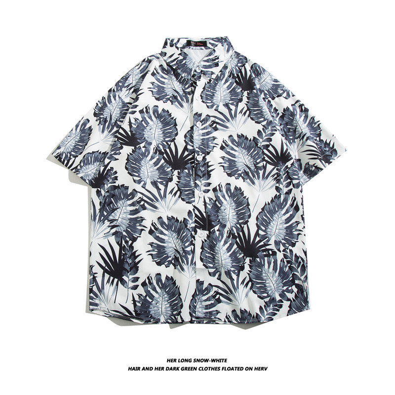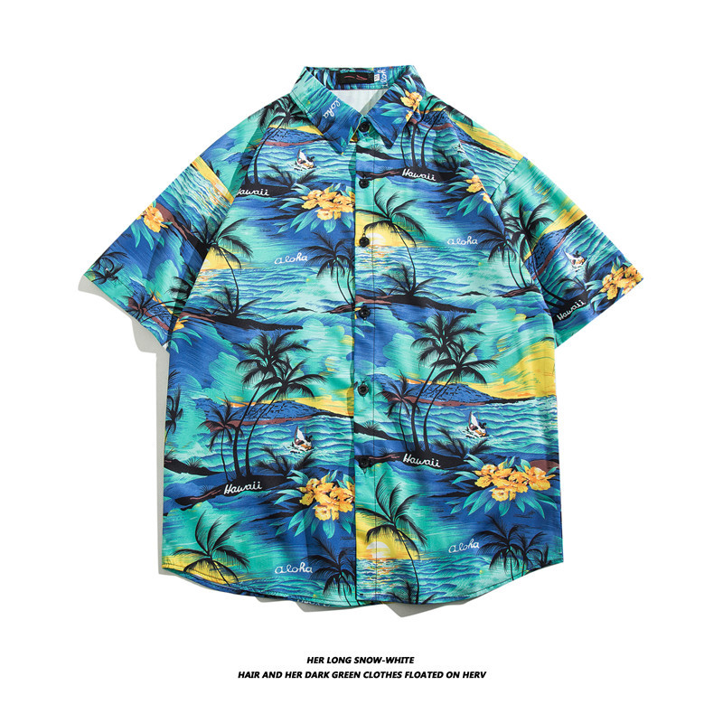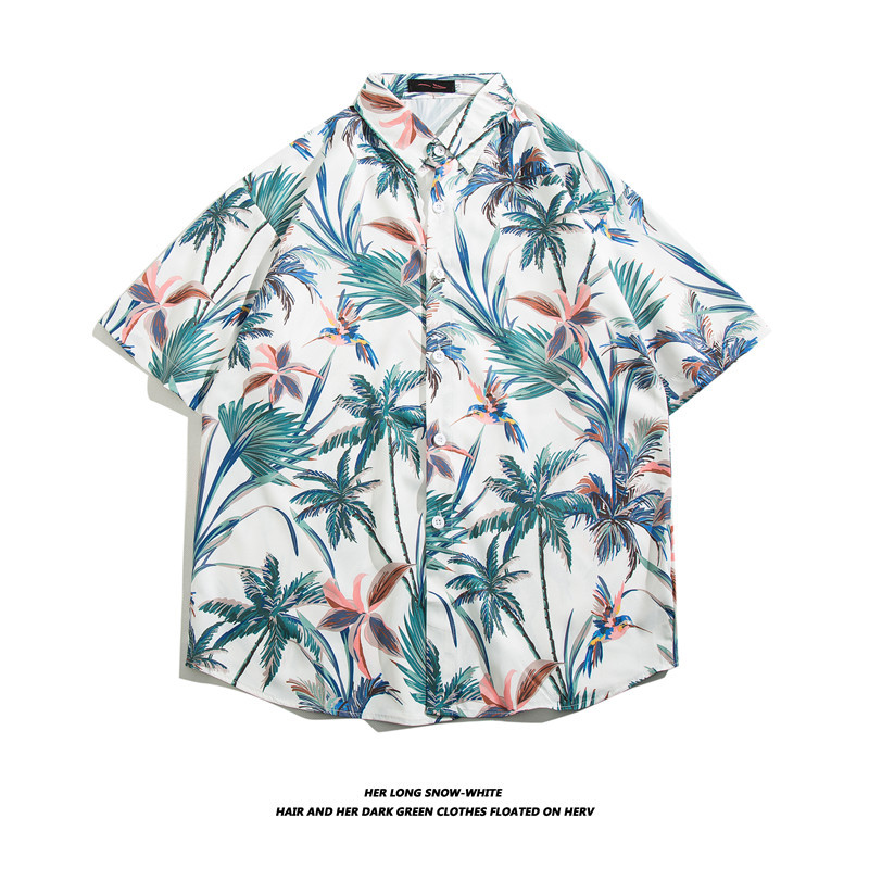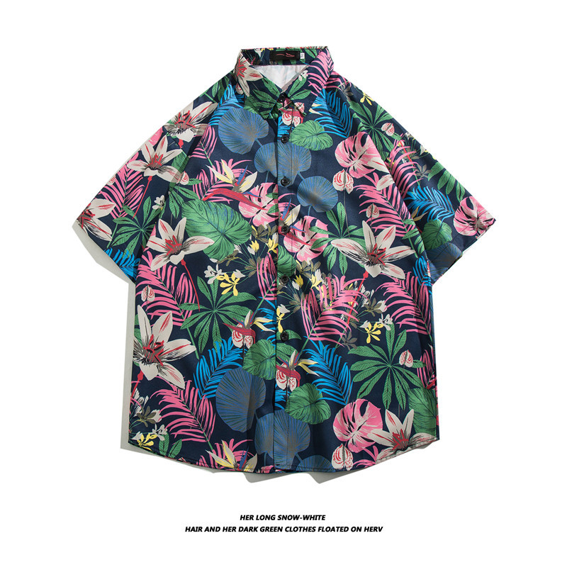 【夏威夷冰丝寸衫】男士潮牌短袖衬衫 夏季沙滩花衬衣情侣装 宽松外套上衣
