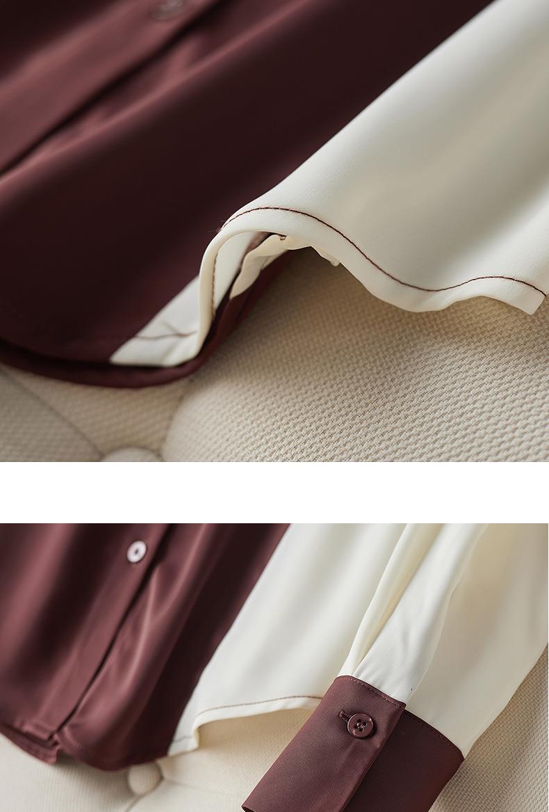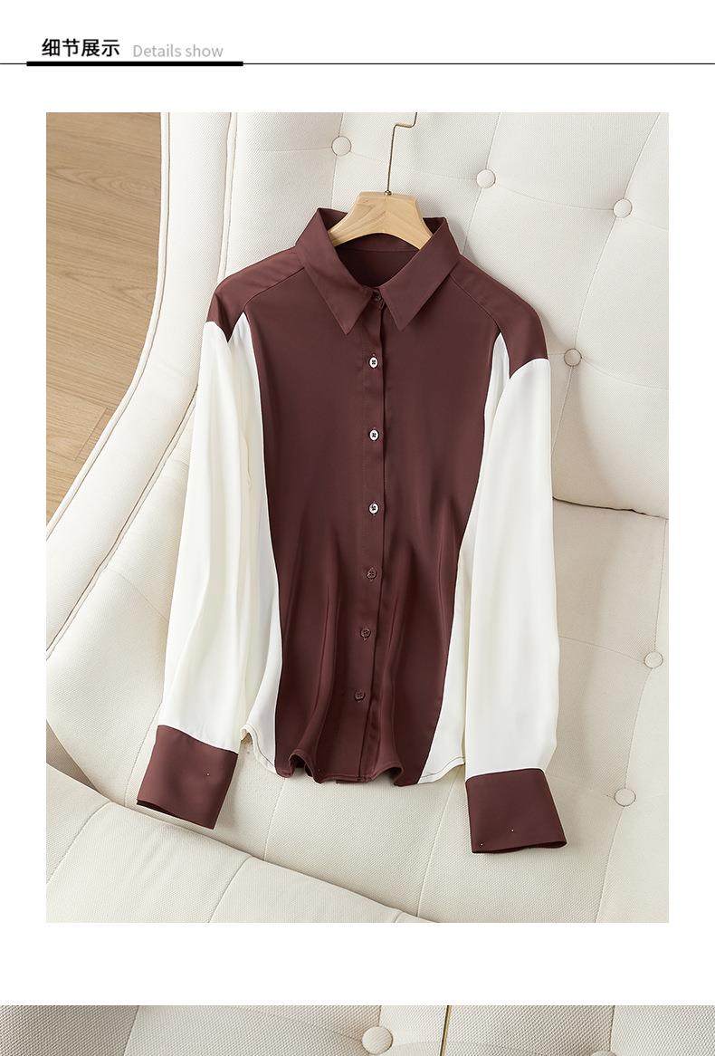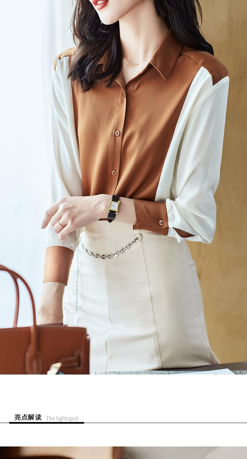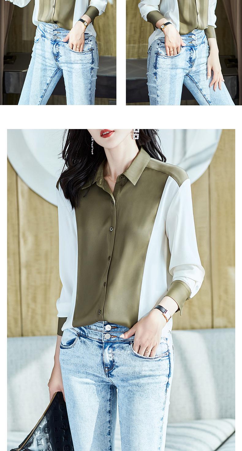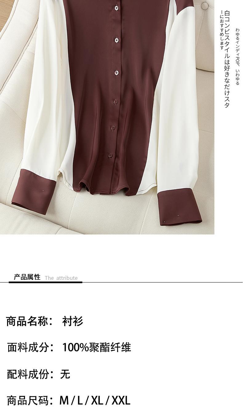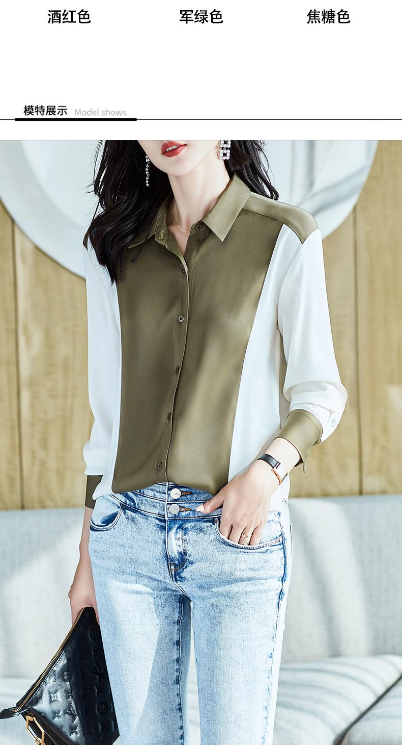 2023秋装新款衬衫女长袖宽松雪纺衫撞色女士衬衣A2716