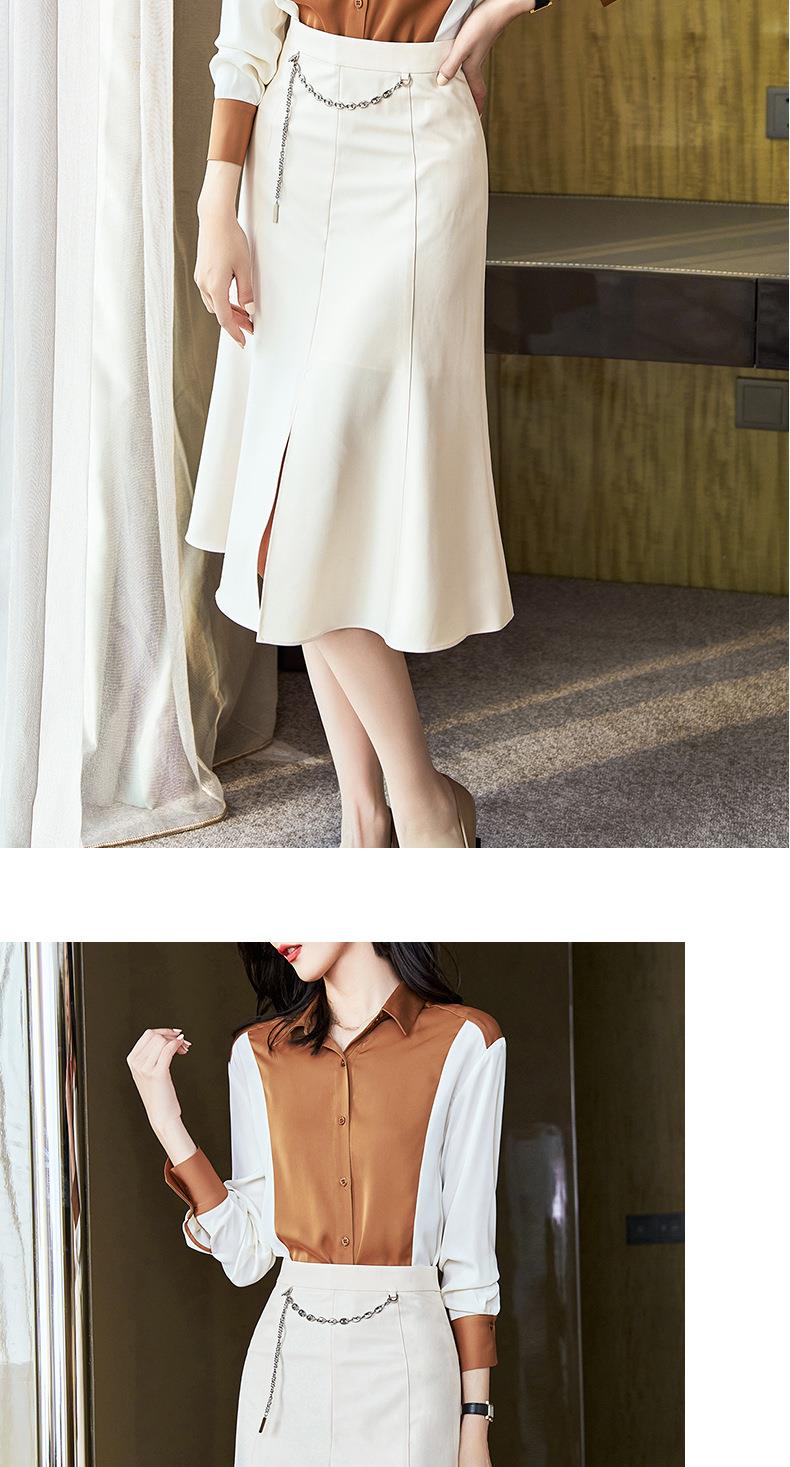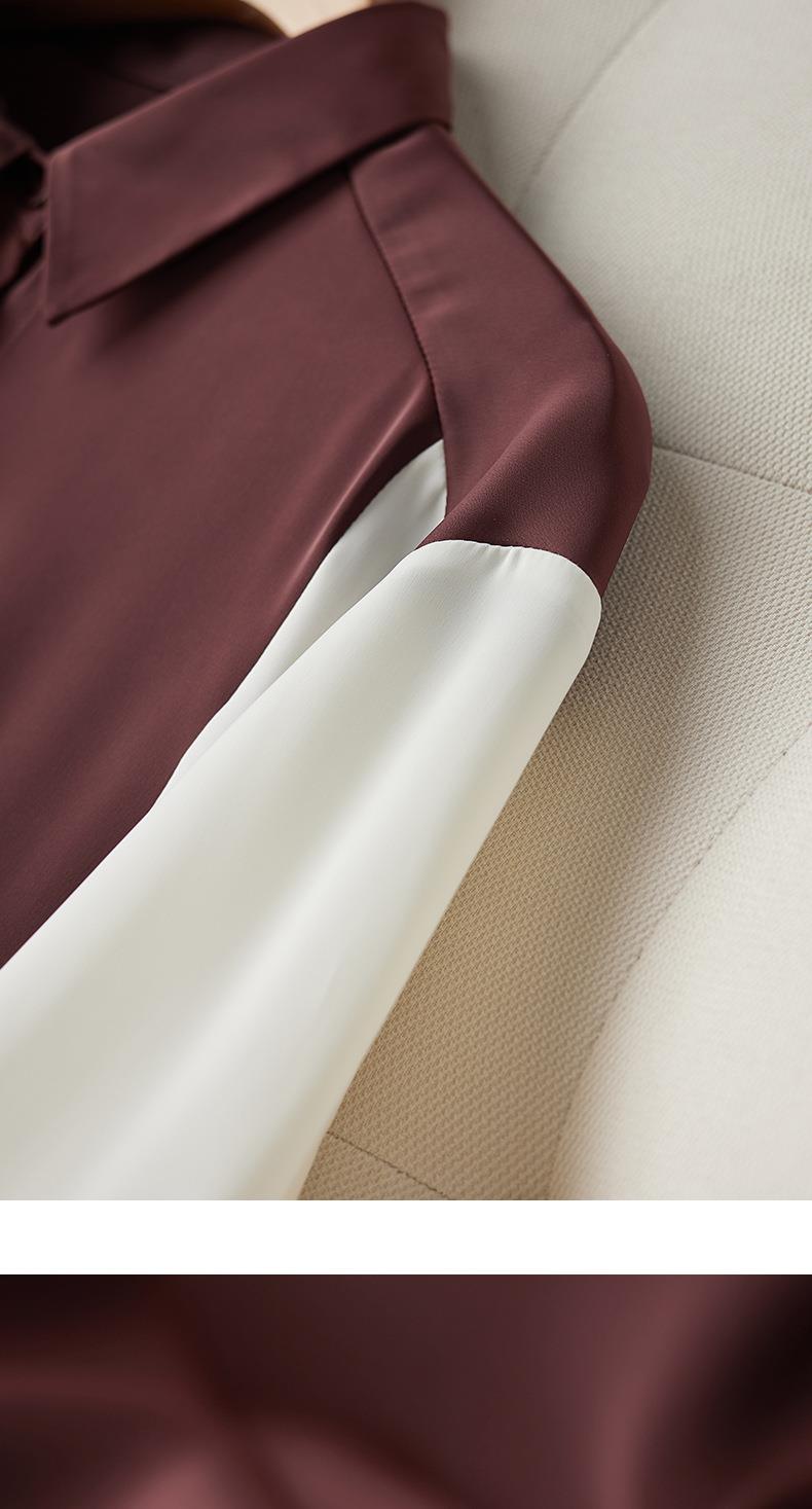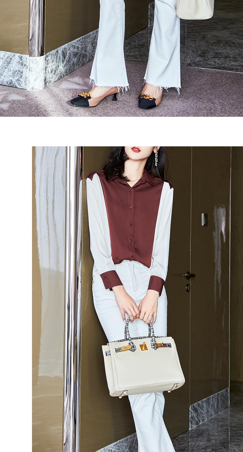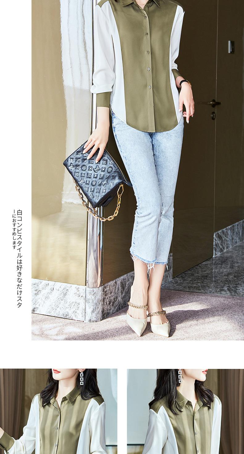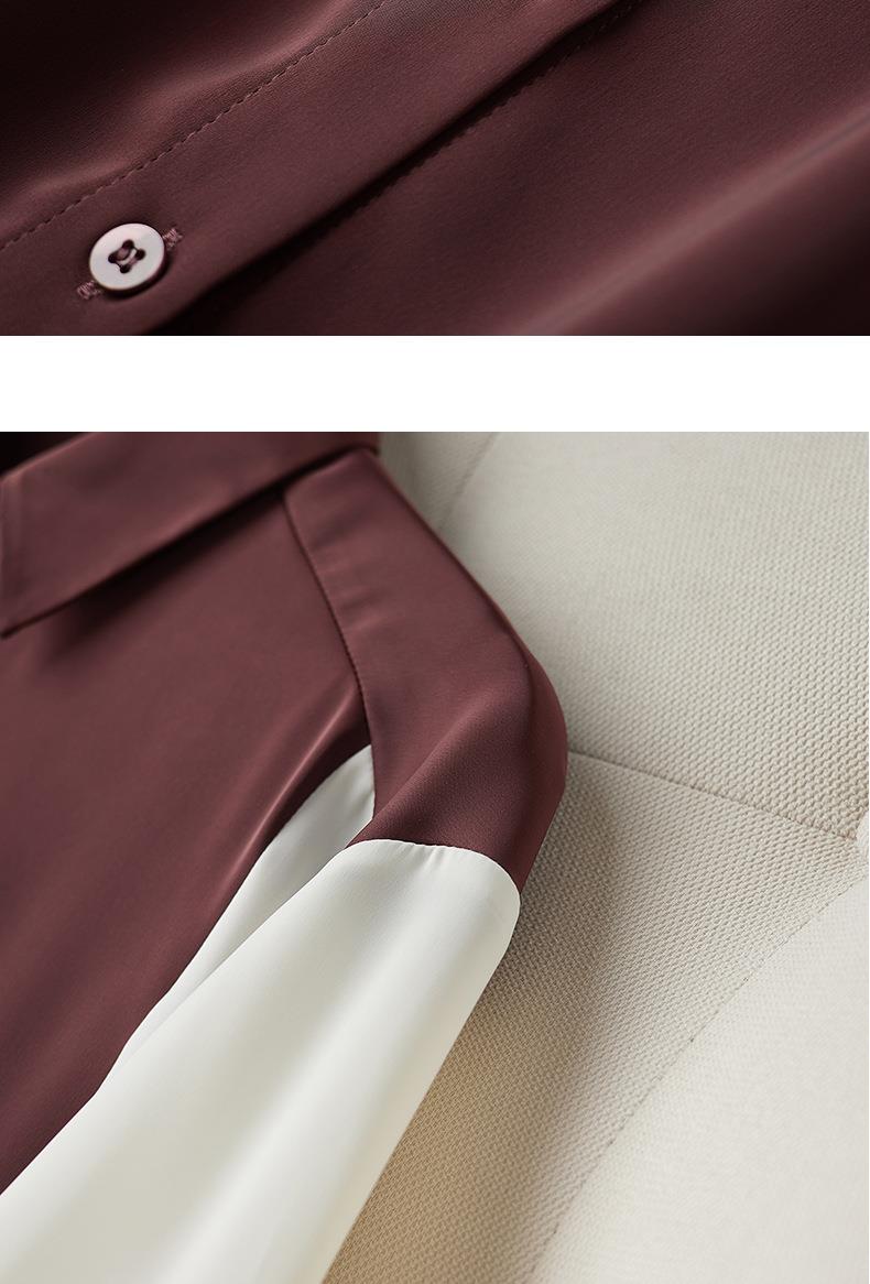 2023秋装新款衬衫女长袖宽松雪纺衫撞色女士衬衣A2716