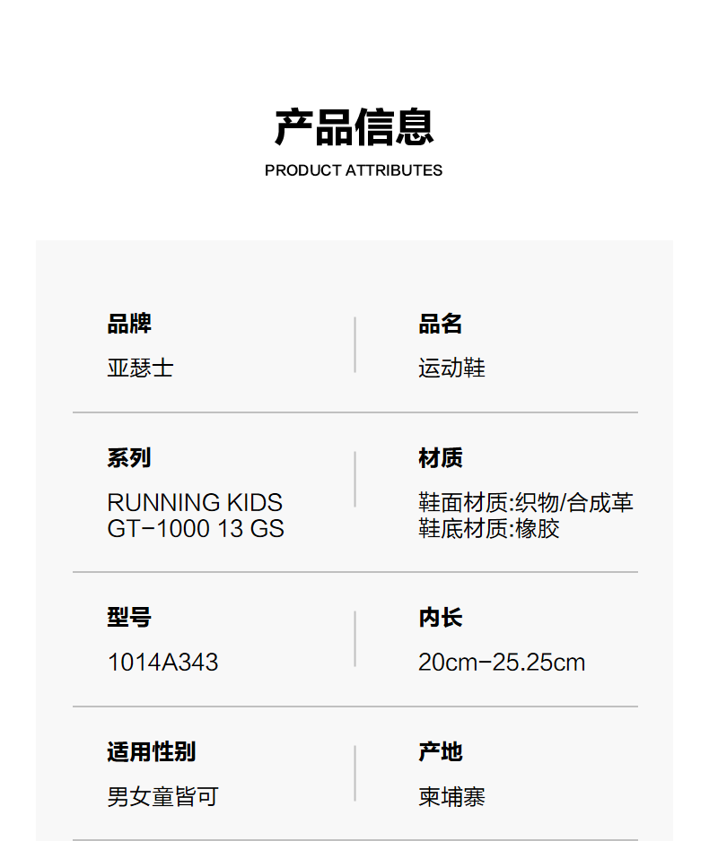 ASICS/亚瑟士童鞋24新款运动鞋男女童跑步鞋网眼透气缓震GT-1000
