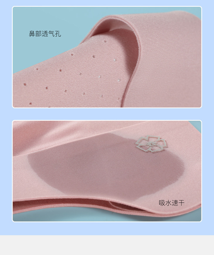 粉色防晒口罩: 粉色防晒口罩是一款非常可爱和时尚的口罩,适合搭配各种清新 亲和的服装。粉色是一种非常温暖和柔和的颜色, 能够为您的穿搭增添一份俏皮和可爱。