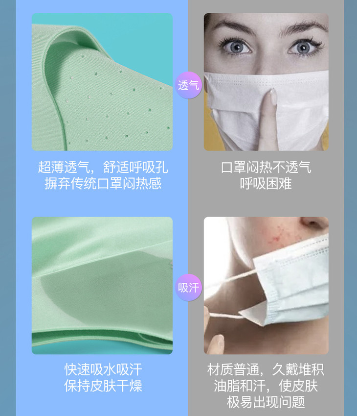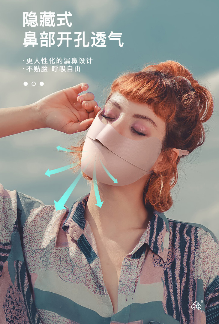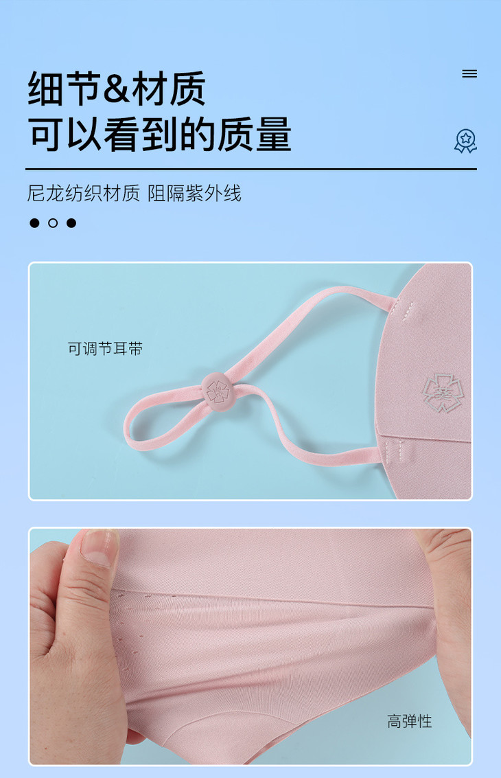 一款轻薄透气的防晒口罩 采用了轻薄透气的设计,让您在户外活动时更加舒适和自在。 特别的软 特别的有弹性