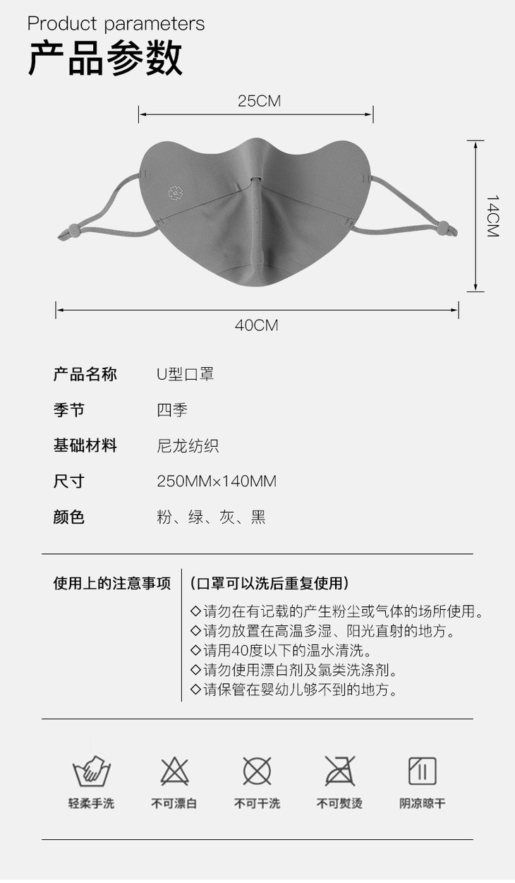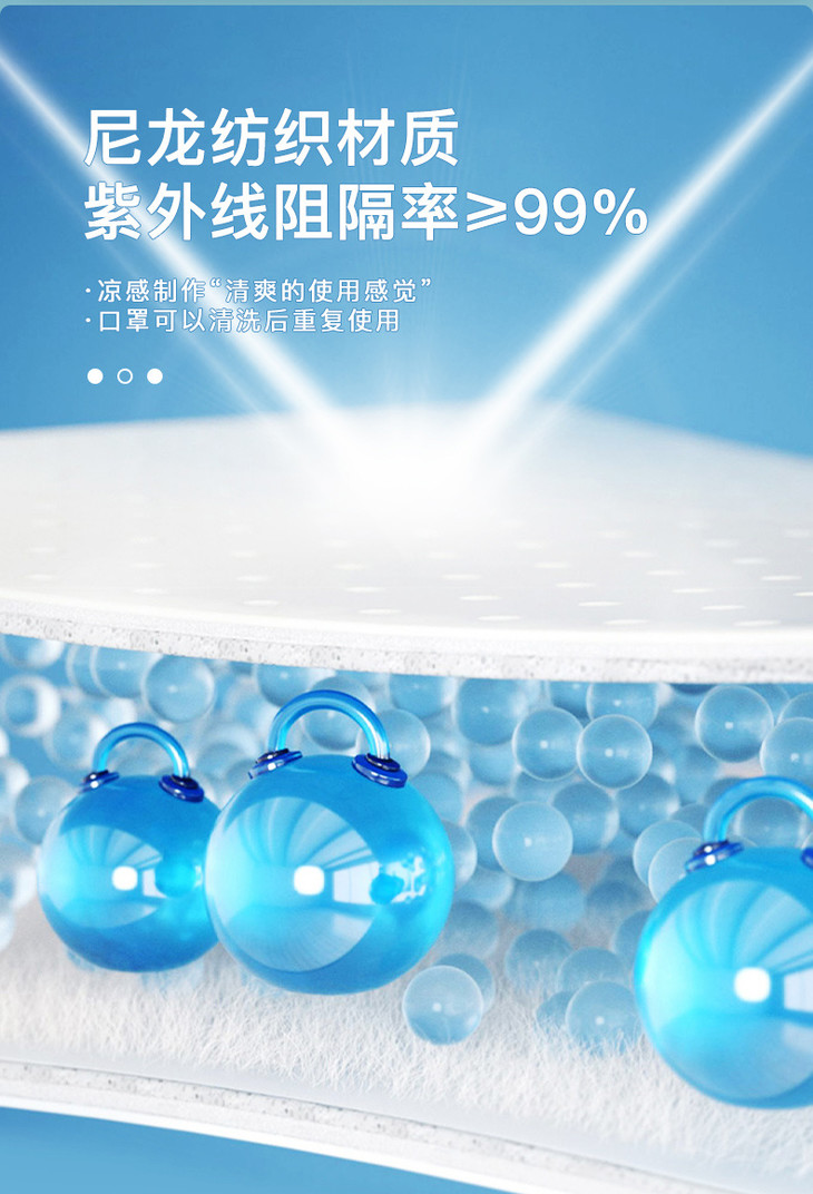 该口罩还可以反复清洗和消毒,使用寿命长 符合环保和经济的要求,是一种非常实用和高性价比的防晒产品。