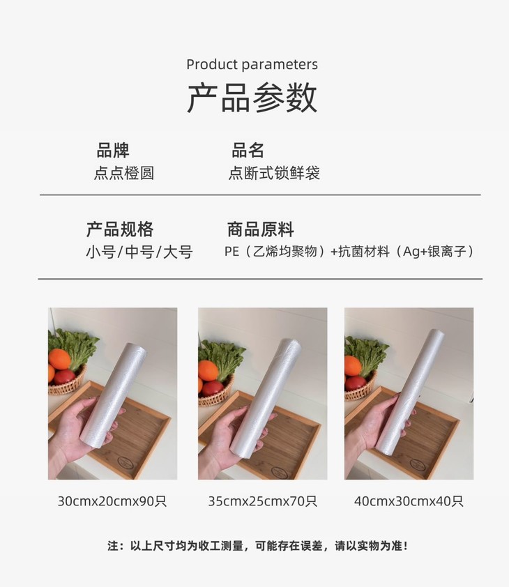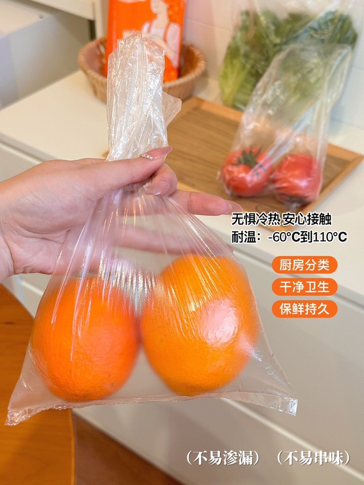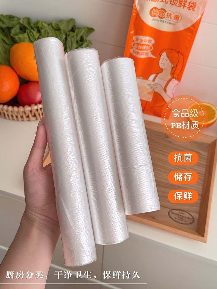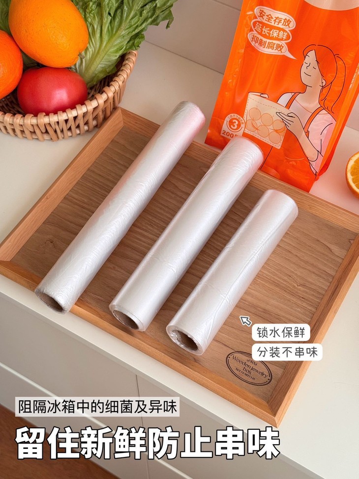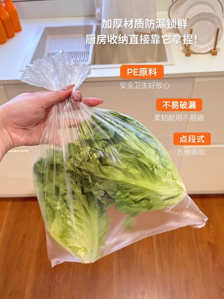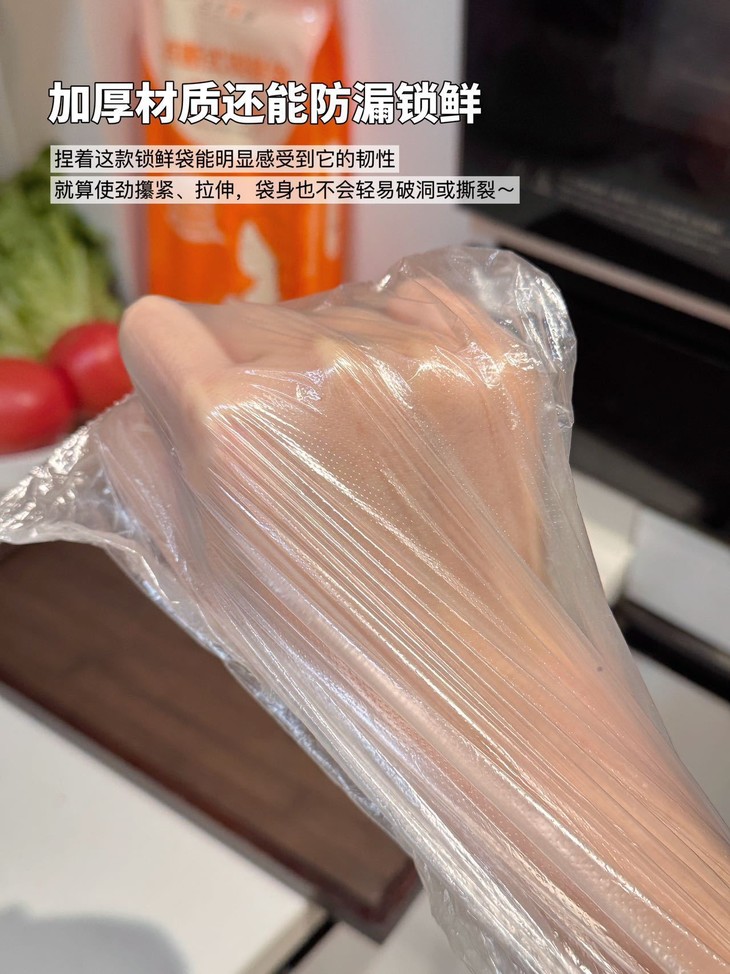 食品级PE材质直接戳中我的安全诉求! 长效抗菌的设计能阻隔冰箱细菌和异味,食材分装不串味,锁水保鲜效果拉满~ 柔韧性强还不易破,装橙子、生菜、番茄这些食材,厚实又耐用,密封保鲜还能延长食材保质期。