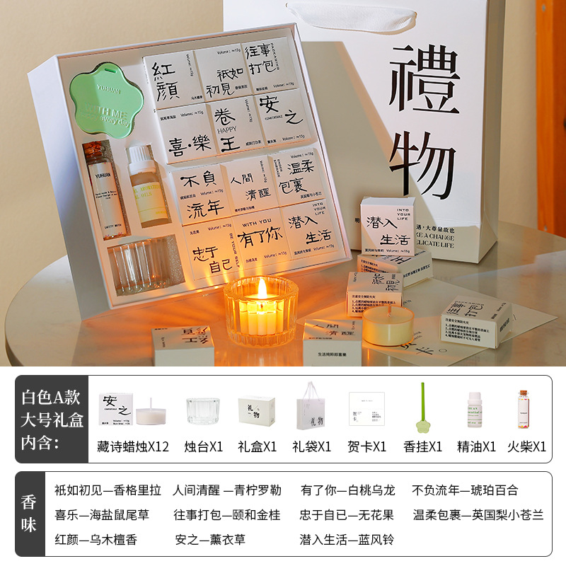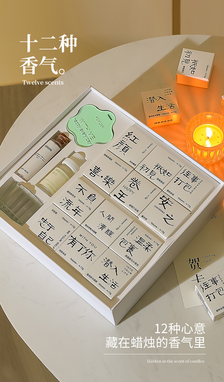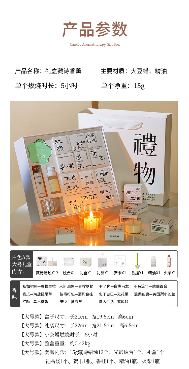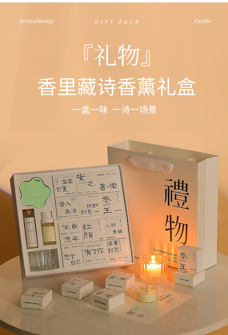 七夕好礼!【一盒一味,一诗一场景!】香里藏诗香薰蜡烛礼盒套装 室内卧室创意香氛节日礼品 生日伴手礼物 情人节礼物-QB