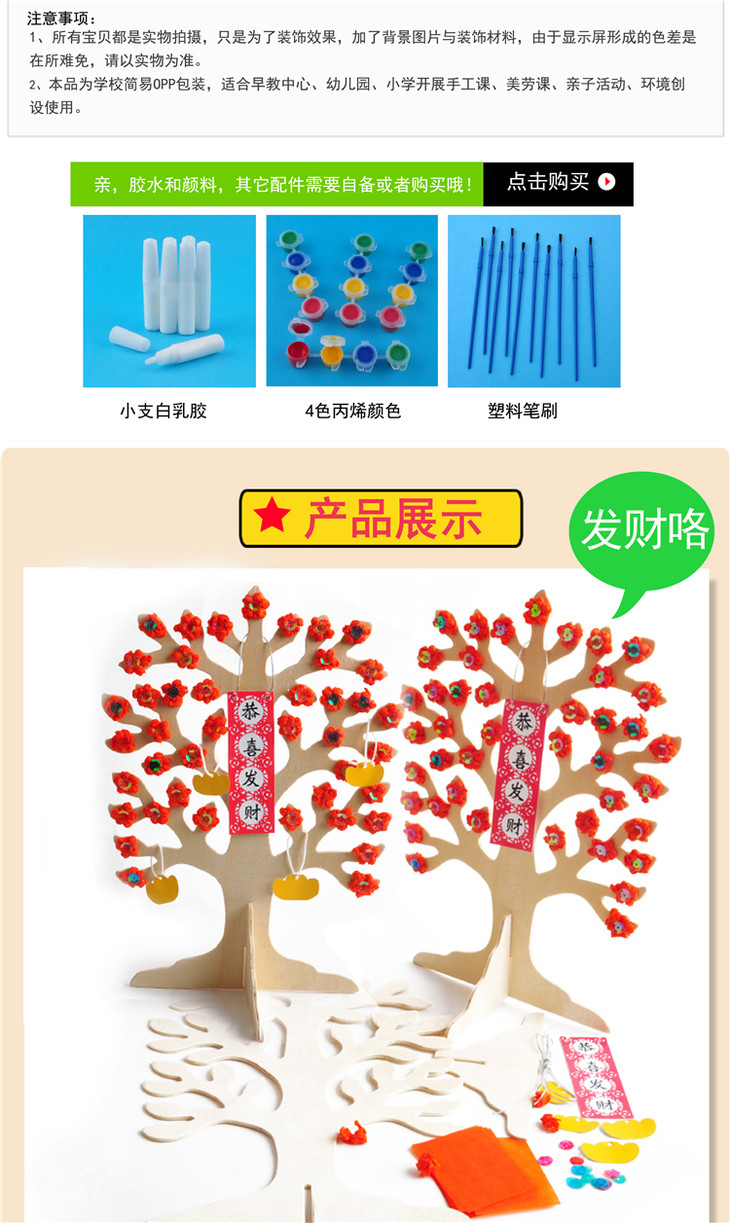 幼儿园课堂手工DIY创意美工木质发财树材料包