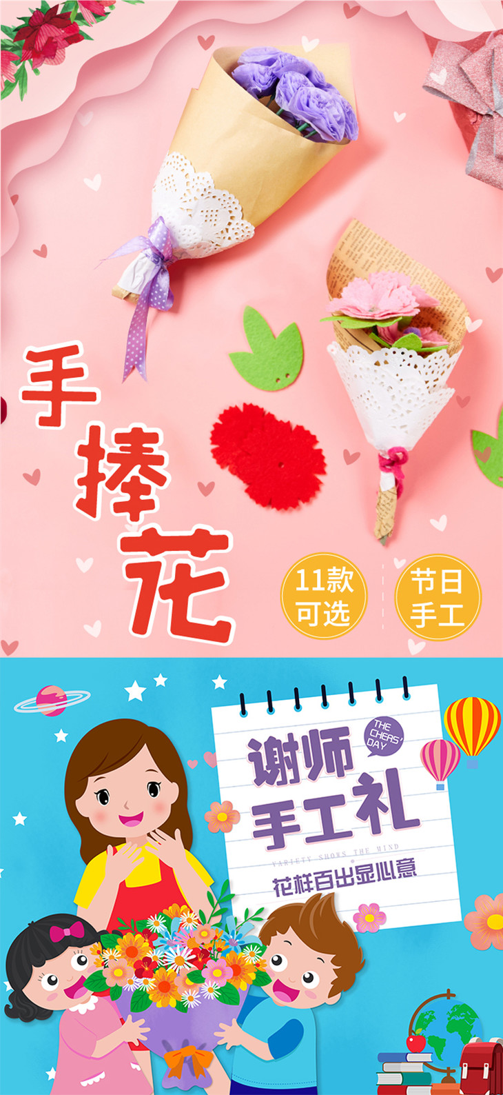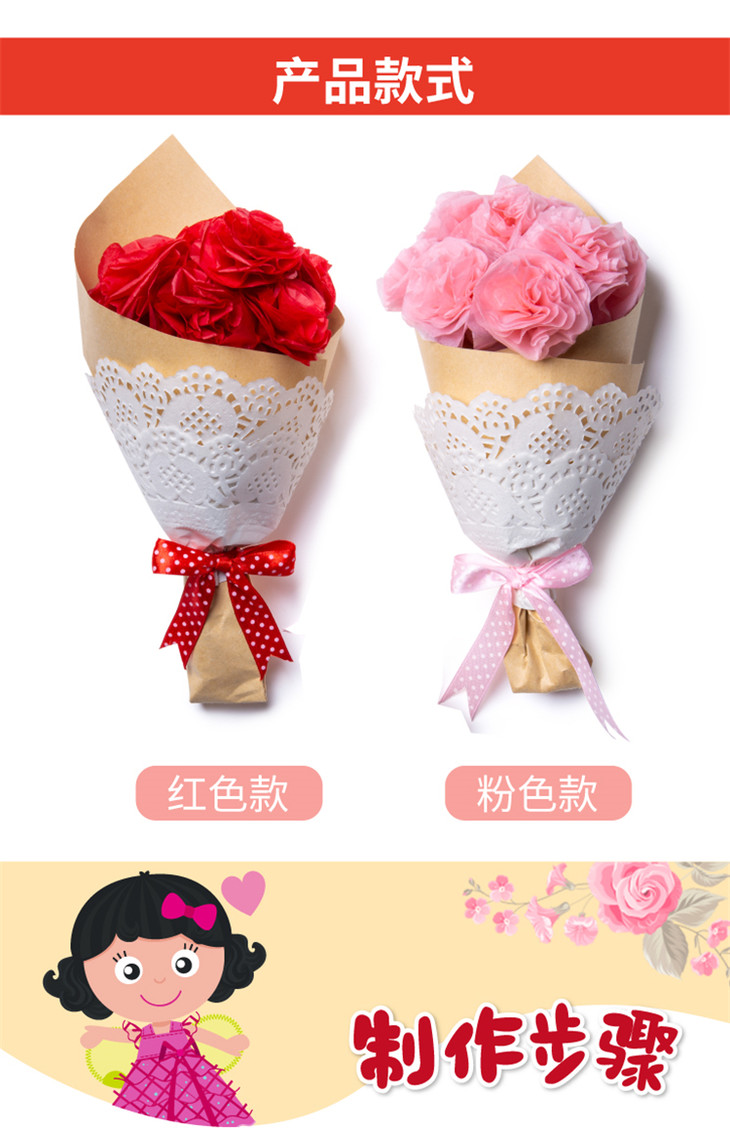 父亲节礼物手工diy 幼儿园儿童创意手捧花康乃馨花束制作材料包