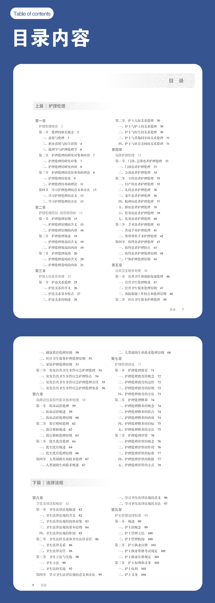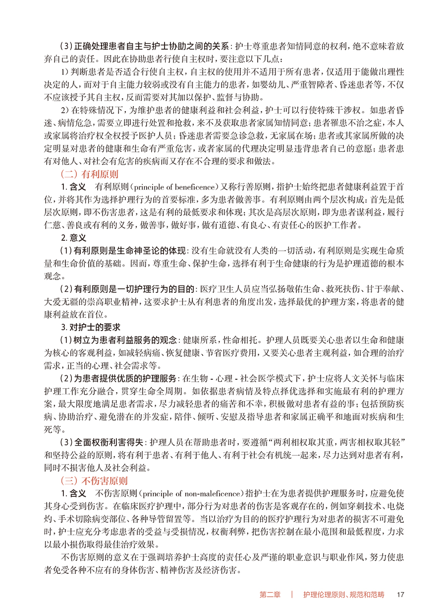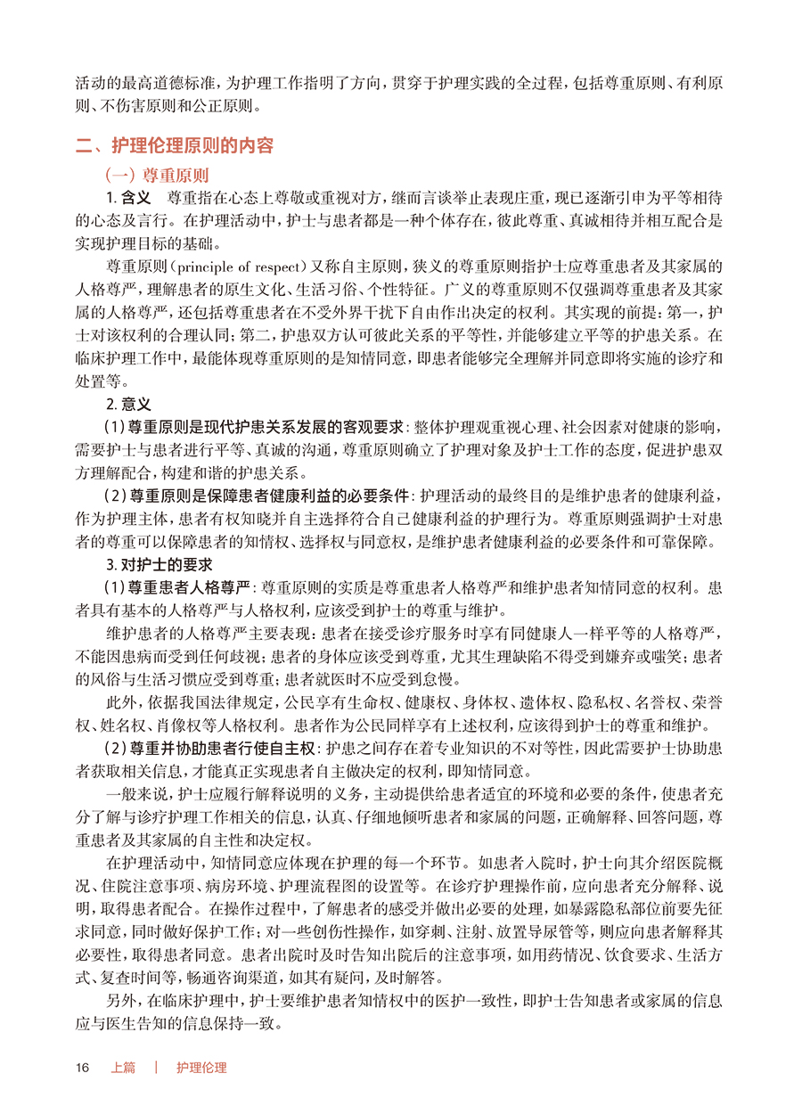 护理工作是我国卫生健康事业的重要组成部分,对全面推进健康中国建设具有重要意义。护理道德素质和卫生法治素养是培养合格护理人才、推动护理质量提升的重要内容。《“健康中国2030”规划纲要》要求:持续改进医疗质量和医疗安全……加强医疗服务人文关怀,构建和谐医患关系。《国家职业教育改革实施方案》指出:深化办学体制改革和育人机制改革;推进高等职业教育高质量发展;促进职业院校加强专业建设、深化课程改革、增强实训内容、提高师资水平,全面提升教育教学质量。《全国护理事业发展规划(2021—2025 年)》提出:进一步加强护士队伍建设,丰富护理服务内涵与外延,提升护理管理水平;不断规范从业人员实践行为;把提高护理服务质量和水平作为核心任务等。党的二十大报告提出:要推进健康中国建设,把保障人民健康放在优先发展的战略位置。为适应经济社会发展对护理事业发展的新要求,贯彻落实护理职业教育改革,落实立德树人根本任务,加强护士队伍建设,学习护理伦理与法律法规是提升护理道德素质和卫生法治素养的重要途径,因此对本教材及时修订。 本教材包括护理伦理与法律法规上、下两篇,全书共十一章。本教材深入贯彻落实党的二十大精神,以立德树人为宗旨,以人才培养为目标,以人文理念为导向,突出三个特点。一是新颖性,教材吸收了近年来护理伦理、健康促进等新内容,以及医疗纠纷预防、医疗损害赔偿等法律规定。二是科学性,教材充分考虑高等职业教育专科护理、助产专业的特点,贴近专业实际,编写体系合理,内容详略得当,文字通俗简练,难度深浅适宜,注重价值指引。三是实用性,教材在讲授基本理论的基础上,密切结合护理伦理与法律法规实践及护士执业资格考试,注重培养学生的综合素质和执业能力。 本教材在编写过程中,得到了编者所在单位的大力支持,也查阅和参考了许多专家编著的教材等研究成果,在此一并表示诚挚的谢意。由于编者能力所限,书中难免存在不妥之处,敬请各位同仁和读者给予批评指正。 钟会亮 吕 慕 2024 年9 月