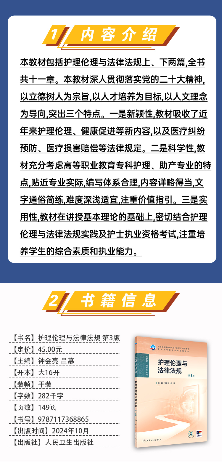 护理伦理与法律法规 第3版 十四五规划教材全国高等职业教育专科教材 供护理助产专业用 钟会亮 吕慕 人民卫生出版社9787117368865