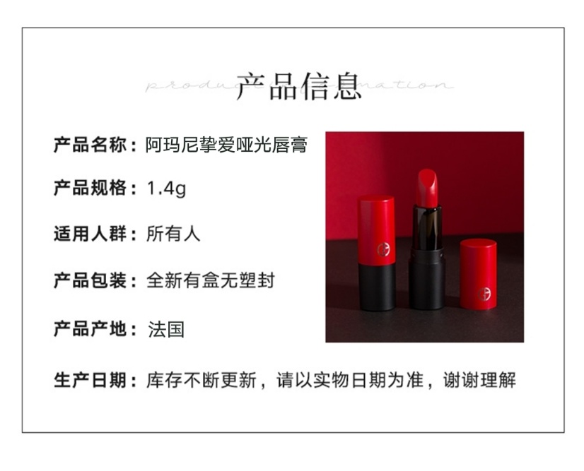 【品名】:阿玛尼挚爱哑光唇膏1.4g