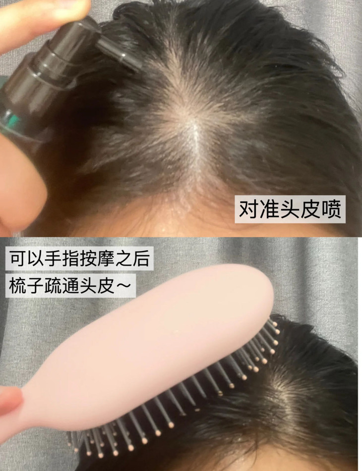 ✅使用方法也很简单 首先使用温和无刺激的洗发水彻底清洁头皮和头发 ①分区涂抹:将头发分成几个部分,以便更均匀地涂抹头皮精华。可以使用指尖或专用的头皮按摩刷。 ②适量喷涂:根据个人头皮状况和产品说明,将适量头皮精华喷涂在头皮上,特别是容易出油、瘙痒或脱发的部位。 ③按摩头皮:用指腹以打圈的方式轻轻按摩头皮,促进头皮血液循环,帮助头皮精华更好地渗透至头皮深层,同时放松头皮,缓解紧张情绪。