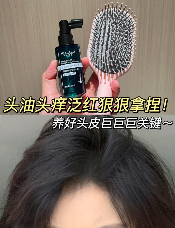 脂溢性油痒臭敏头的姐妹一定要试试‼️ 我的头皮救星👉🏻雅莎尔头皮舒敏速修精华液 刚开始用的时候,我简直被惊艳到了! 刚涂上油开始按摩, 原本很痒的头皮瞬间就风平浪静了, 效果立竿见影,真心安利给大家试一试!
