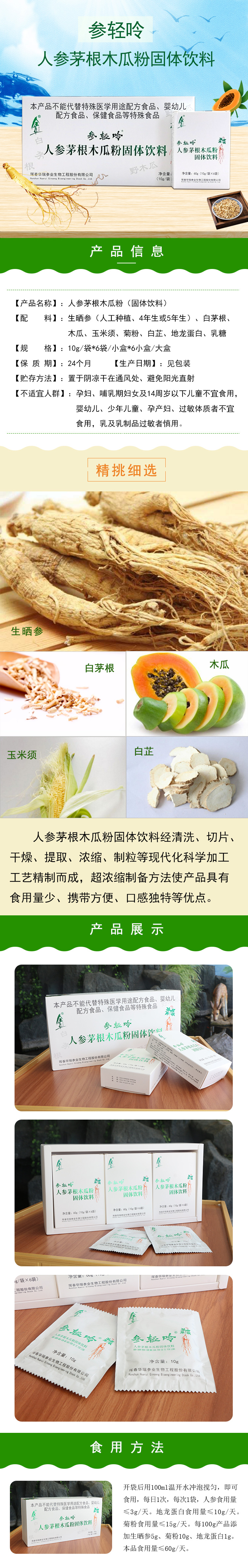兴合吉供人参茅根木瓜粉【参轻呤】【10g/袋*6袋*6盒】