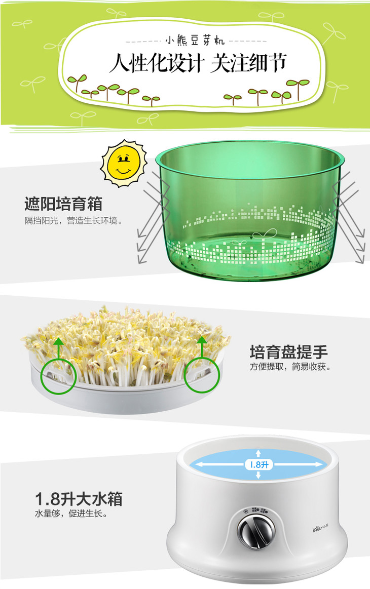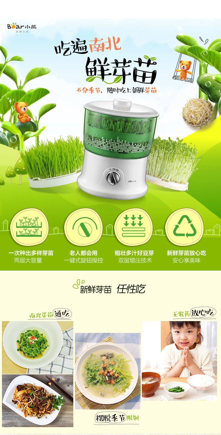 Bear/小熊 DYJ-A02A1豆芽机家用全自动正品双层大容量增压倍育