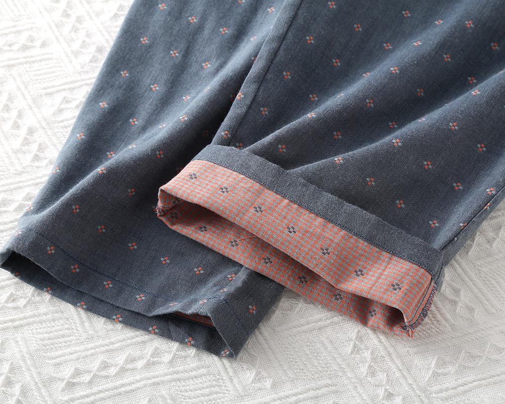 日系无印风色织纯棉双层纱布家居服男士春秋夏季全棉长袖睡衣