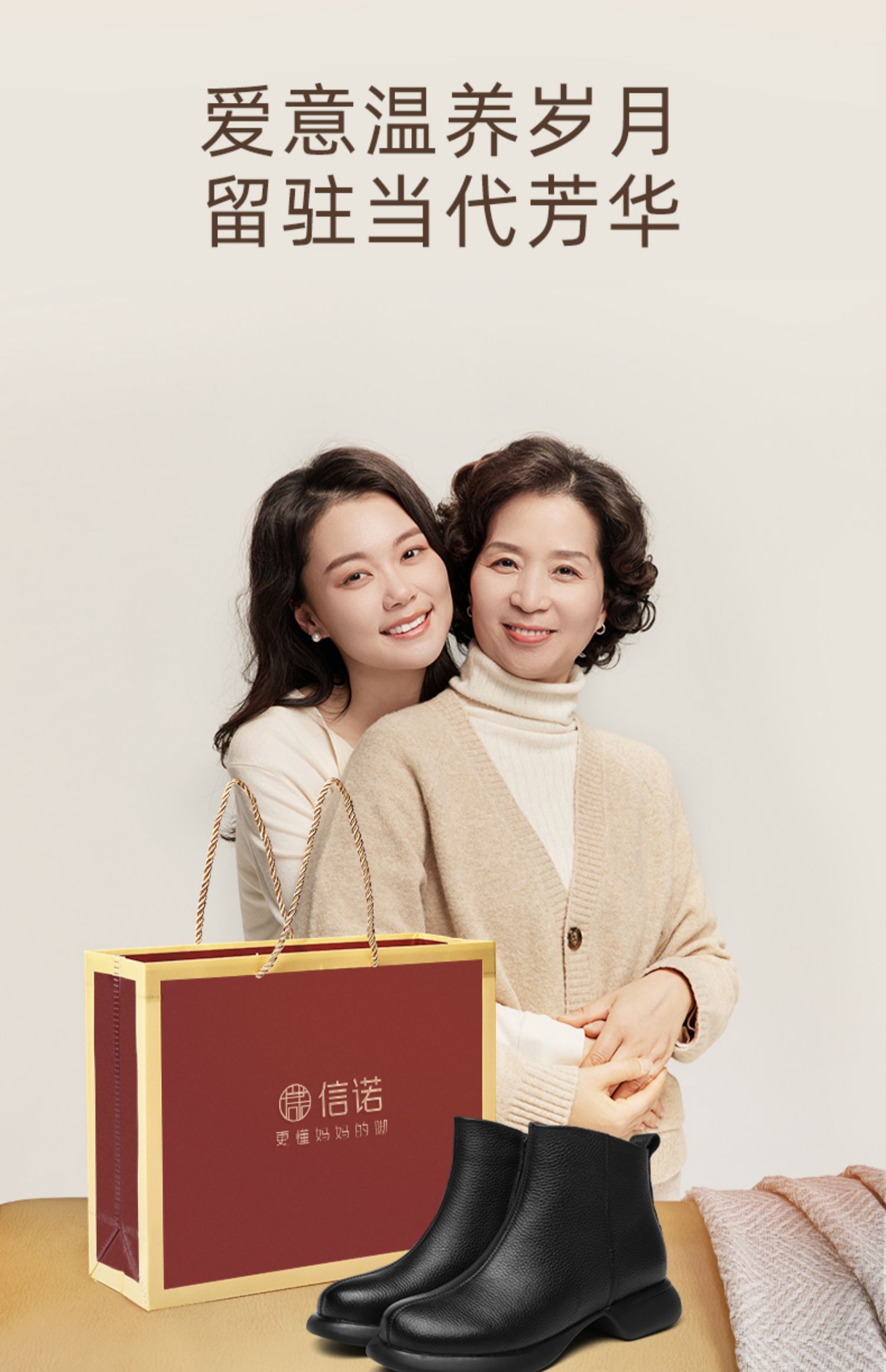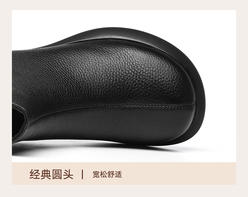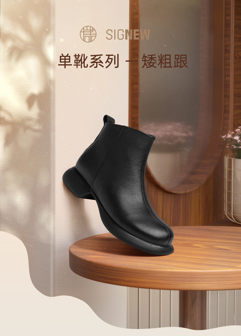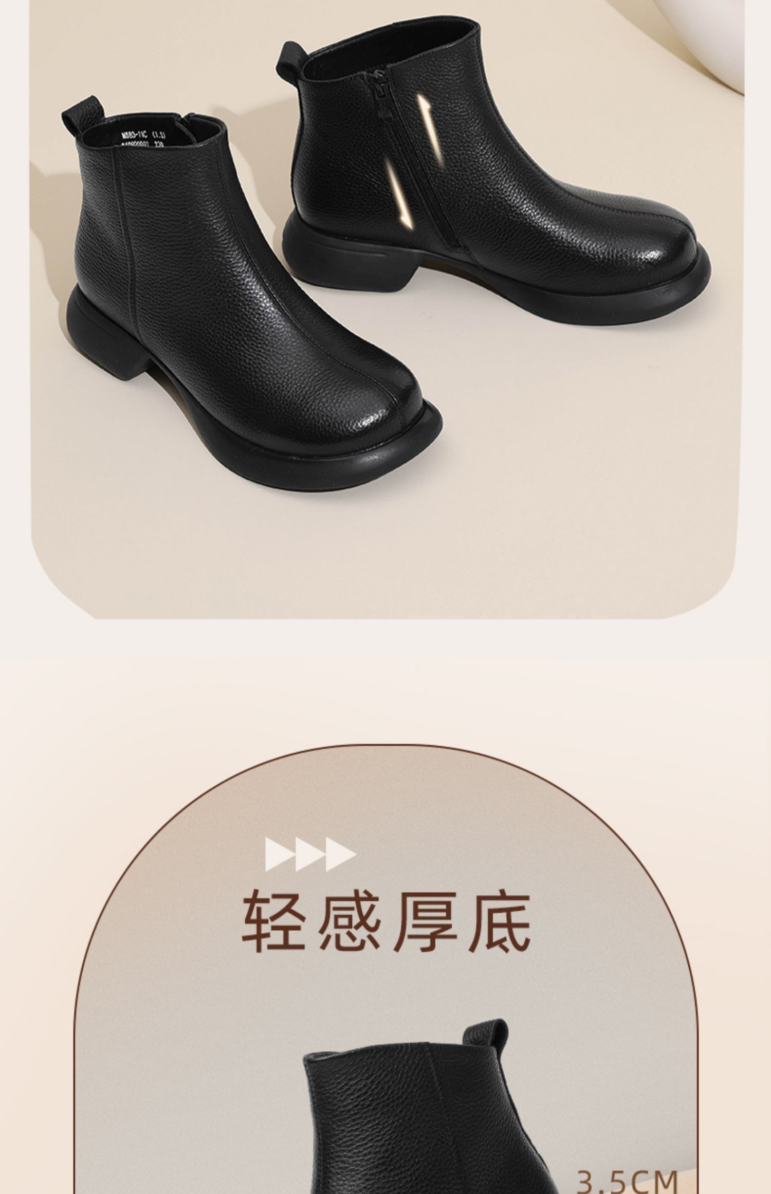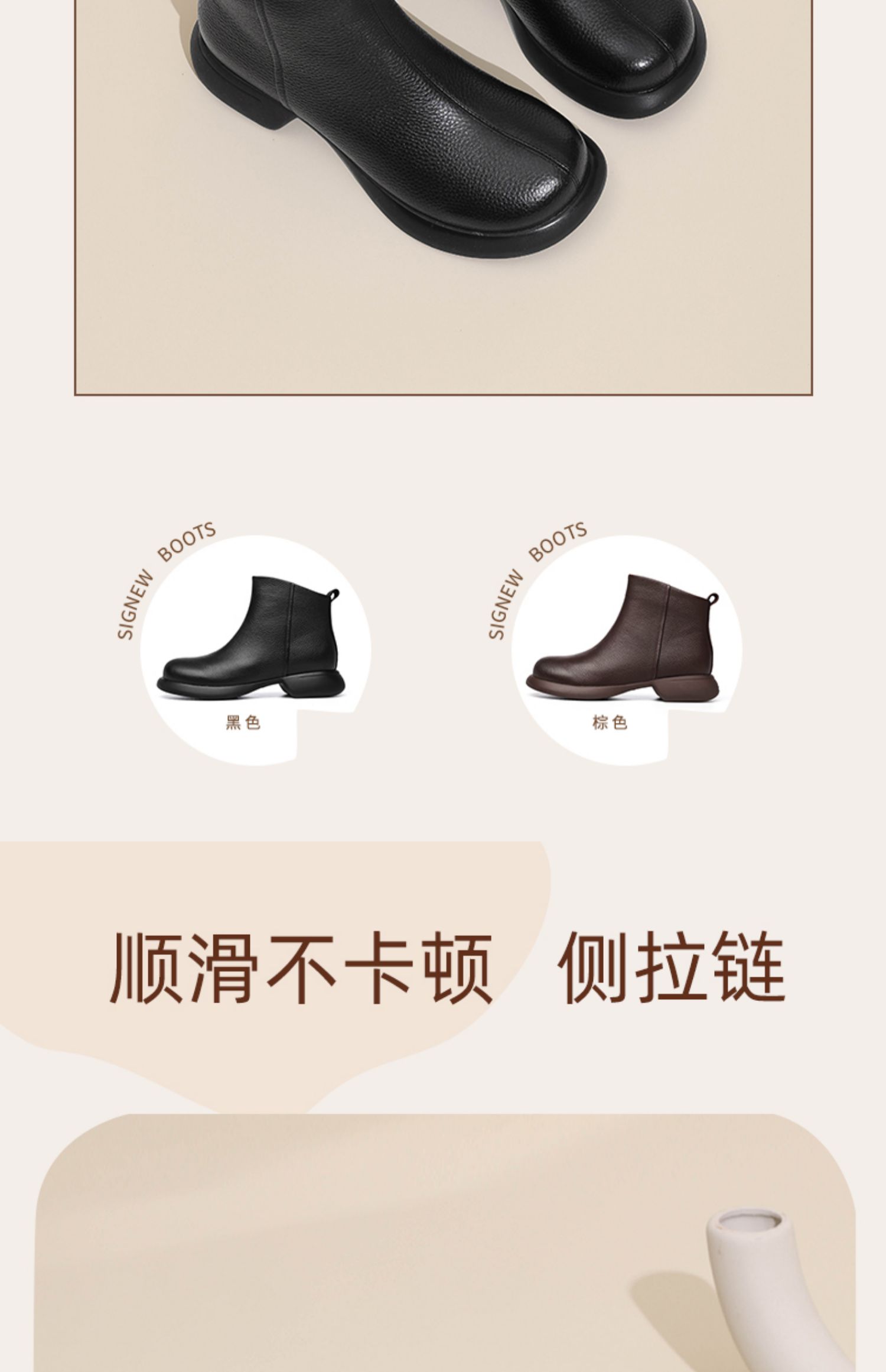 信诺真皮女靴子厚底短靴2024秋冬季新款不加绒单靴粗跟妈妈鞋皮鞋M583-11C