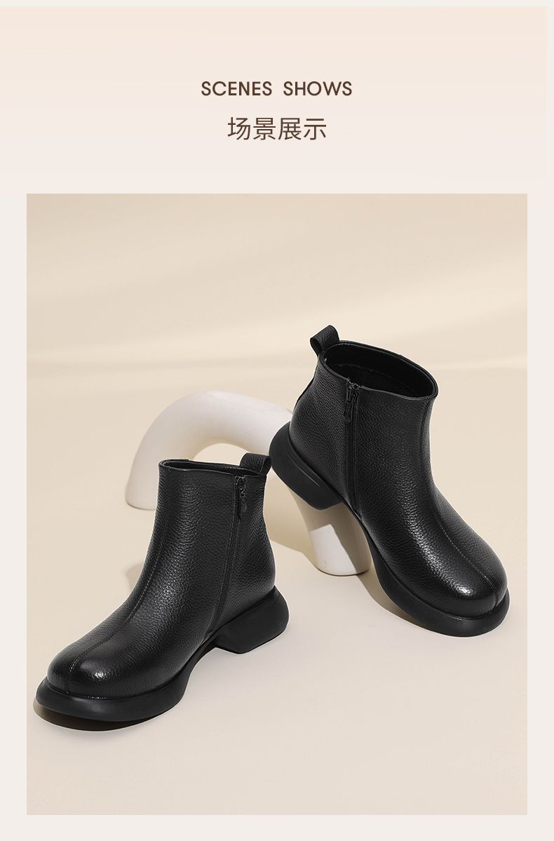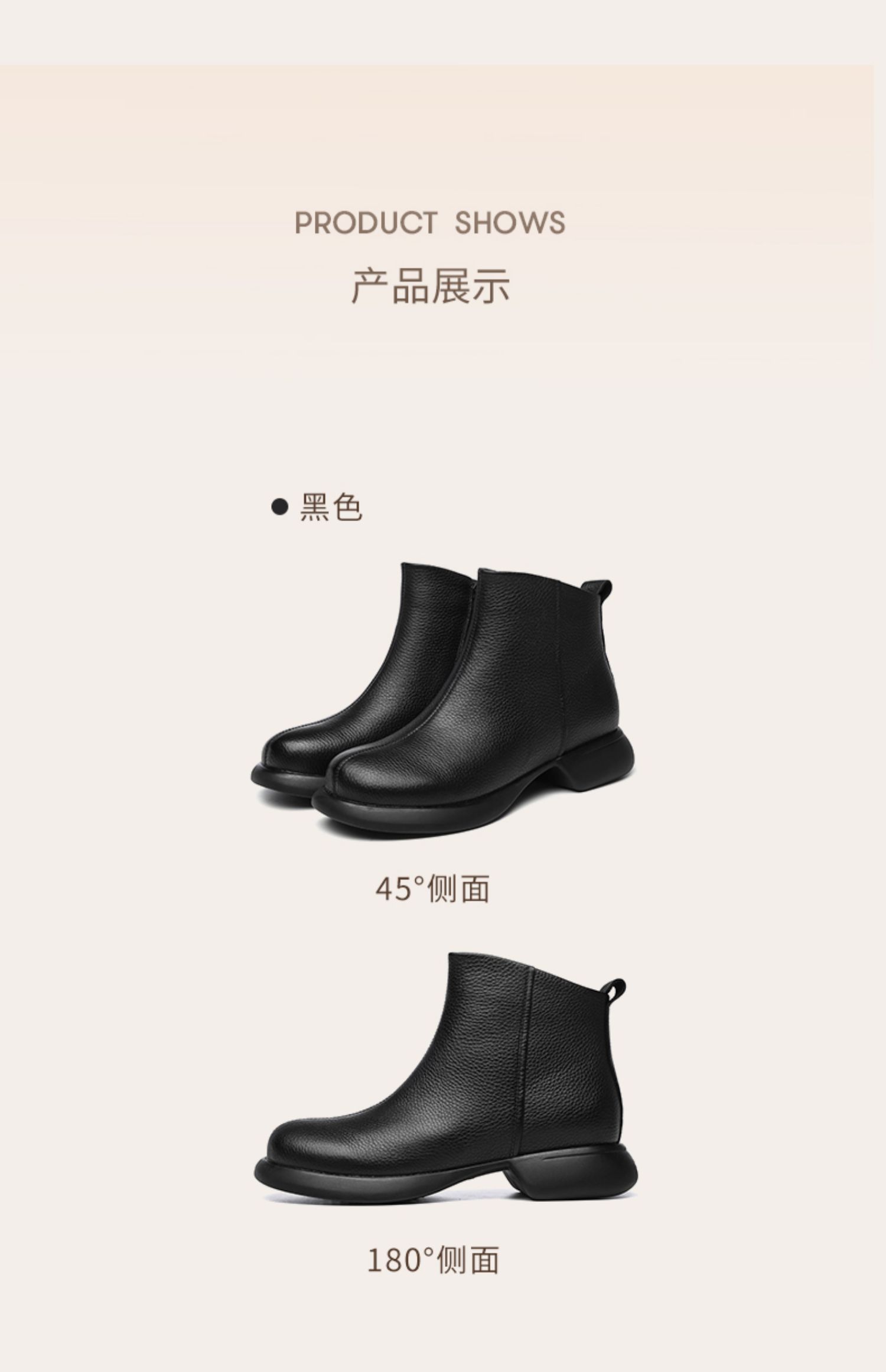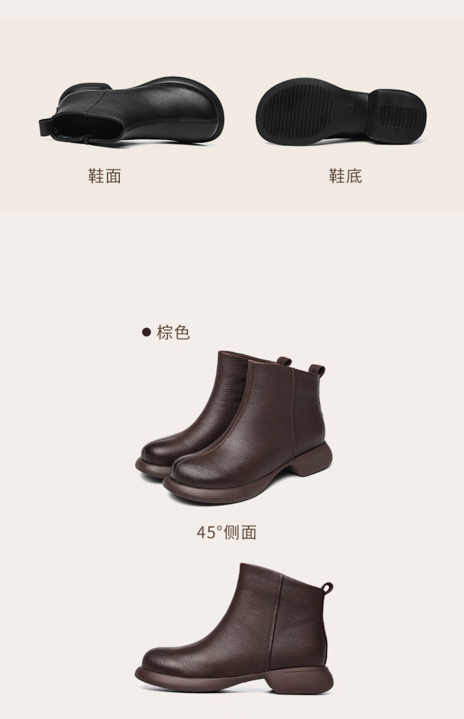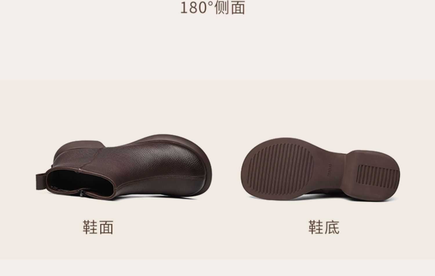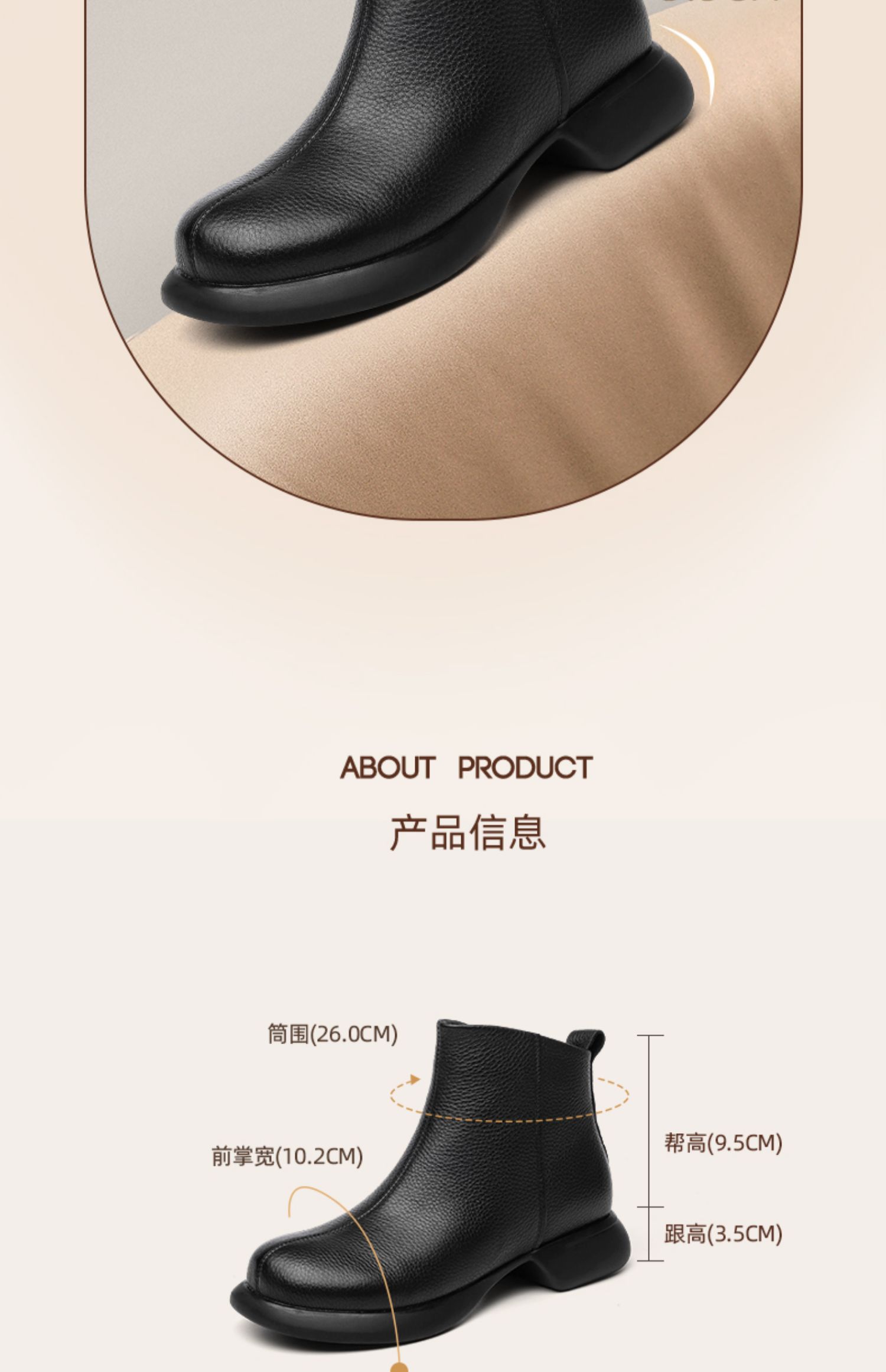 信诺真皮女靴子厚底短靴2024秋冬季新款不加绒单靴粗跟妈妈鞋皮鞋M583-11C