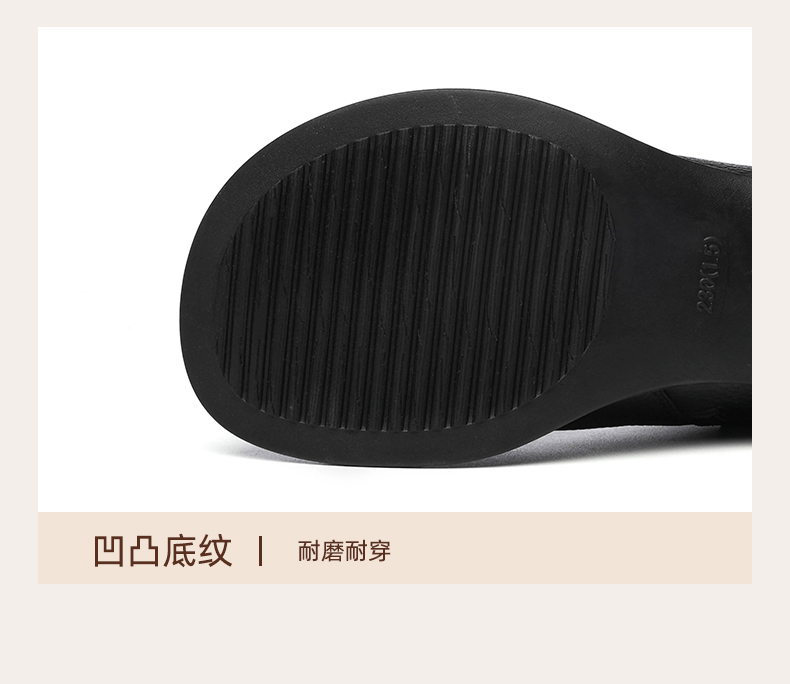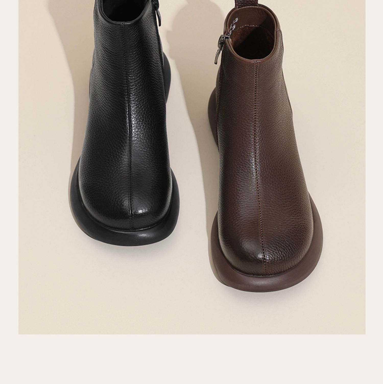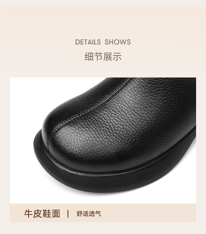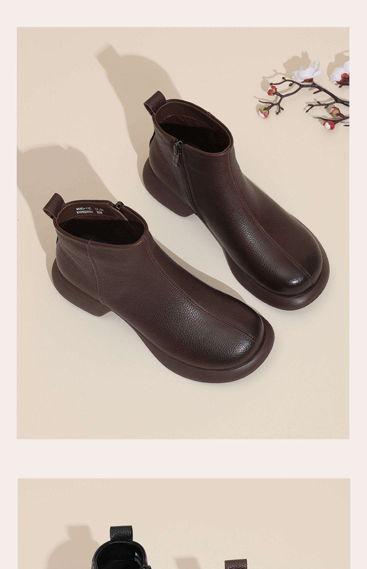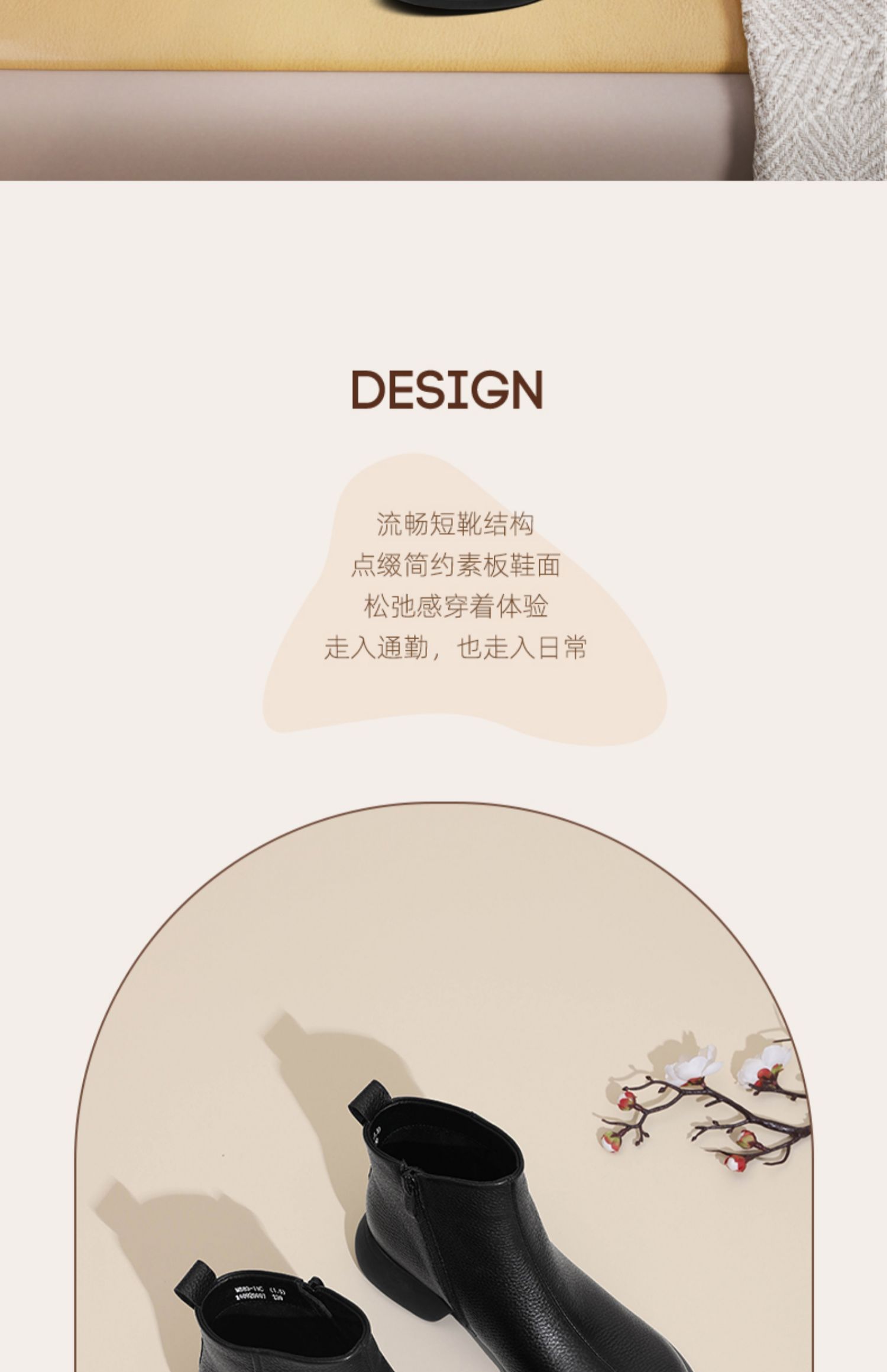 信诺真皮女靴子厚底短靴2024秋冬季新款不加绒单靴粗跟妈妈鞋皮鞋M583-11C