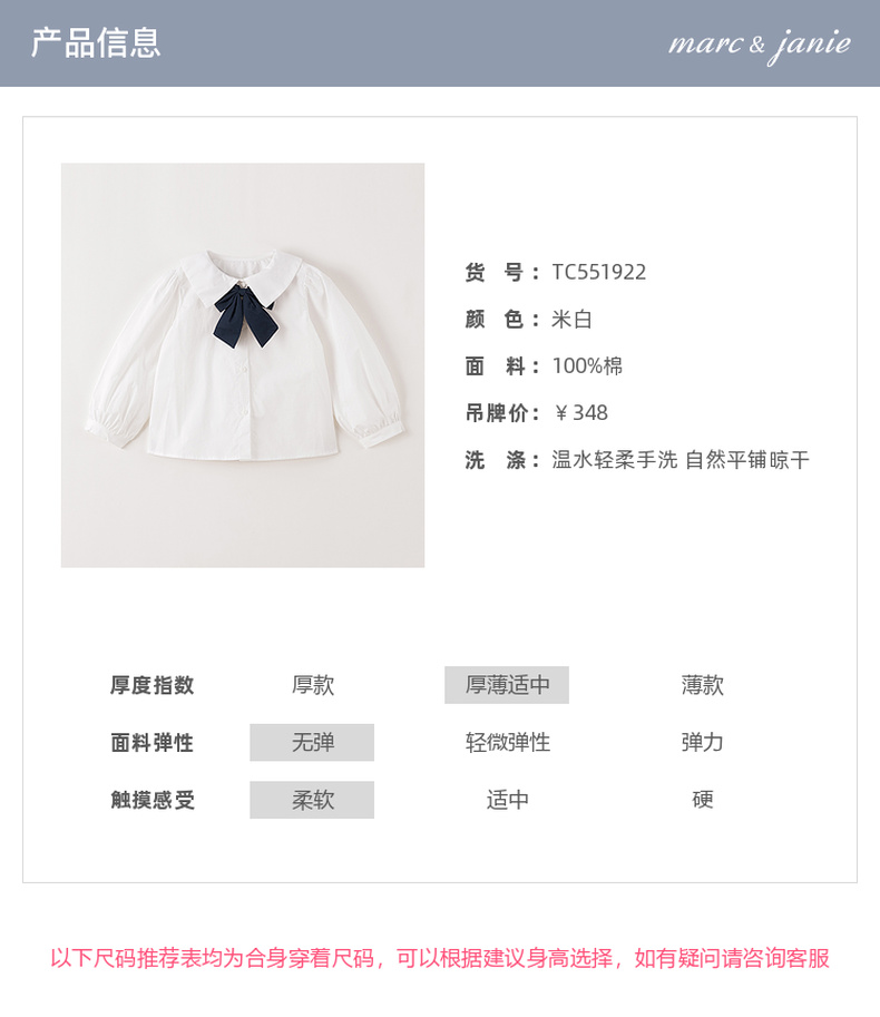 [送领结]马克珍妮女童花边领百搭衬衫儿童衬衣2025秋装新款551922