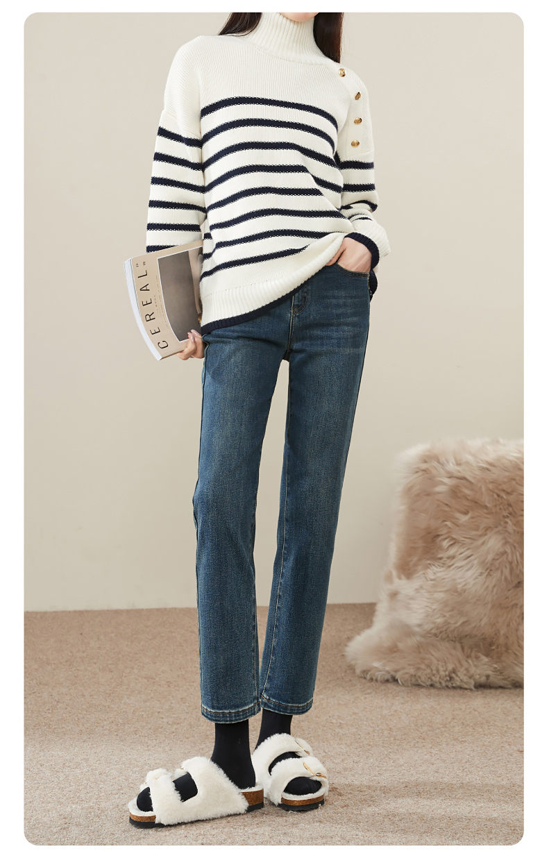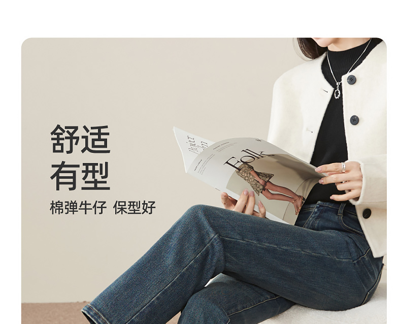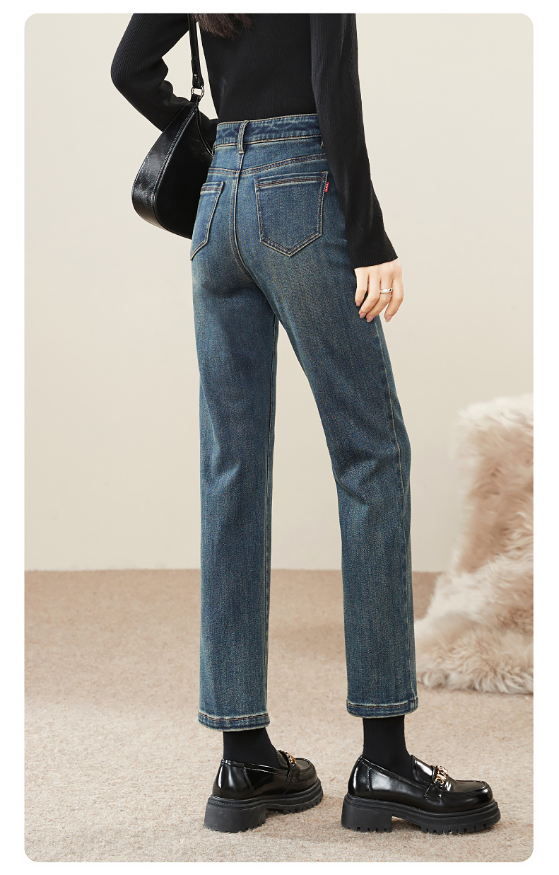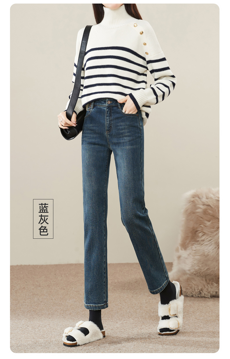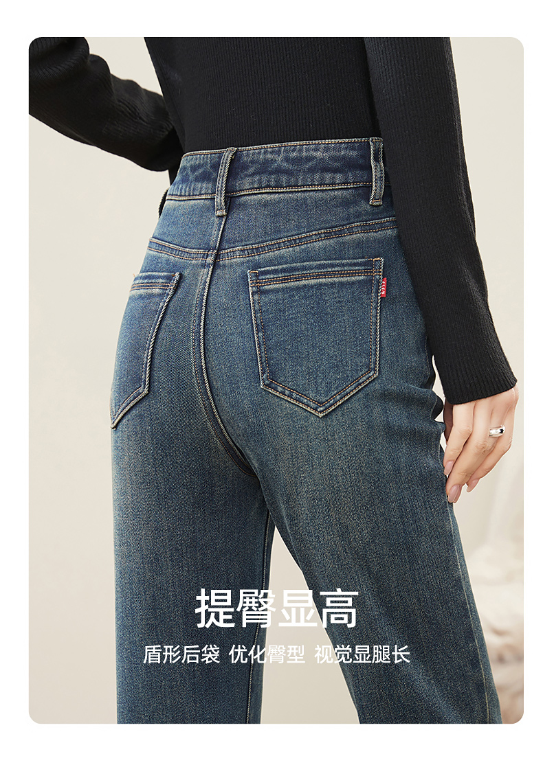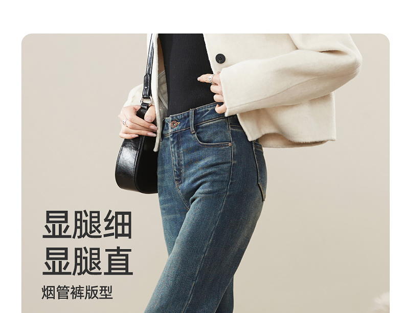 【Q暖绒-烟管-牛仔裤】逸阳冬新品加绒保暖显瘦小直筒牛仔裤1375R