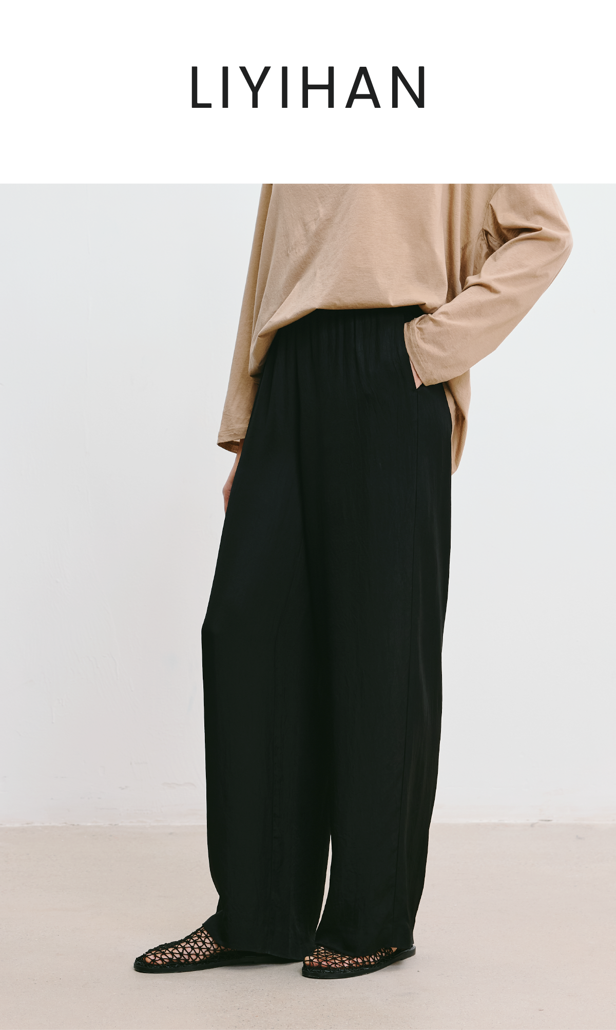 LIYIHAN序章 醋酸双面锻经典百搭显瘦松紧腰醋酸长裤